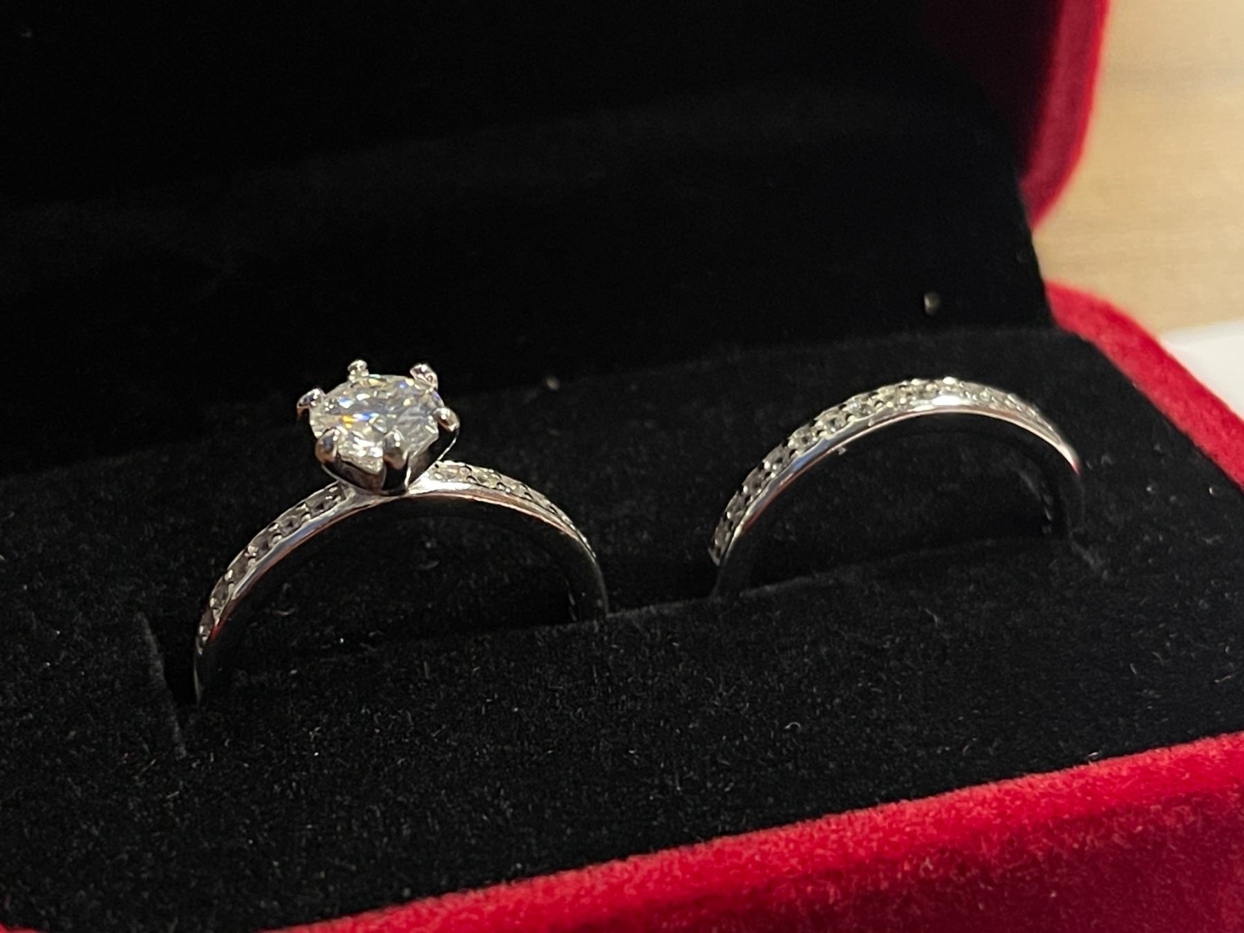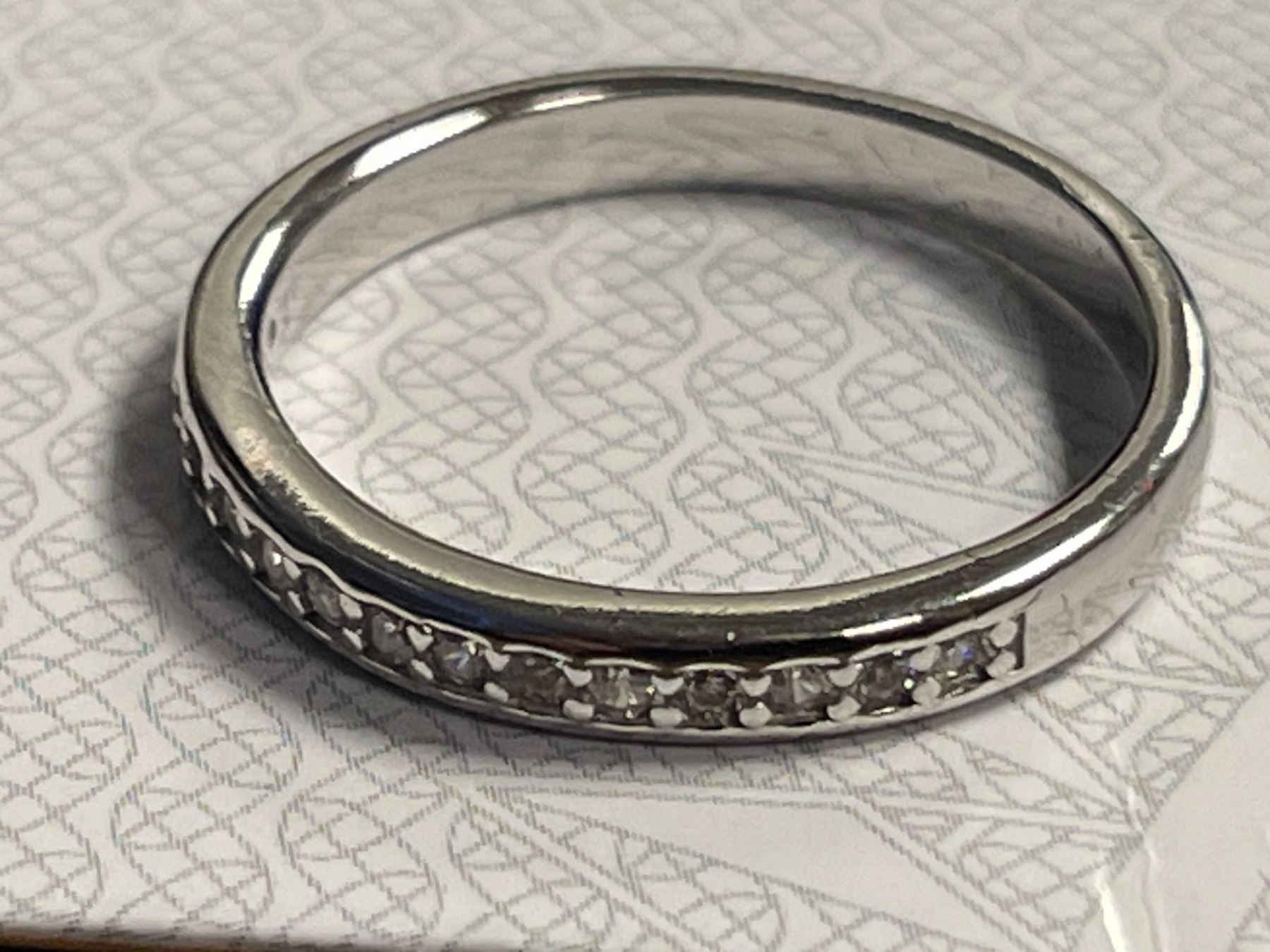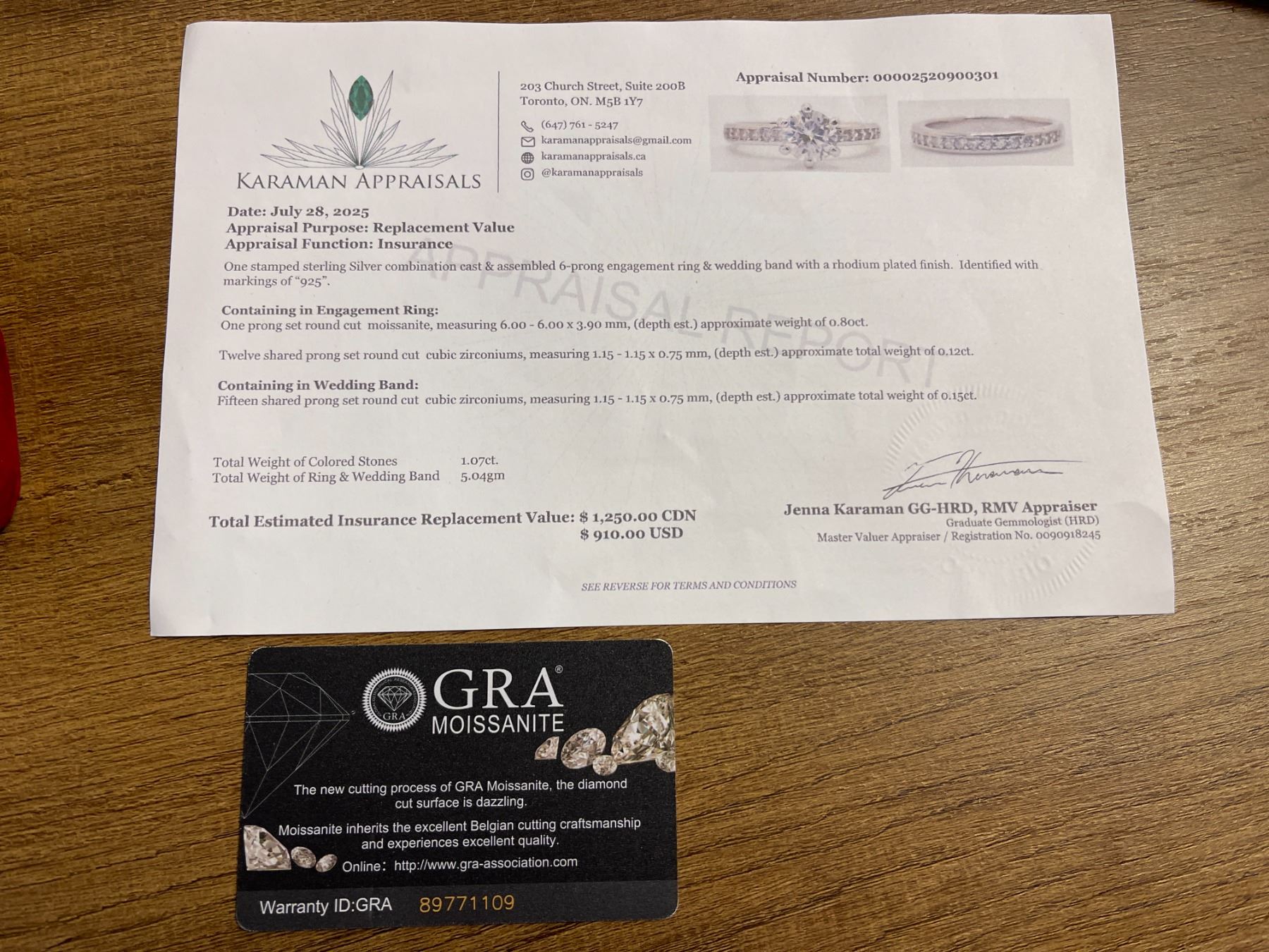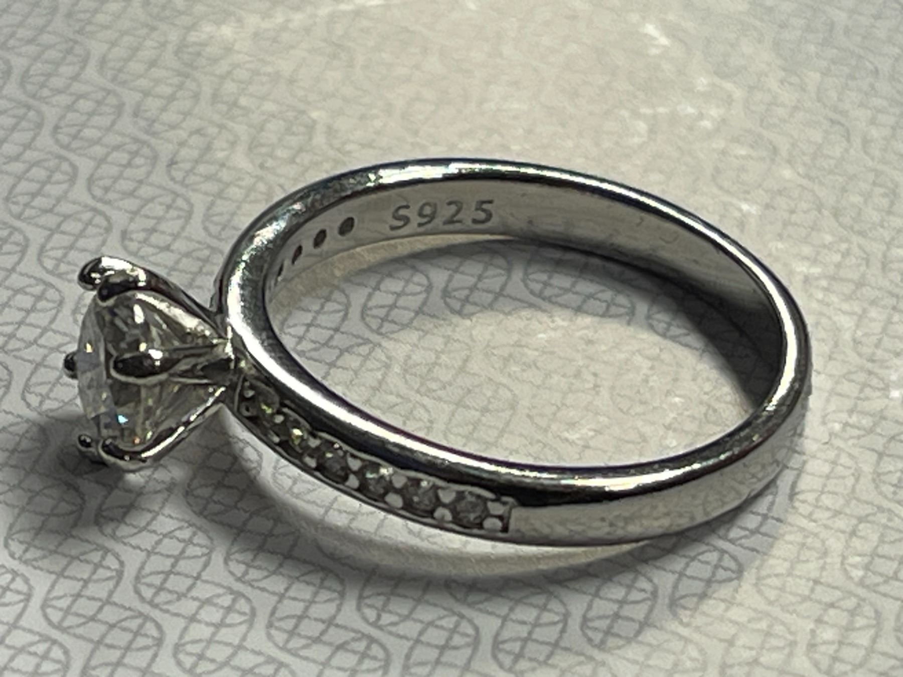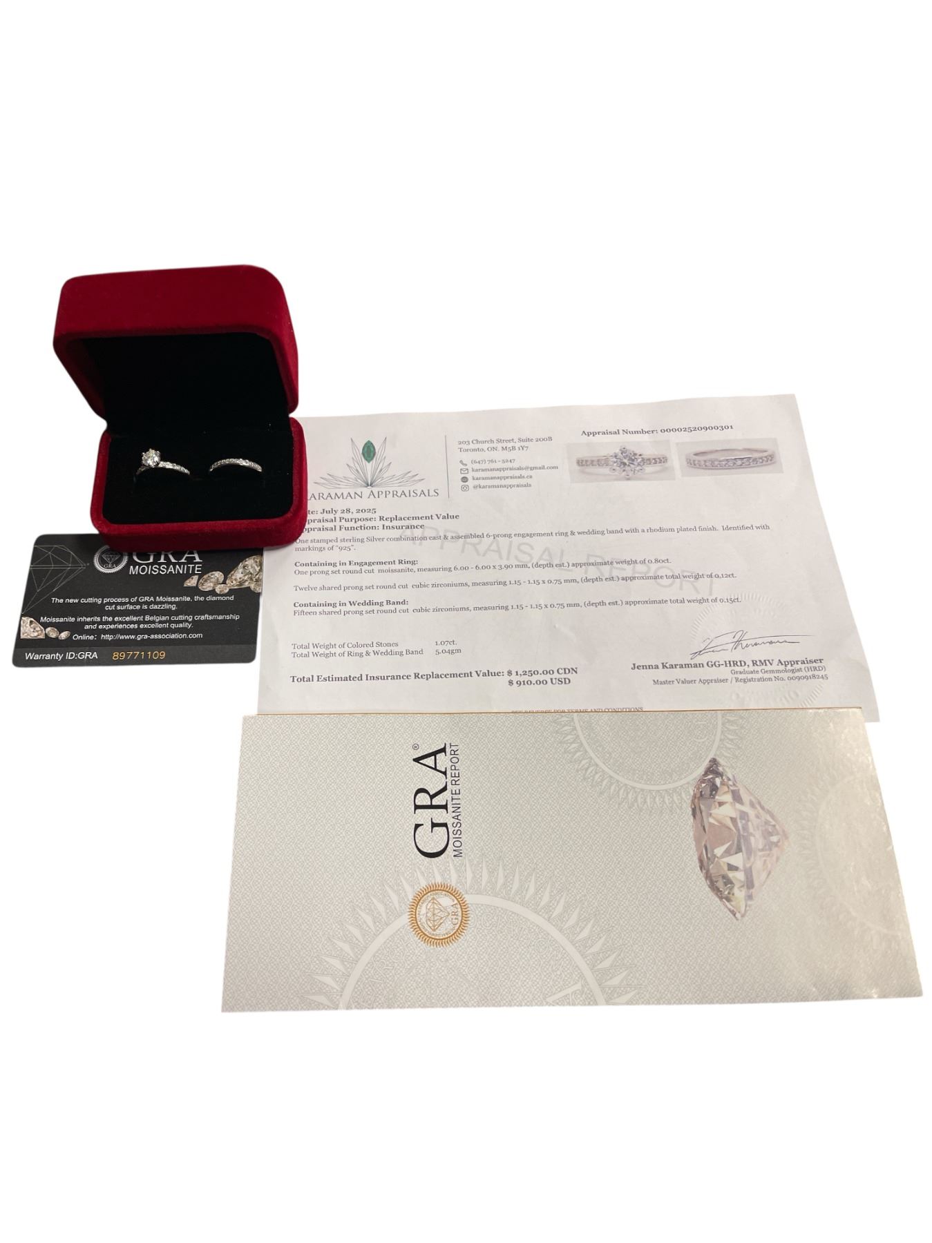 0.80 CT GRA CERTIFIED ROUND BRILLIANT CUT MOISSANITE STONE VVS D COLOR WITH 12 ROUND BRILLIANT CUT CUBIC ZIRCONIA STONES SET IN SHANK WITH 15 MORE CUBIC ZIRCONIA SET IN WEDDING BAND SET IN 925 SILVER RING SIZE 7 RETAIL VALUE OF WEDDING SET $1,250.00