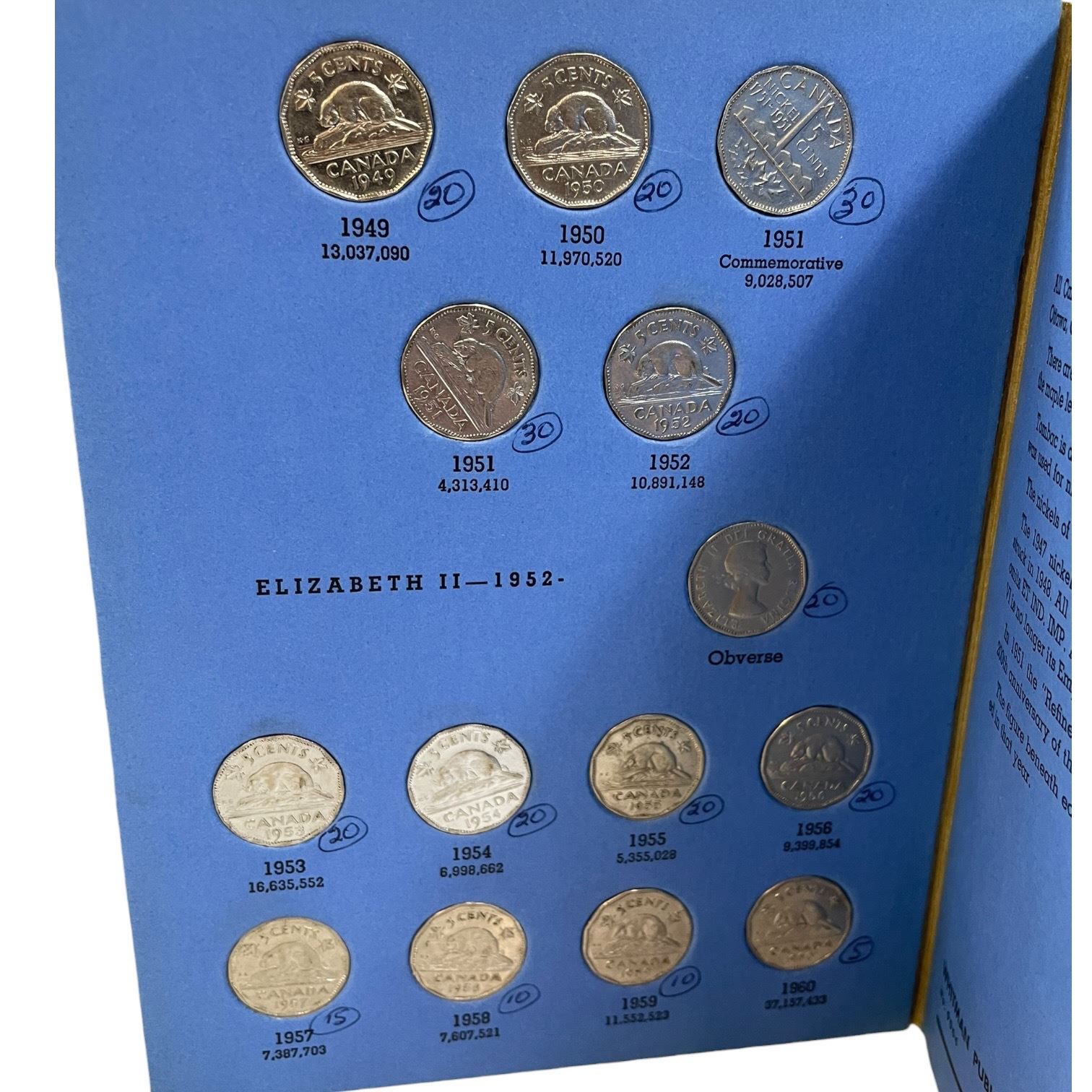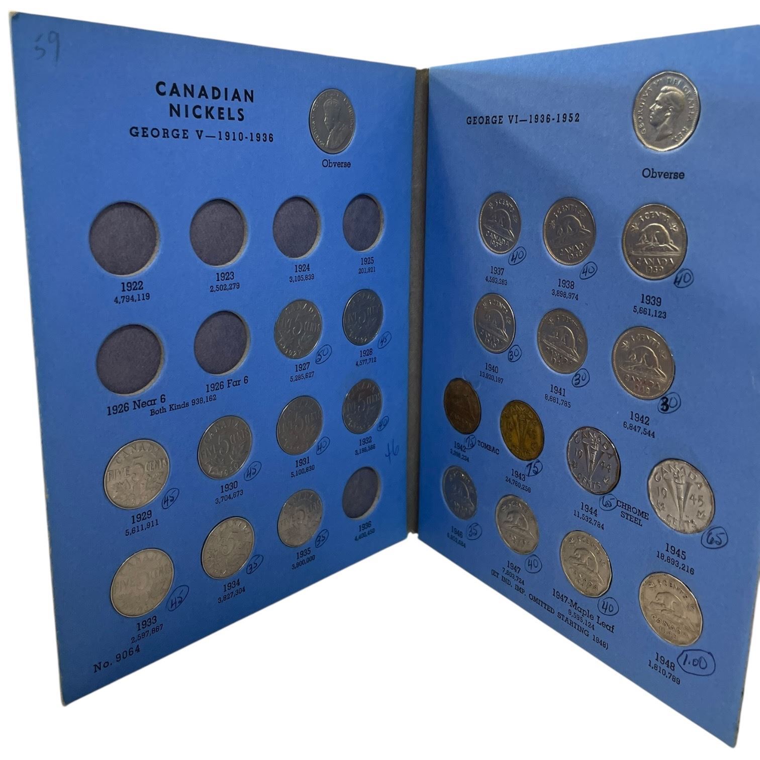 1 Canadian & Tube of 40+ Canadian Nickles from 1930s to 1950s (majority are 1940s)