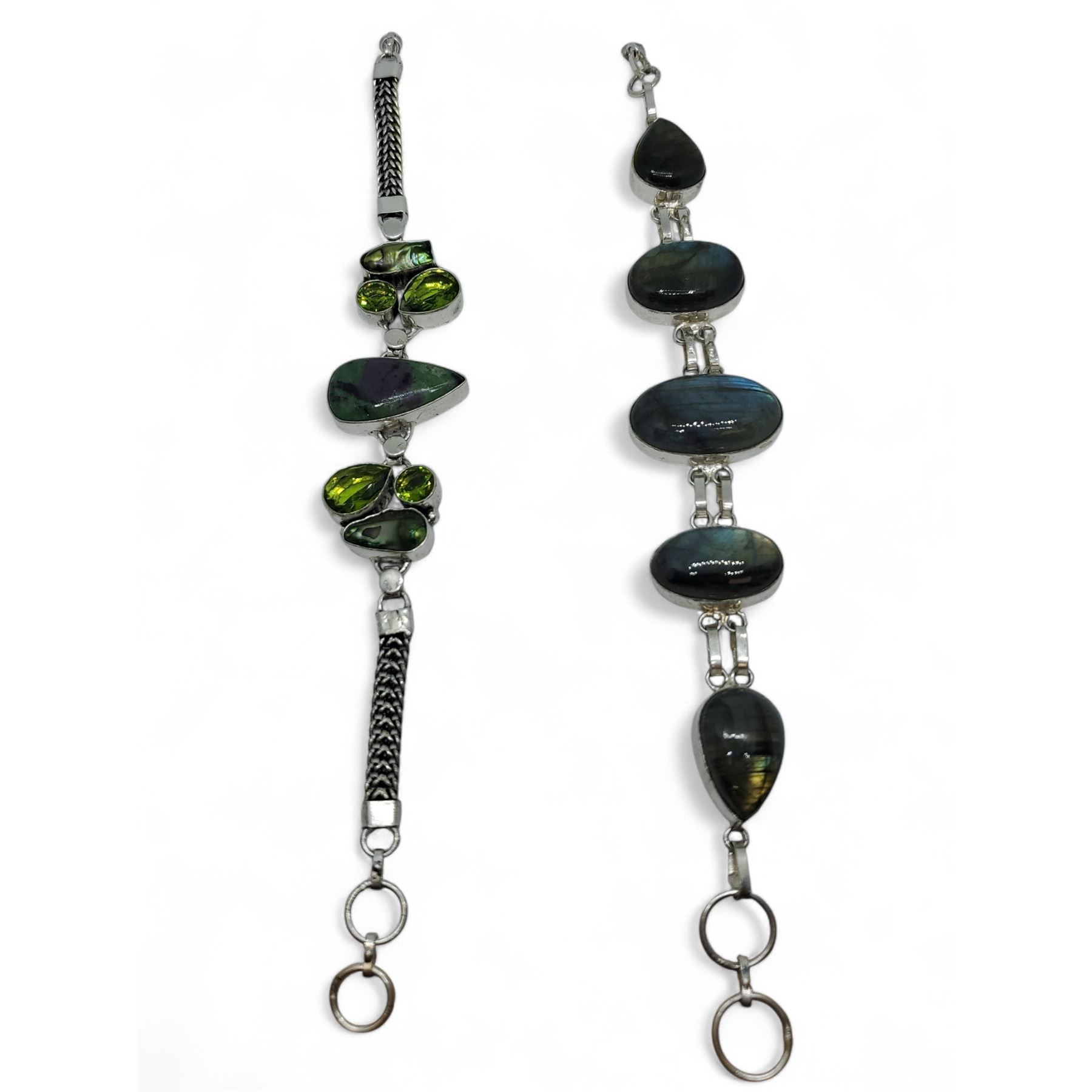 1 New Labradorite and 1 Ruby Zoisite & Emerald Crystal Bracelet in Silver Settings * Both stamped .925 (widest bracelet is 28 mm) * Total weight: 61.5 grams