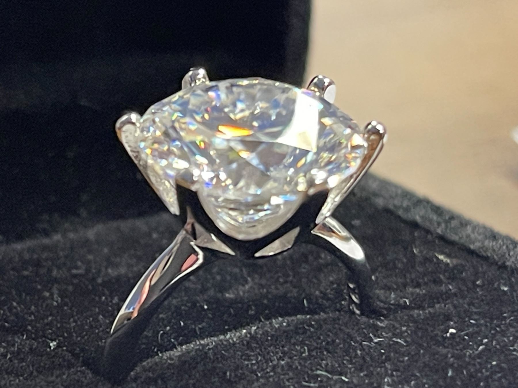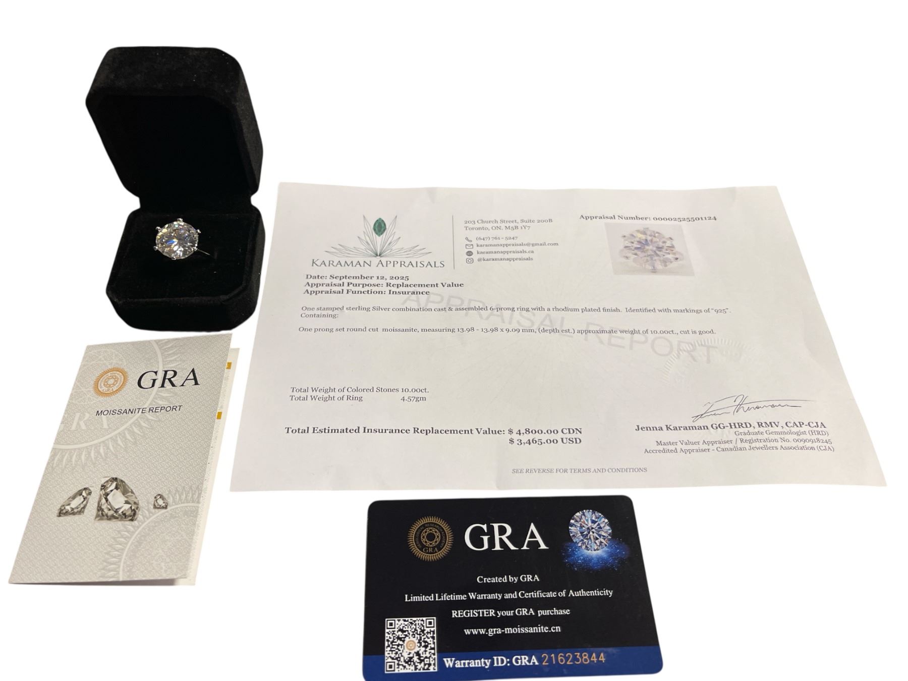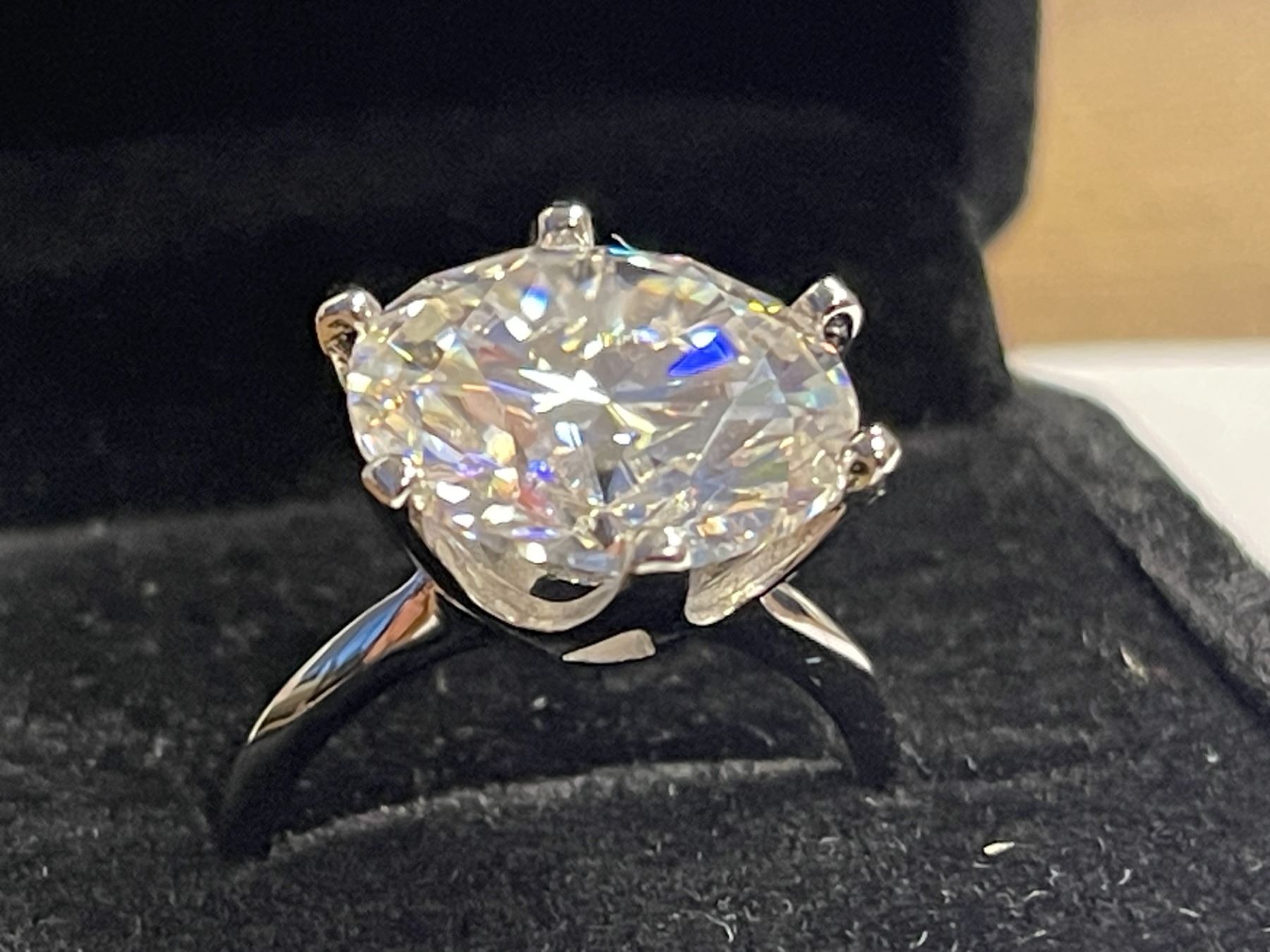 10.00 CT GRA CERTIFIED ROUND BRILLIANT CUT MOISSANITE STONE VVS D COLOR SET IN 6 CLAW HEAD SET IN 925 SILVER RING SIZE 7 RETAIL VALUE $4,800.00