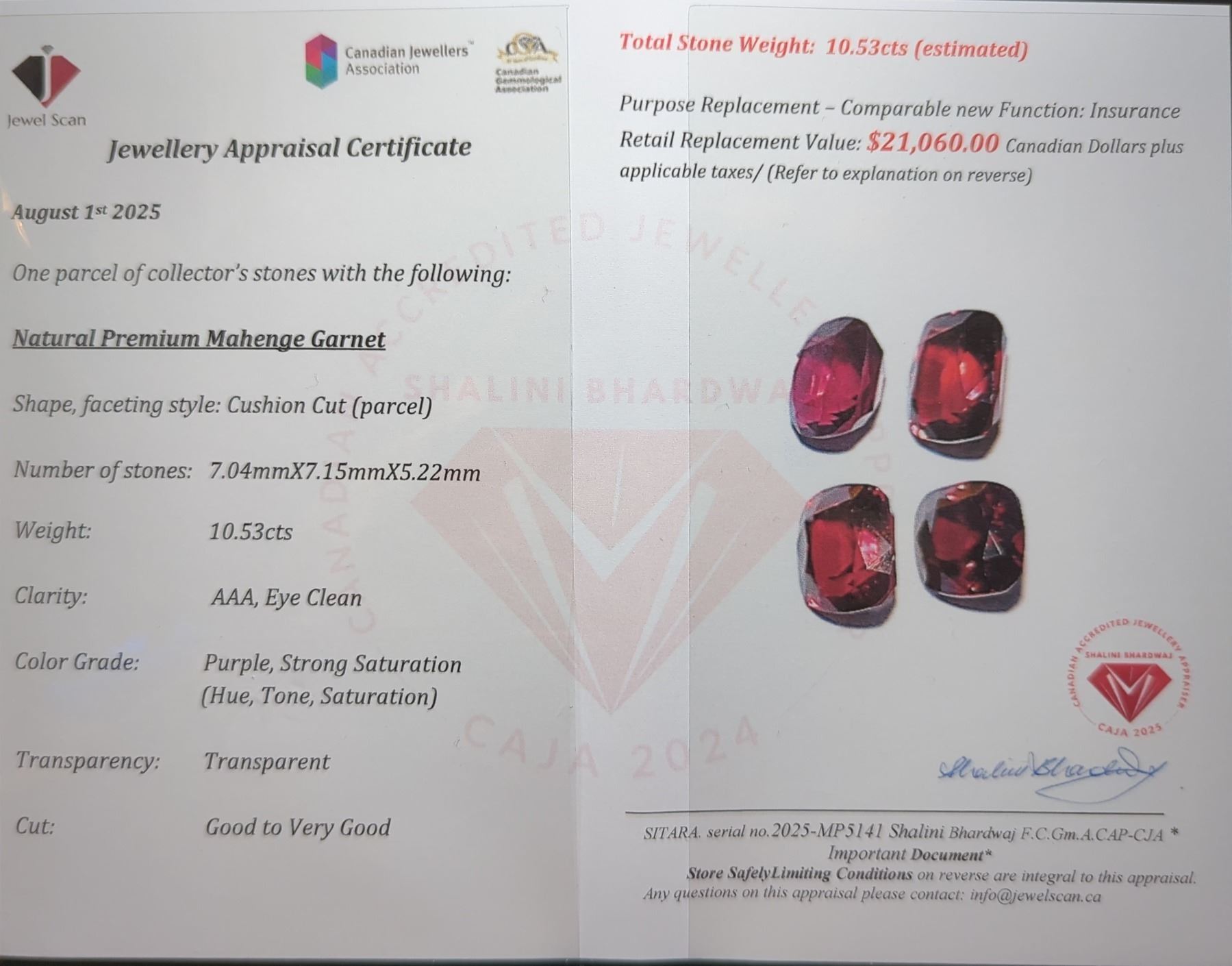 10.53 ct Certified Mahenge Garnet gemstone Parcel ($21,060 Appraisal)