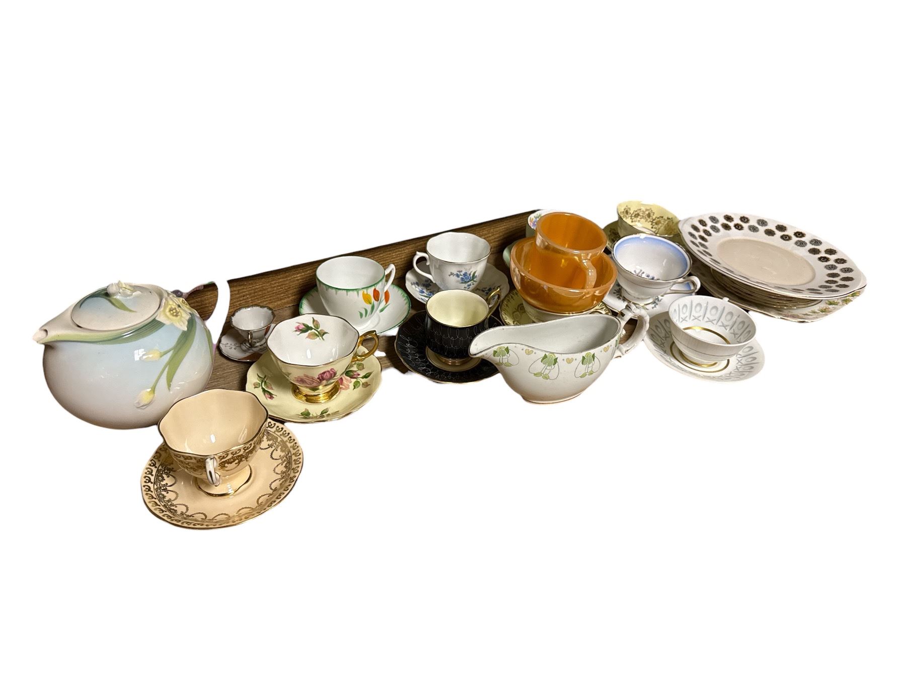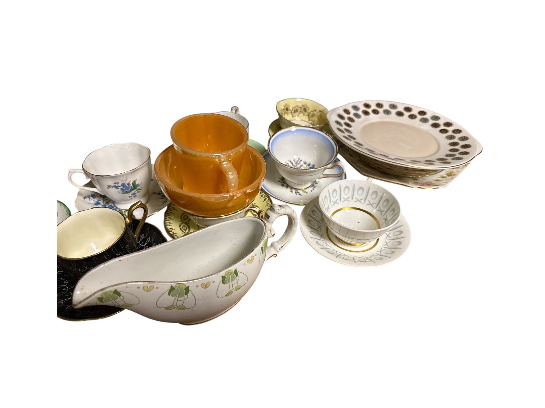 10+ Assorted Vintage Bone China Teacup & Saucer Group - Brands inlcudes Royal Albert, Anchor Hocking, and More