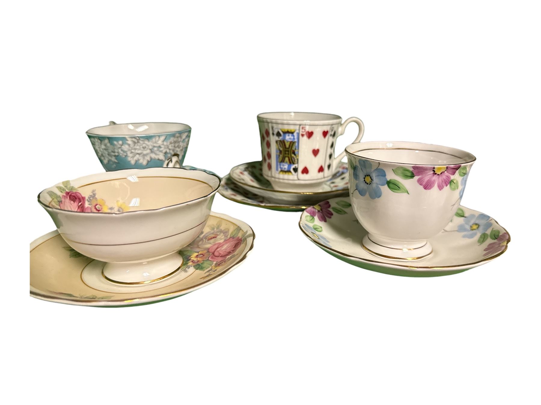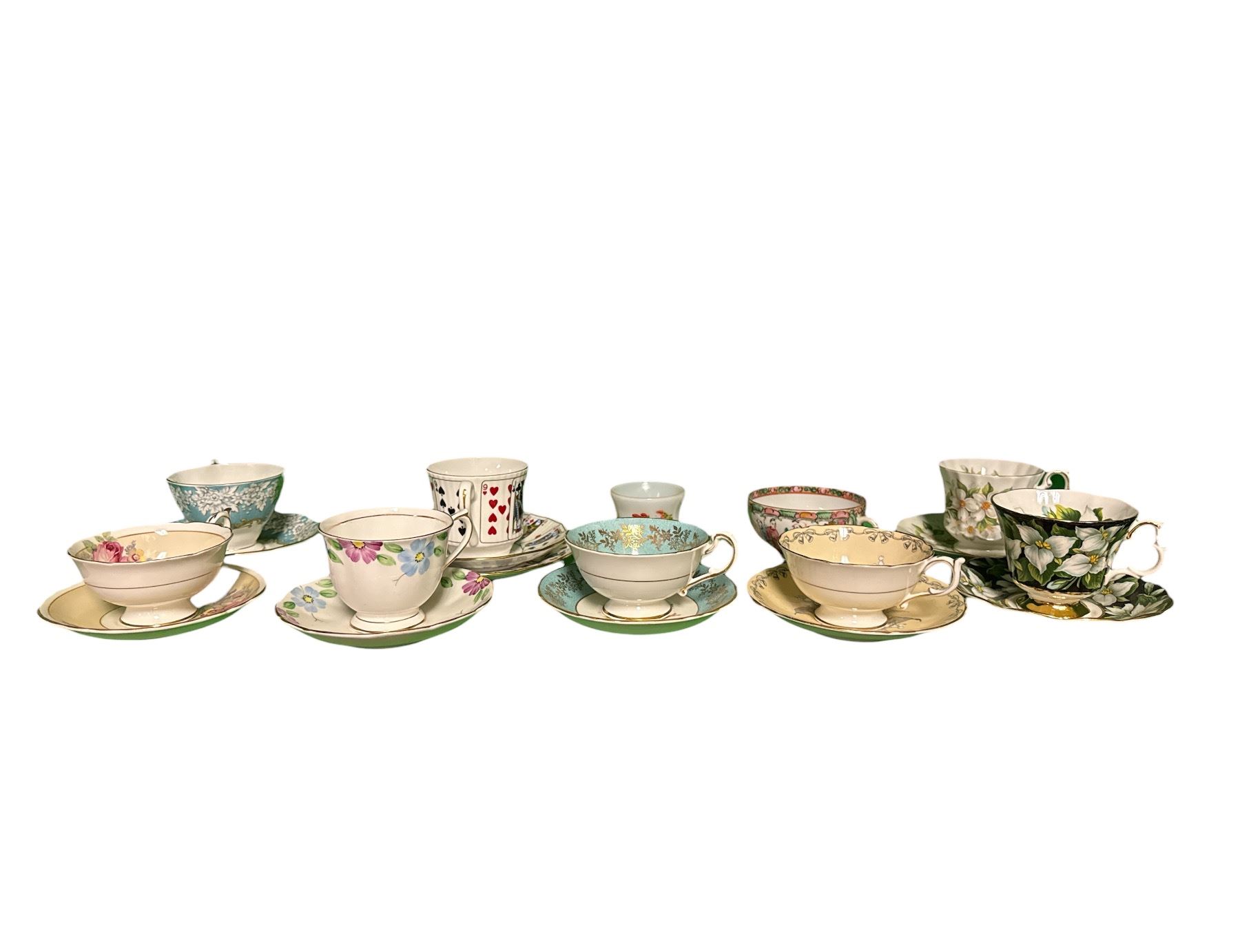 10 Assorted Vintage Bone China Teacup & Saucer Sets Includes Brands Royal Albert, Paragon