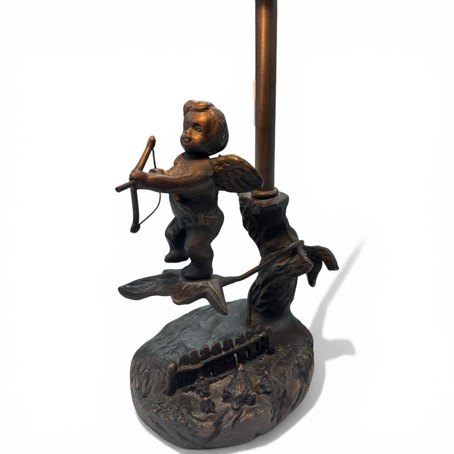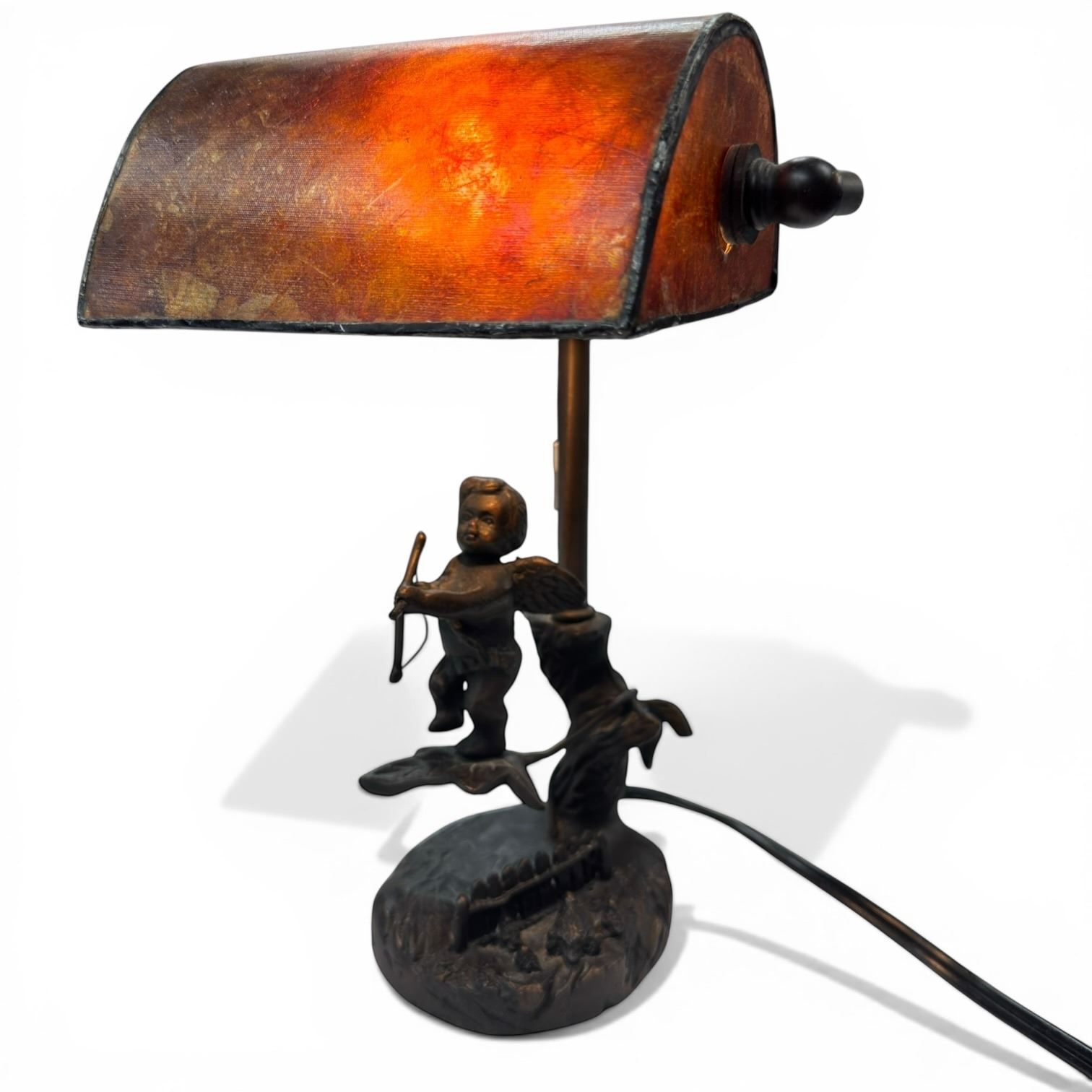 10" Cast Metal Cupid Lamp with Banker Style Shade (shade is 6" wide)