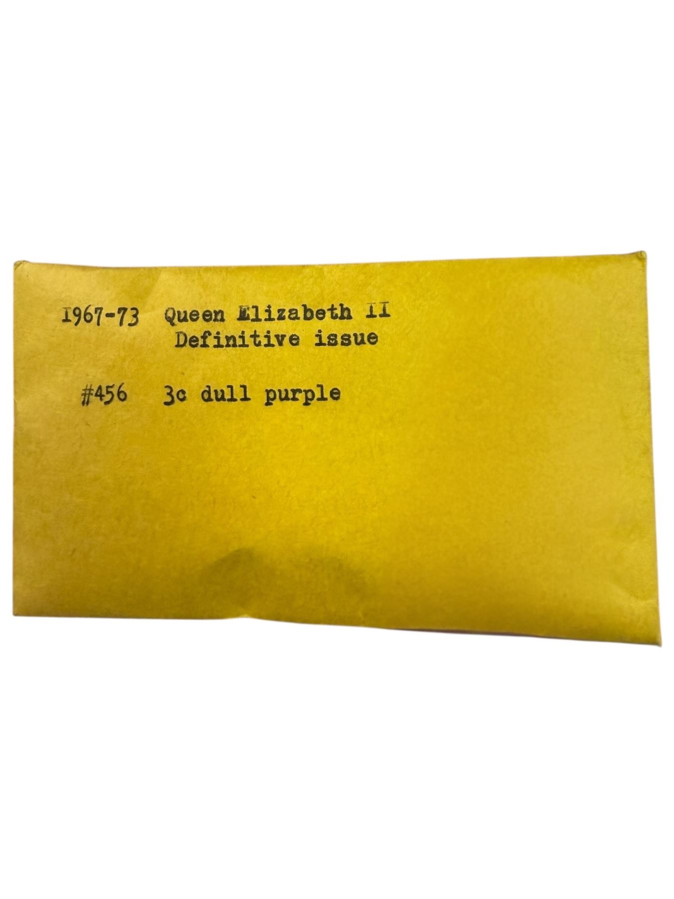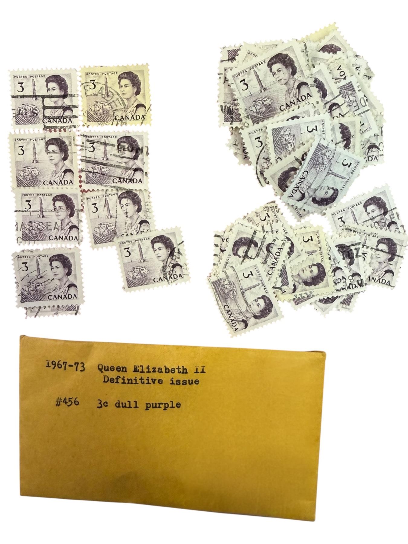 10 Gram Envelope of 1967-73 Queen Elizabeth II Definitive Issue 3¢ Dull Purple Stamps * Used