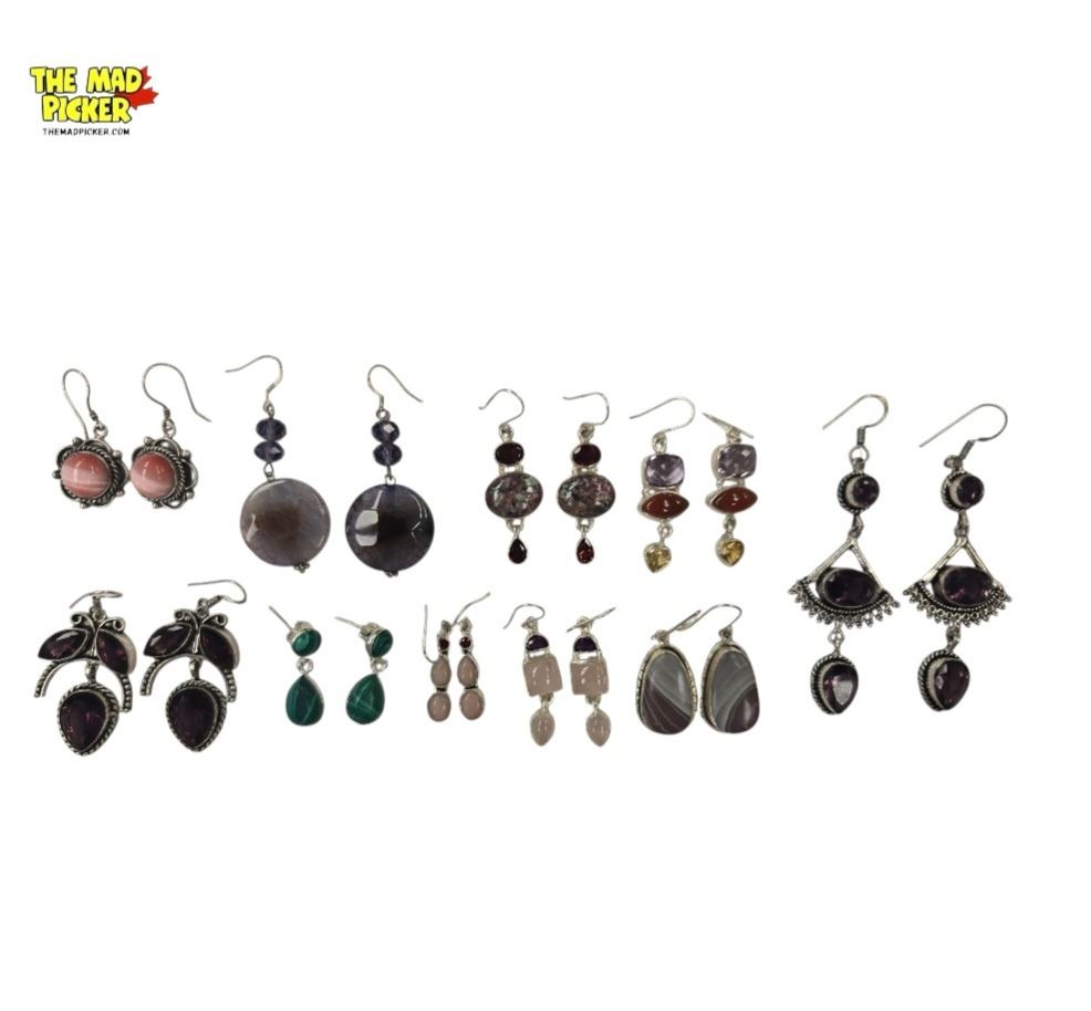 10 New Pairs of Earrings in Silver Settings - Variety of Natural, Polished and Faceted Materials (ma