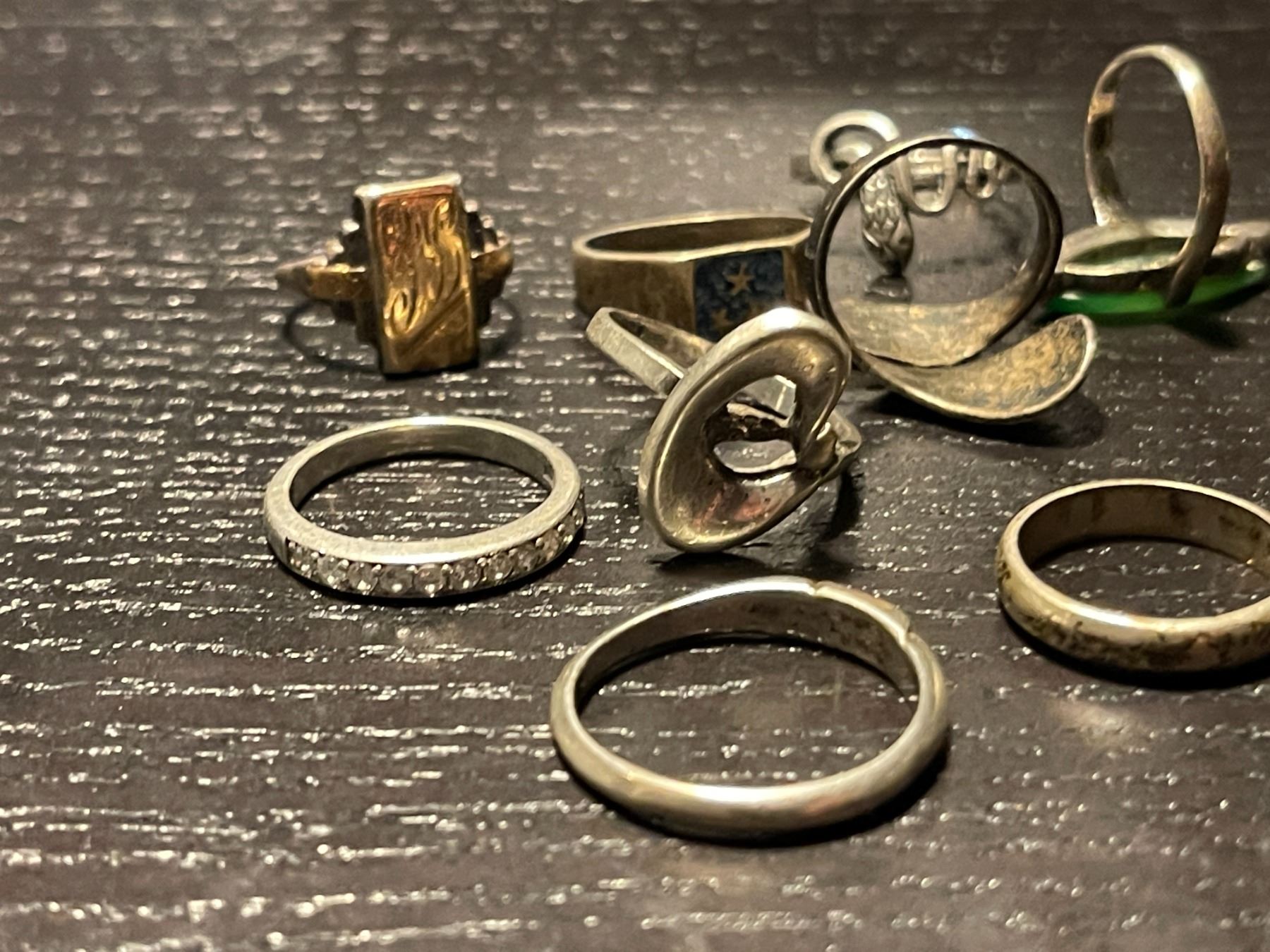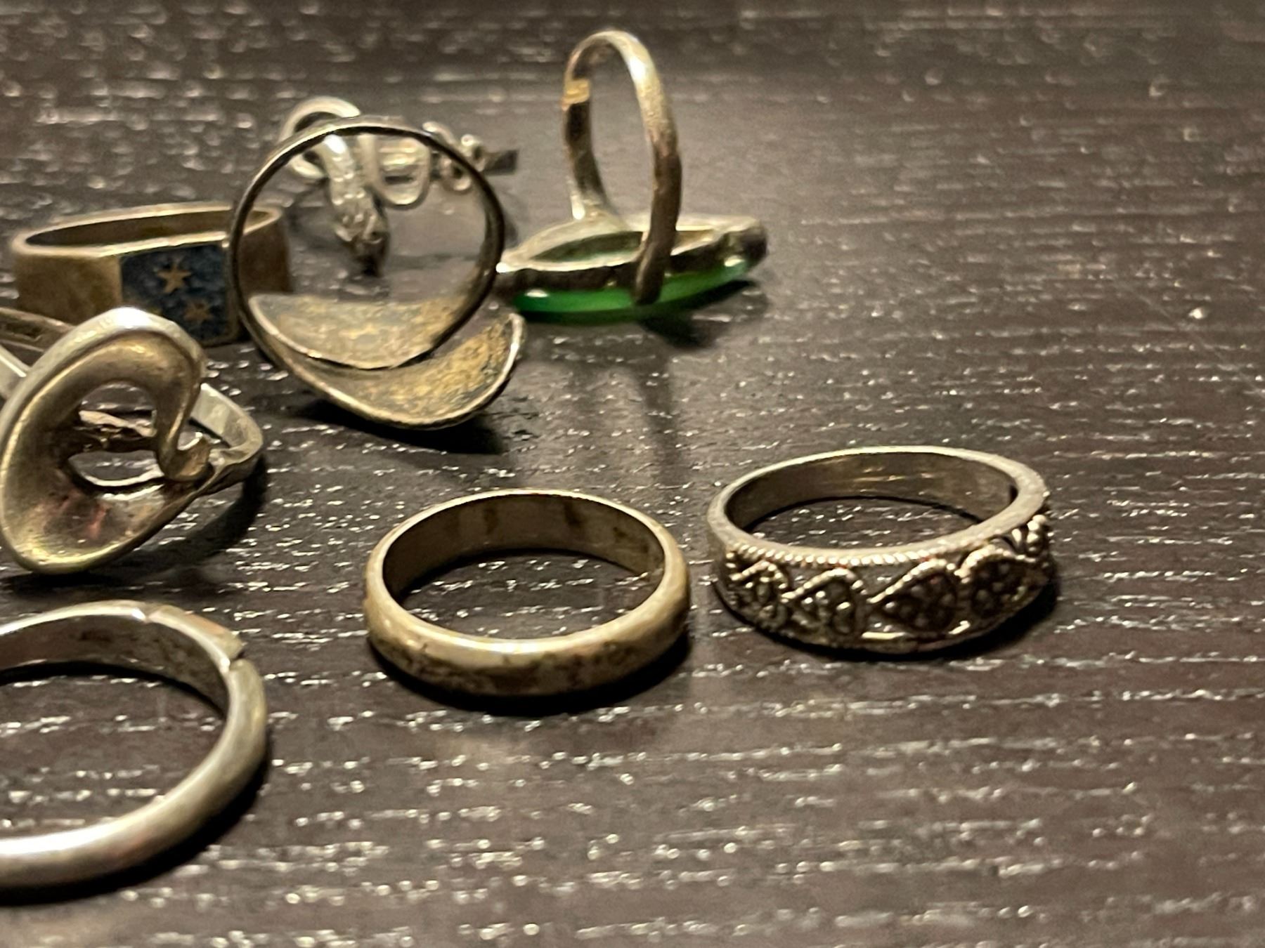10 Sterling Silver Rings - Total weight including gems: 25 grams