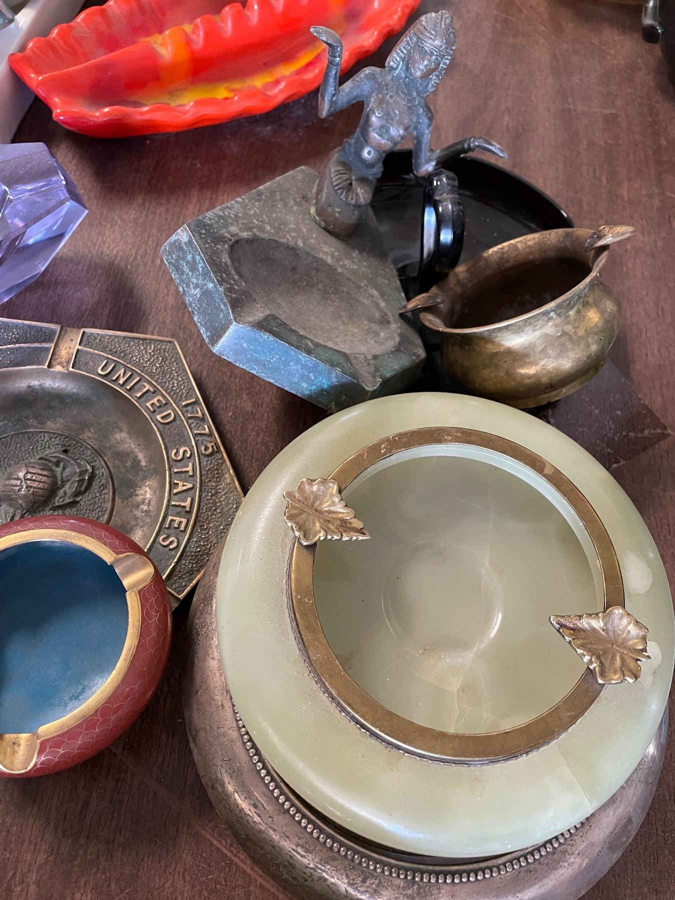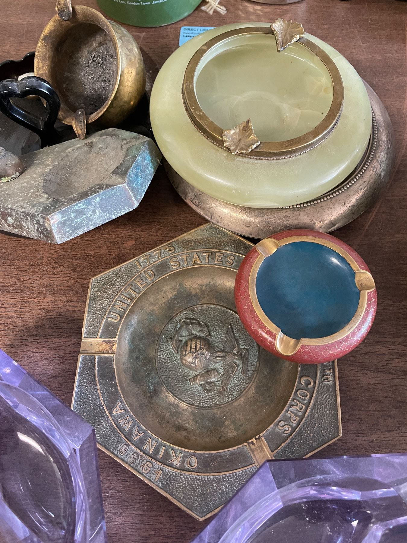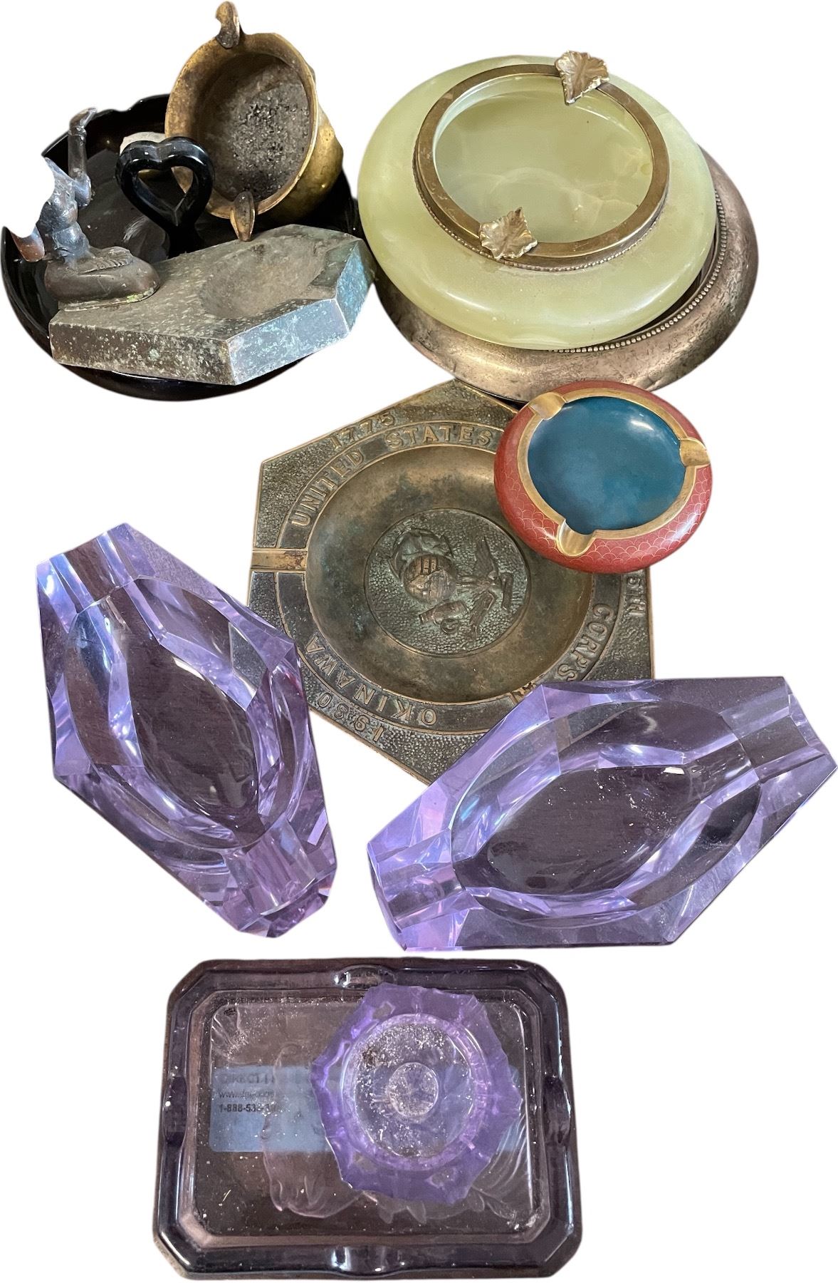 10 Vintage Ashtrays - Mixed Styles Glass, Metal & Stone