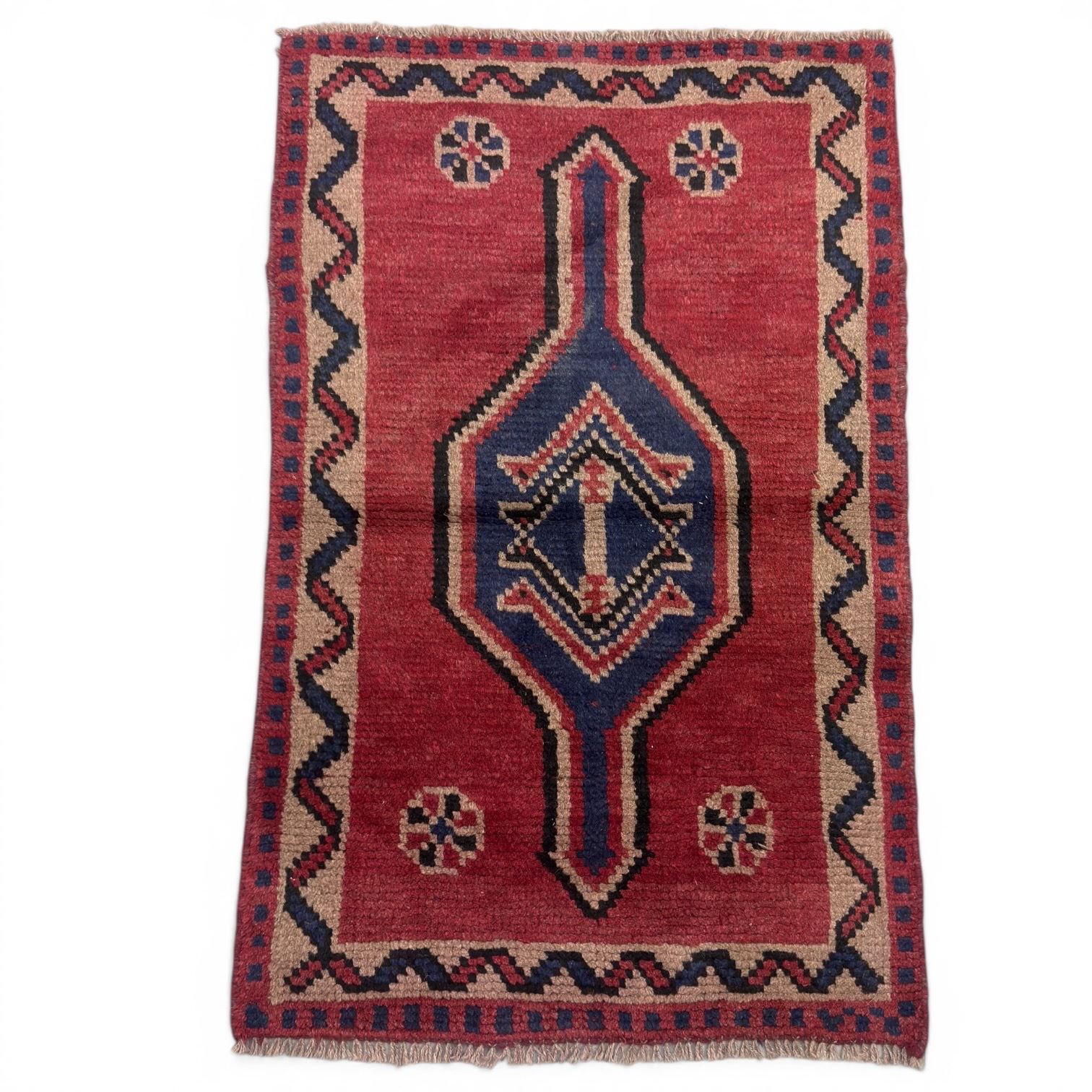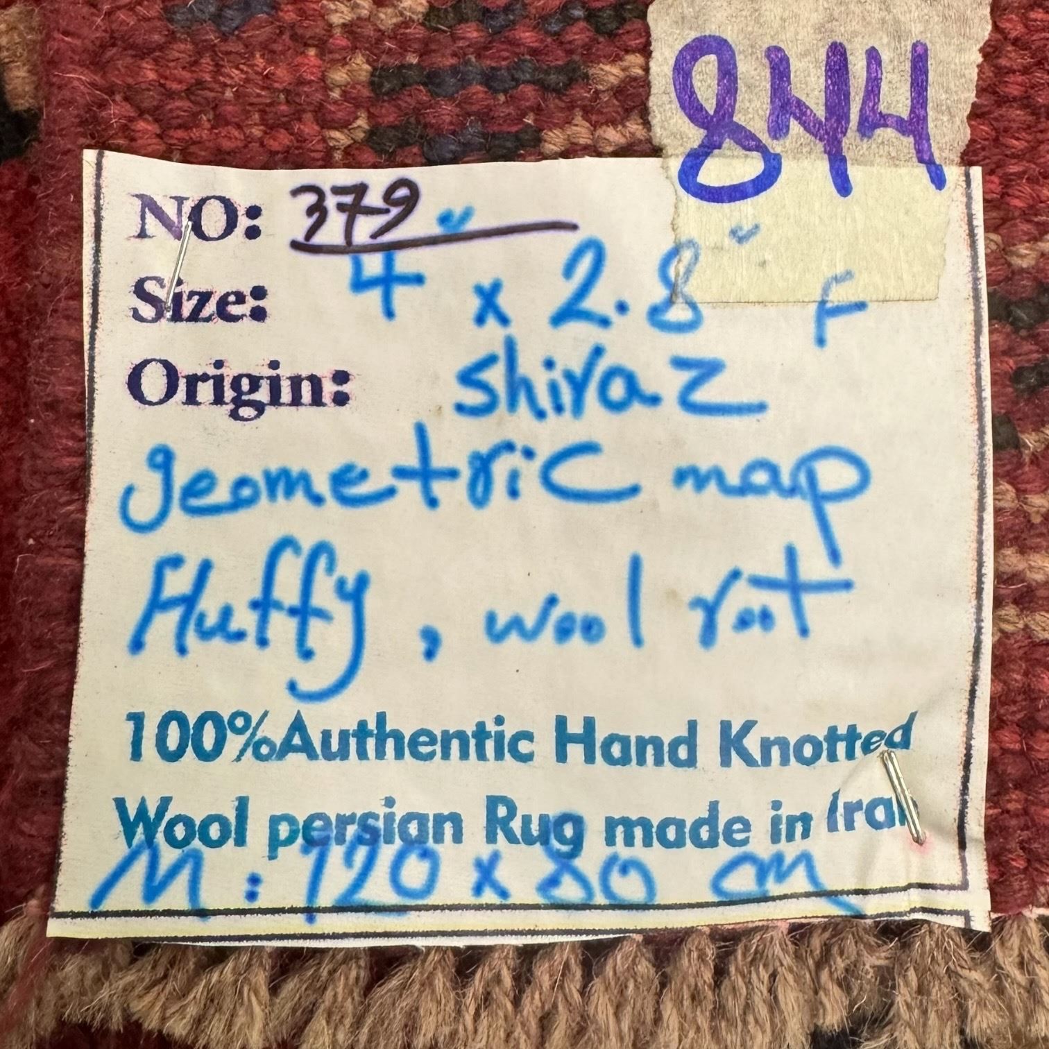 100% Hand Knotted Made in Iran 4'x2'8" Shiraz Region Geometric Map Fluffy Wool Root Rug (379)