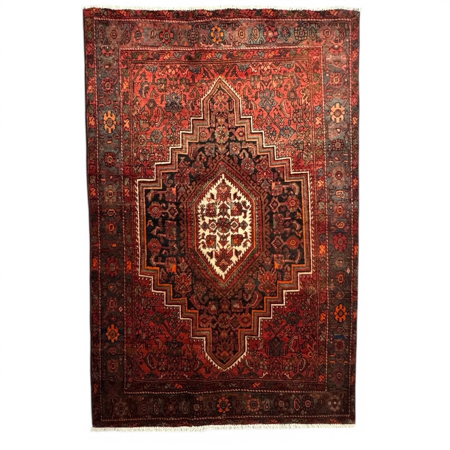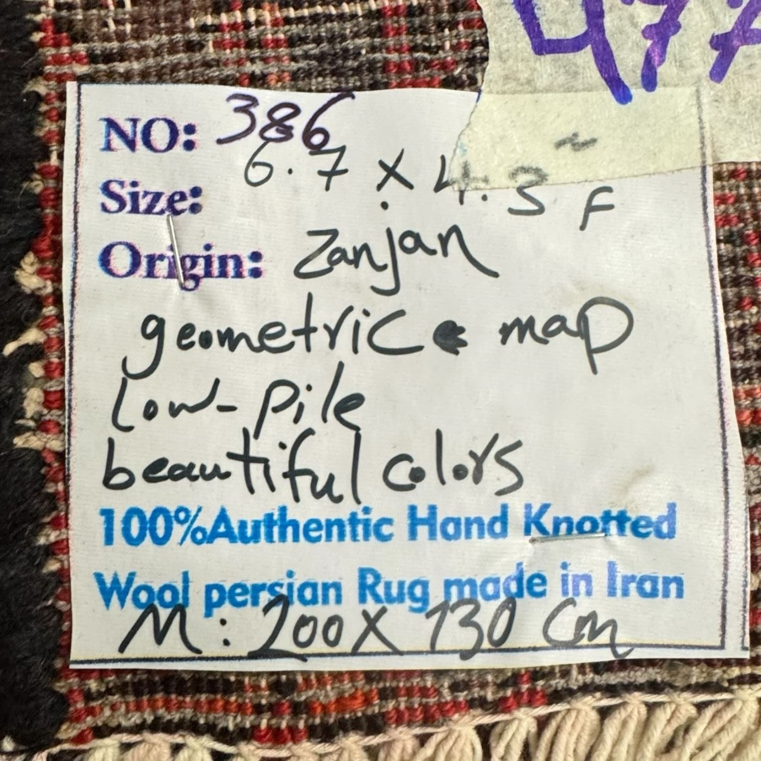 100% Hand Knotted Made in Iran 6'7"x4'3" Zanjan Region Geometric Pattern Map Low Pile Carpet (386)