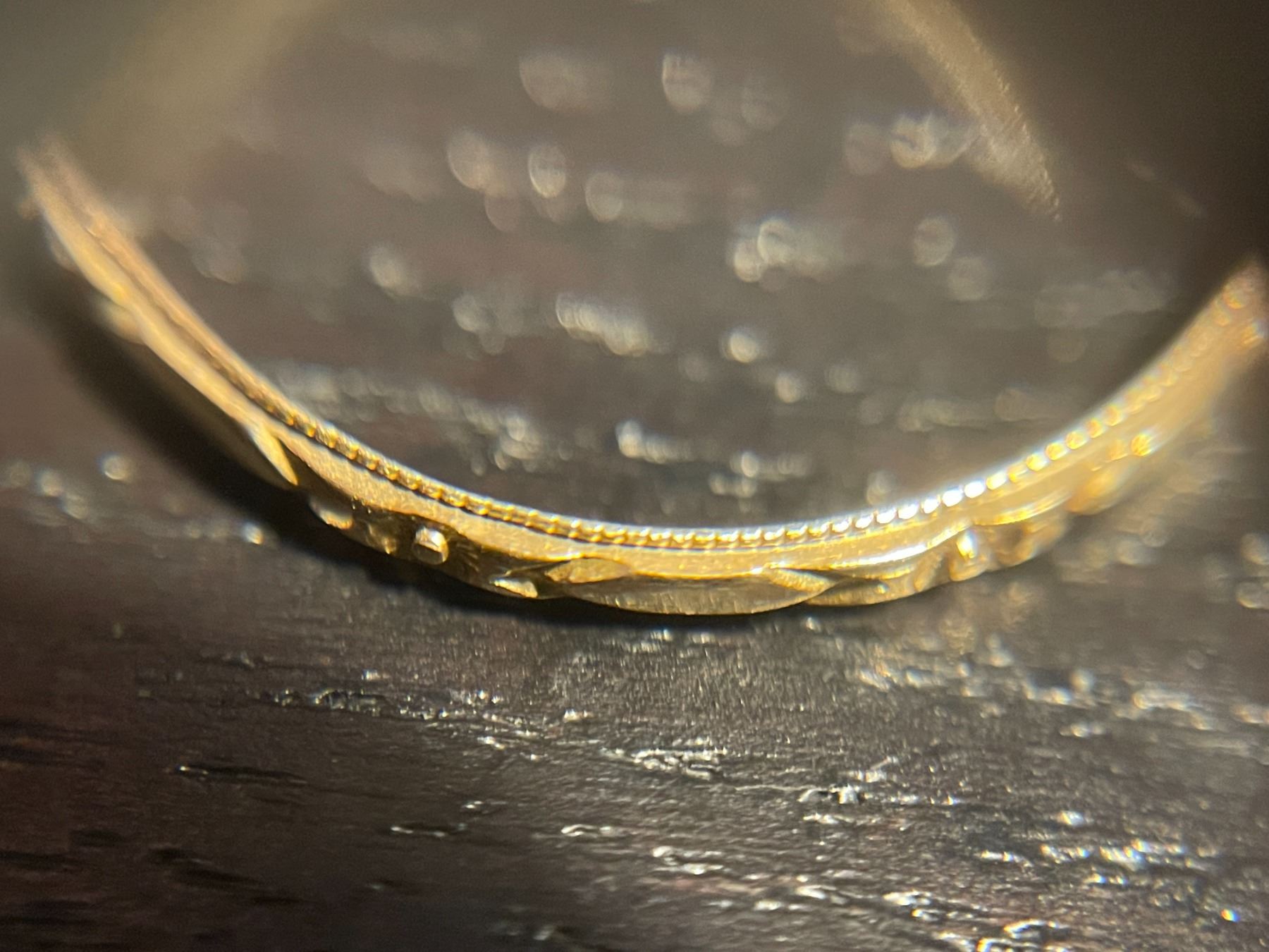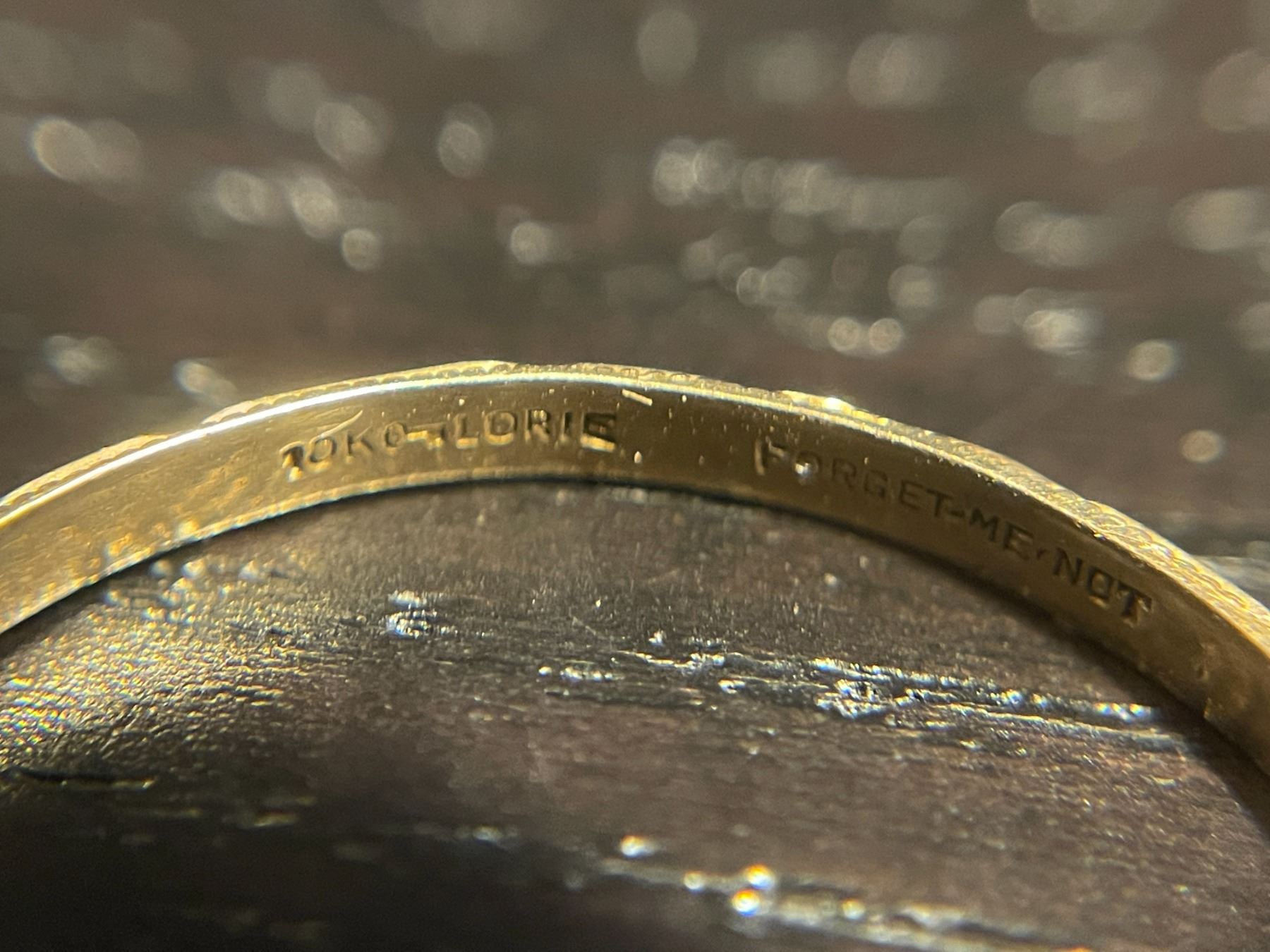 10KT Yellow Gold Band Ring - Size 12.5 - 2mm wide - Weight: 0.5 grams. Engraved inside "Forget Me Not"