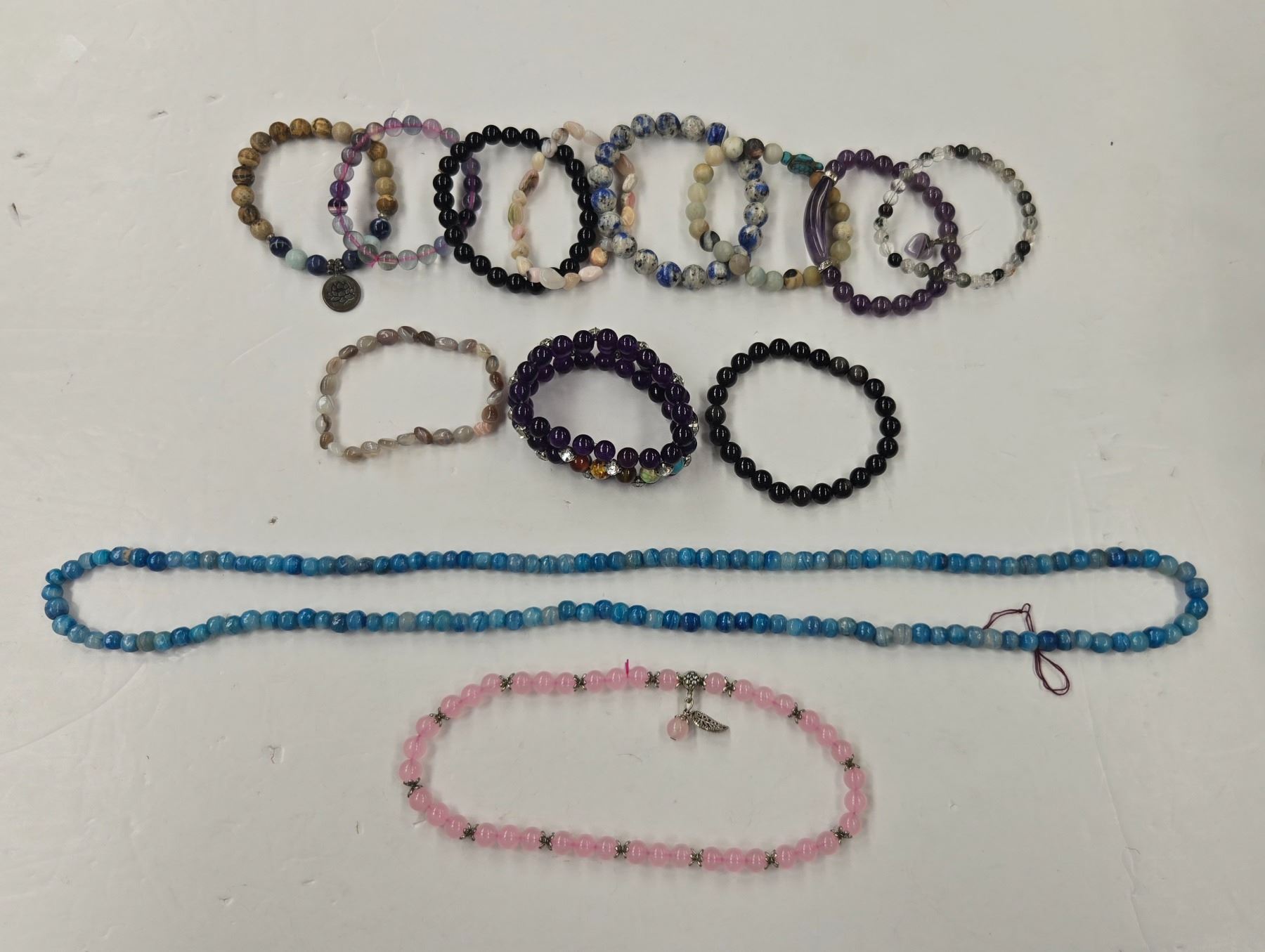 11 New Natural Stone, Glass & Lava Bead Stretch Bracelets & 2 Necklaces