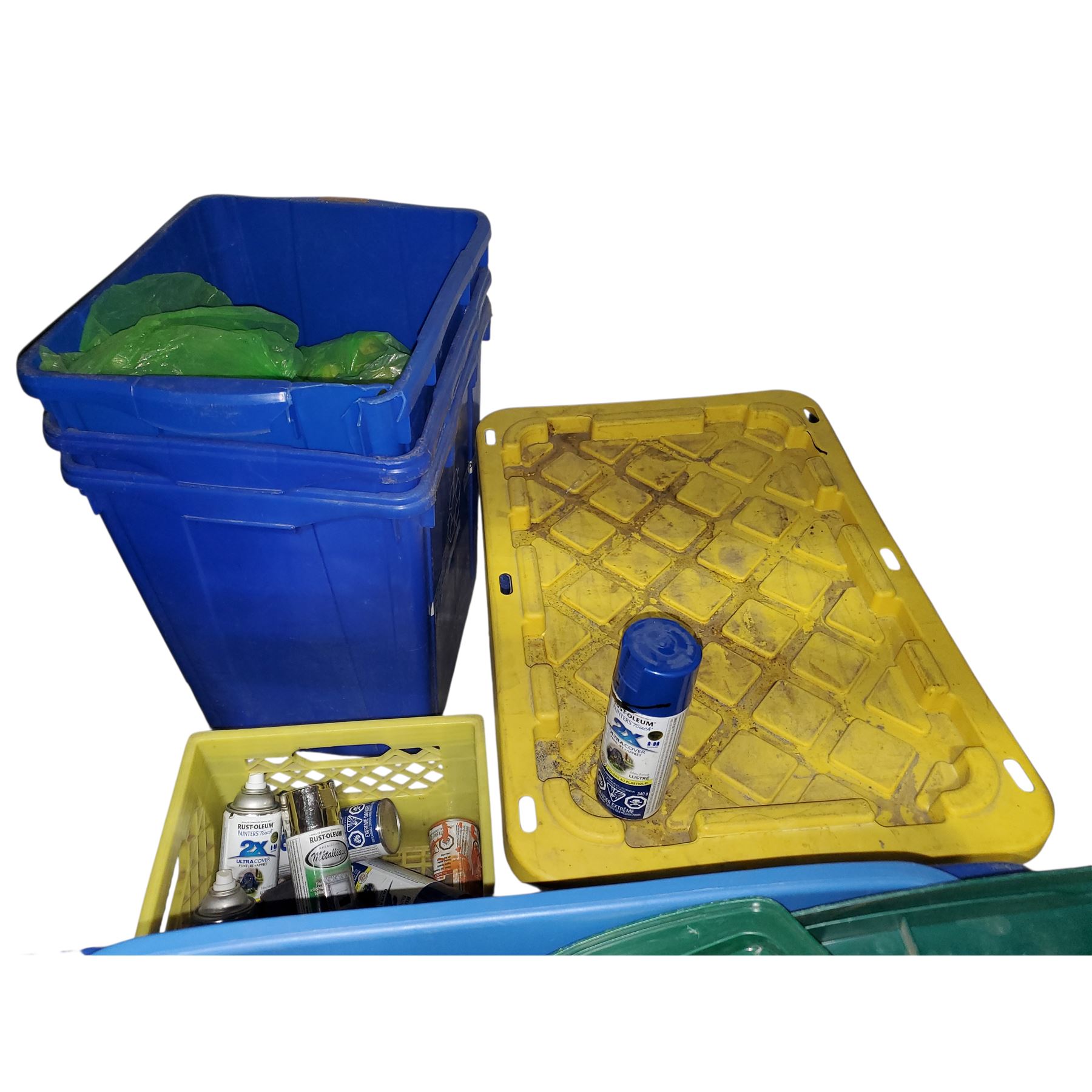 11 Plastic Storage Bins & Recycling Containers (Without Lids) and 6 Rust-Oleum Painter's Touch Spray Paint