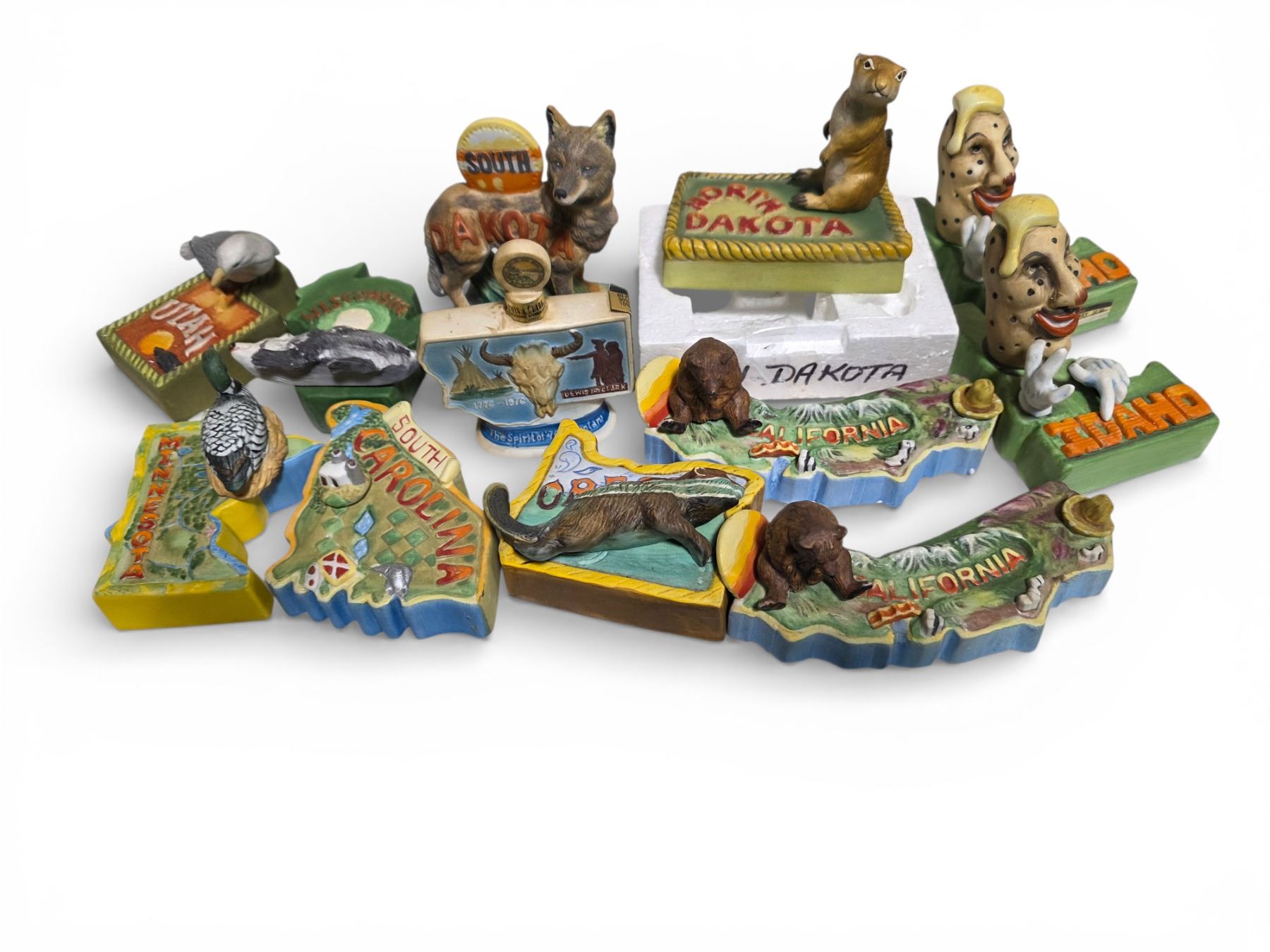 12 Assorted Ceramic Figurine Empty Decanters Includes State Mini Series, and More