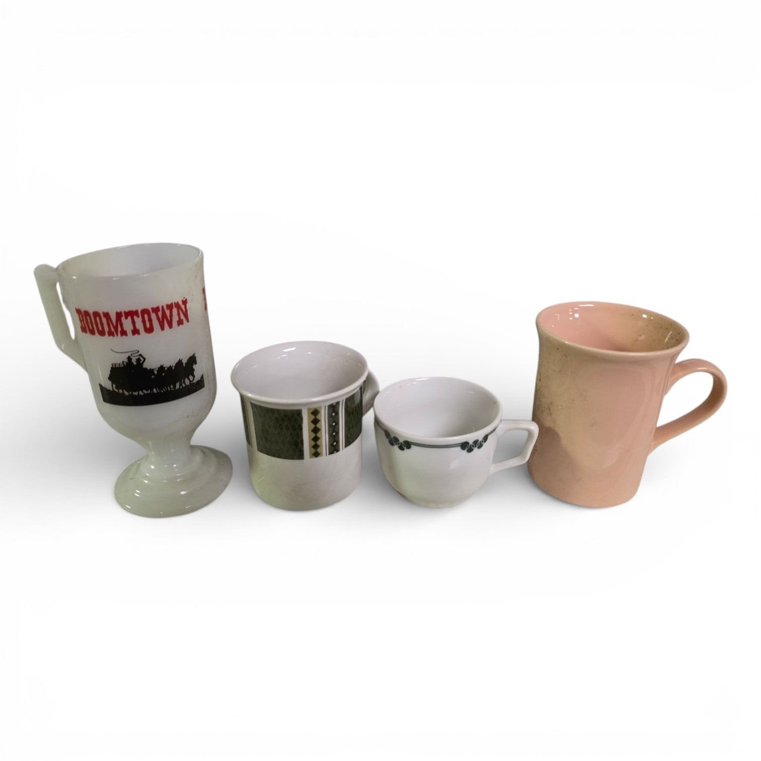 12+ Mugs Includes Vintage Boomtown Casino Milk Glass & Swinnertons Padua Green Leaf, and More