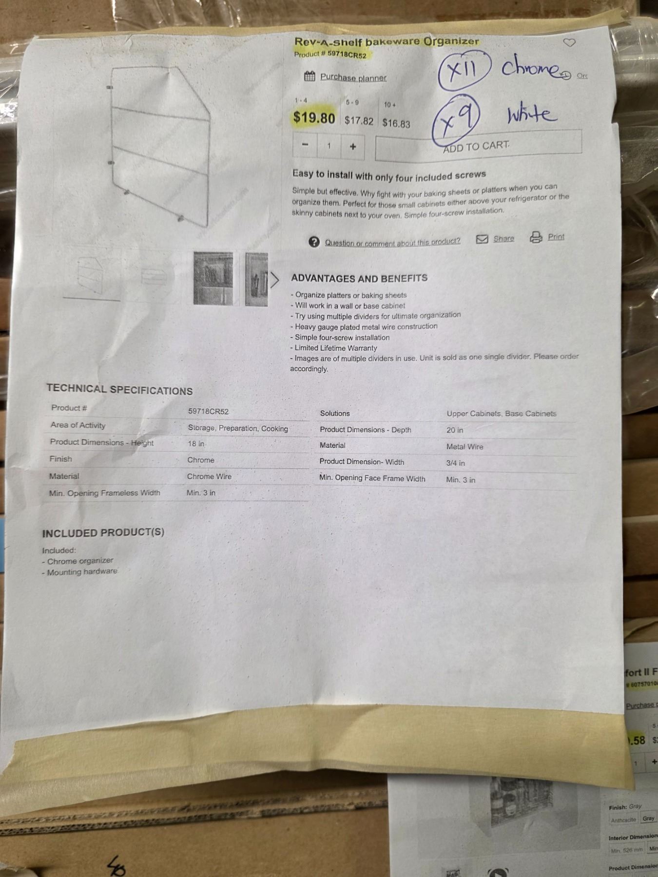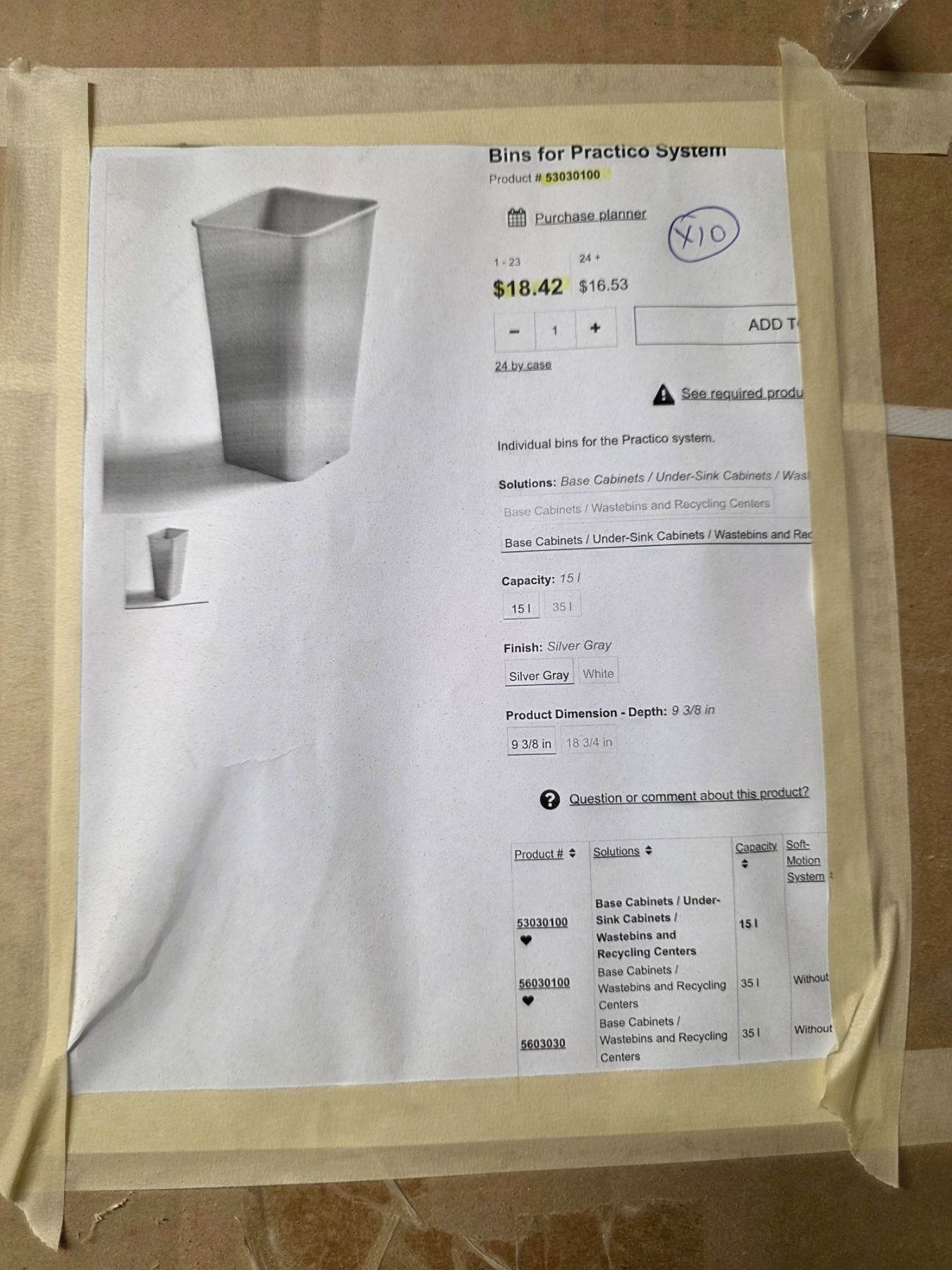 12 Pc - Practico Garbage Bins (10) / Rev-A-Shelf Bakeware organizers (20) - Wholesale Value: $580