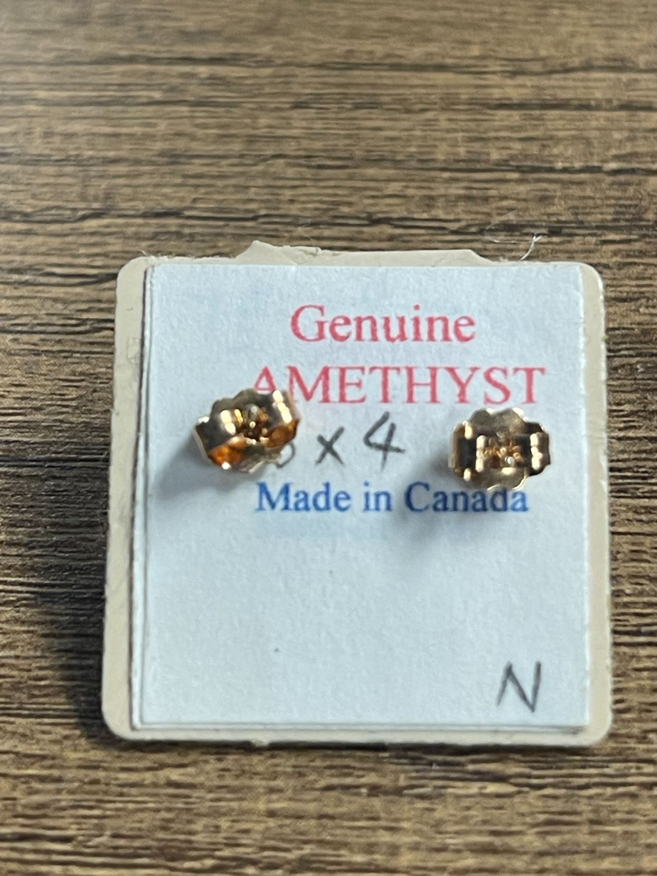 14 KT Gold Amethyst Stud Earrings - Butterfly Backs - Gemstones are 3.5 mm x 6 mm