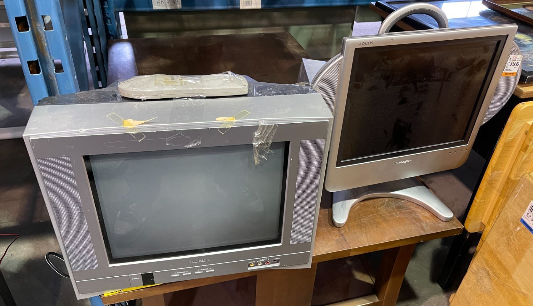 14  Toshiba TV w/ remote / 14  Sharp Aquos TV