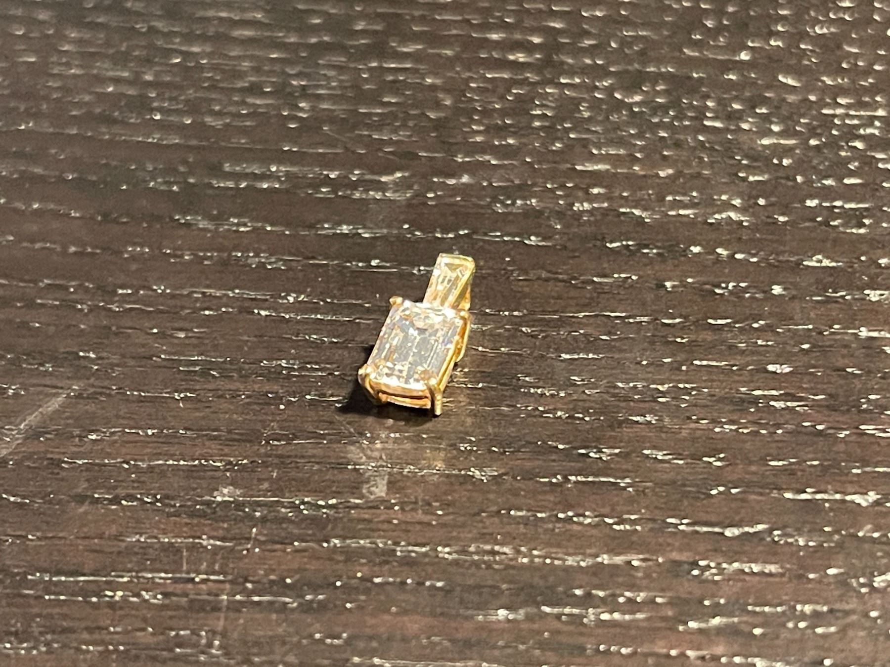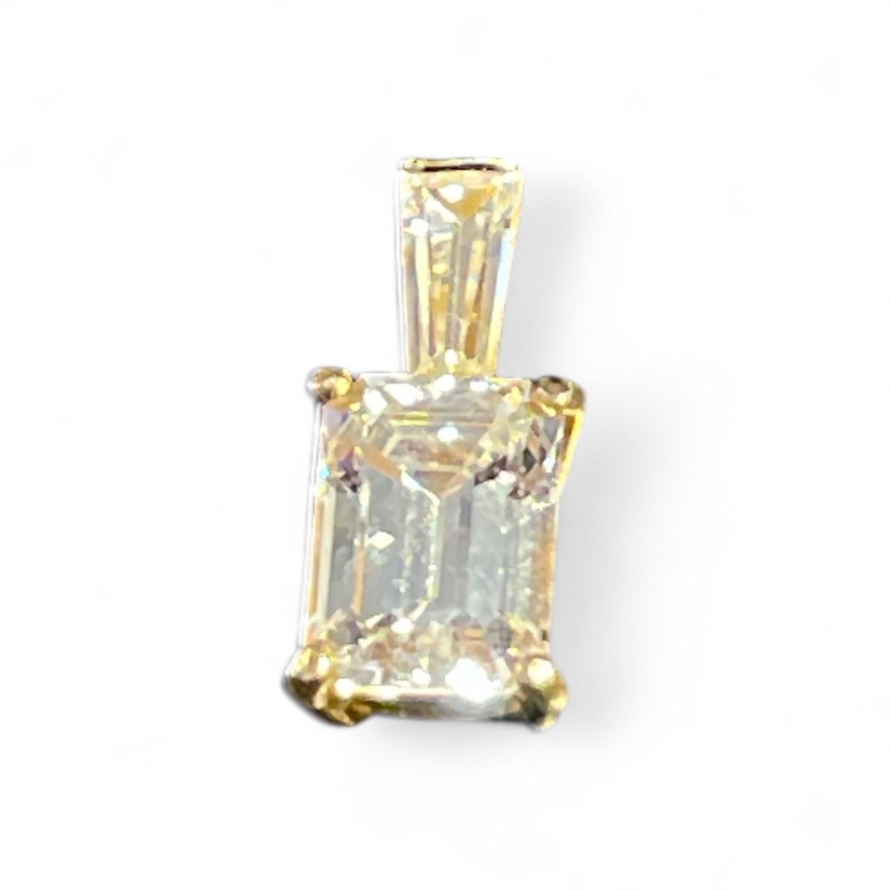 14KT Gold White Topaz Pendant - Emerald cut stone is 4.9mm x 7mm - Total weight including gemstone: 0.5 grams