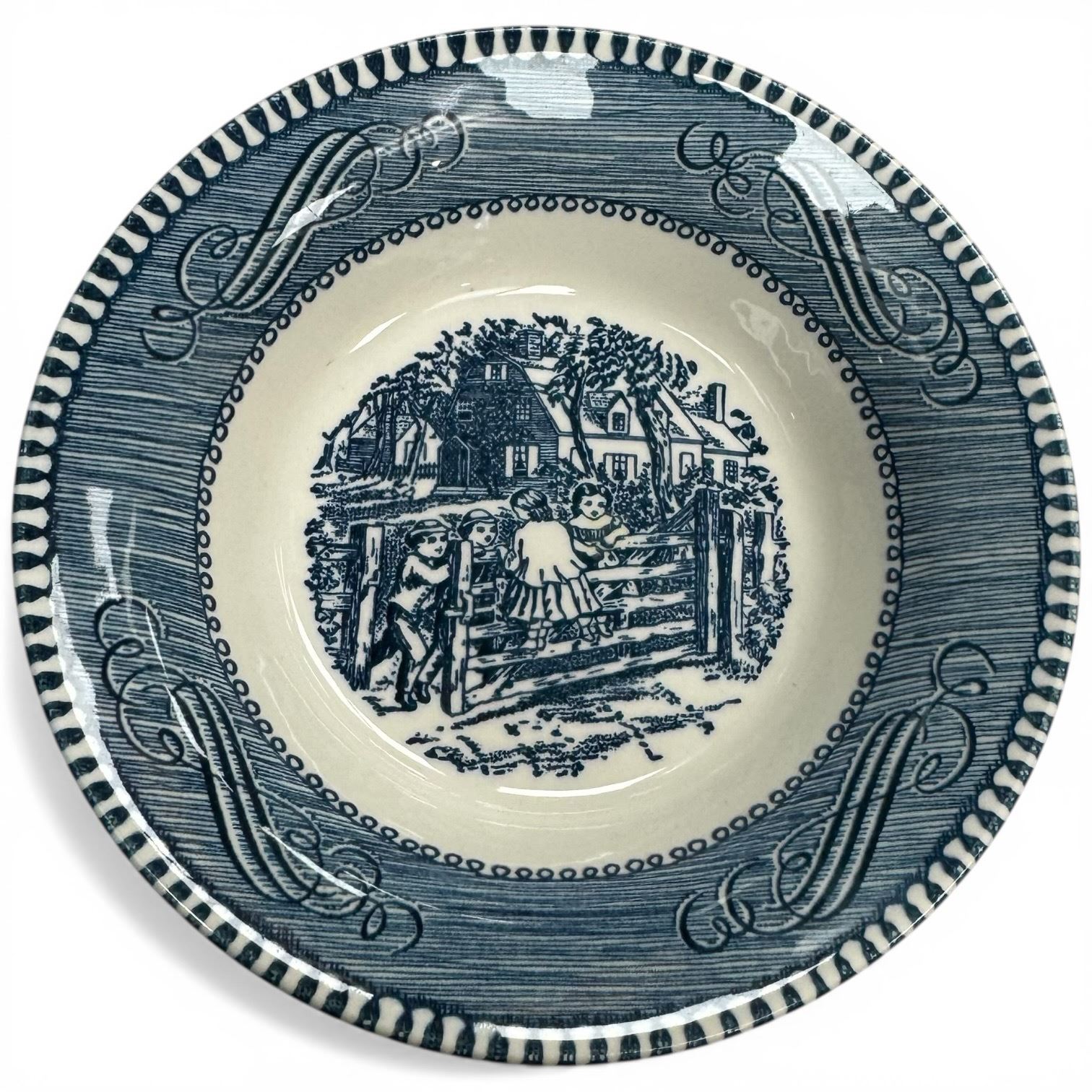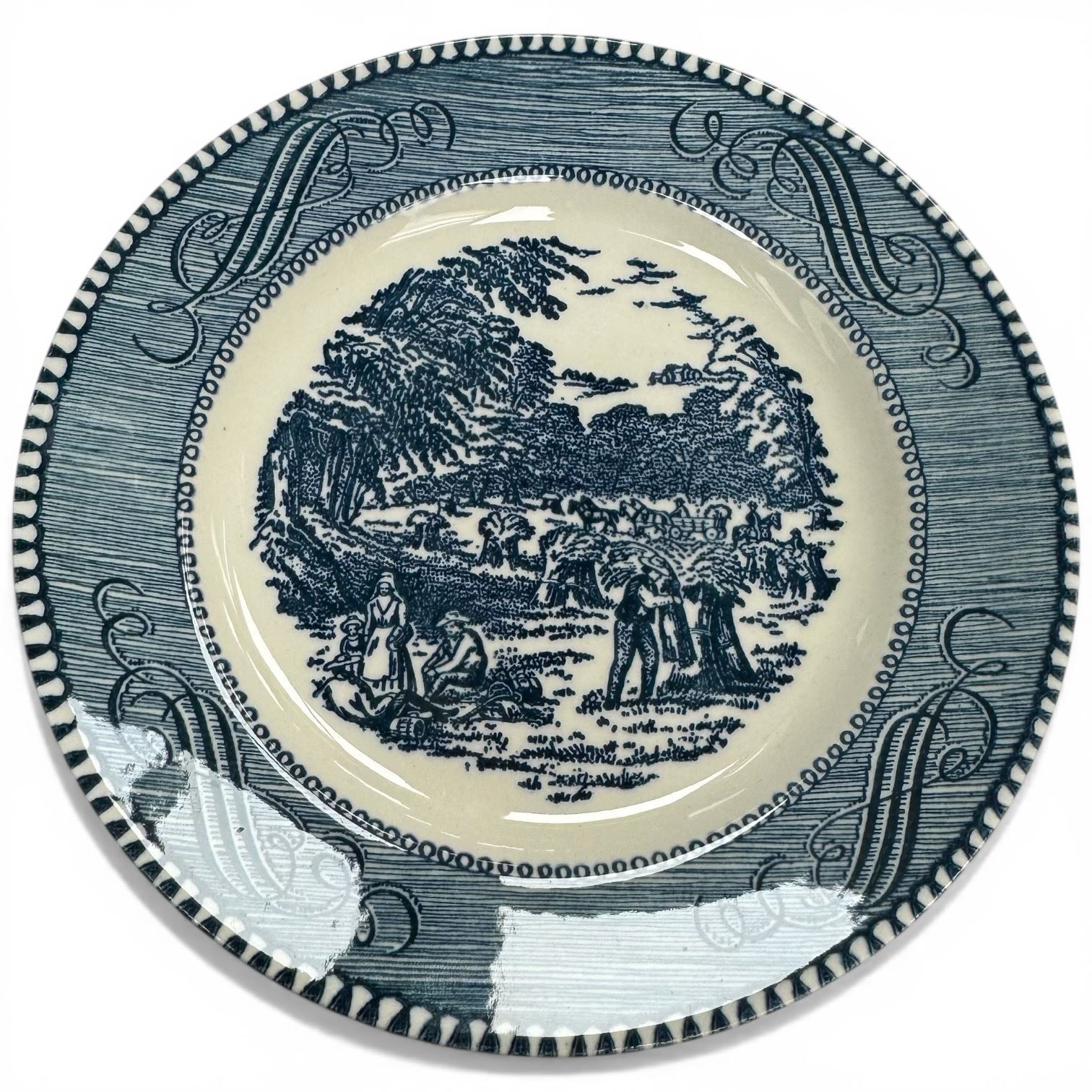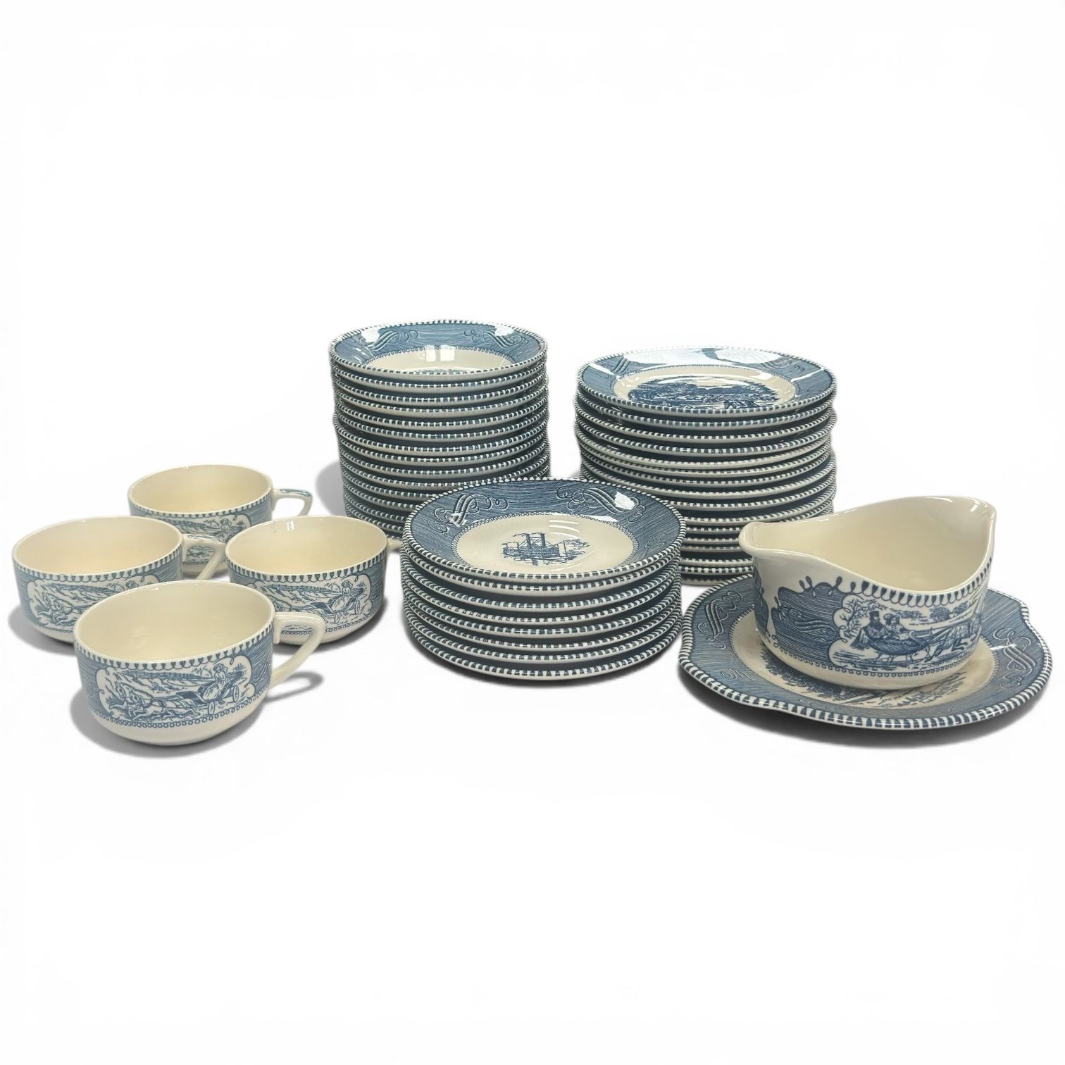 15 Dessert Bowls & Plates Plus 4 Coffee Cups and a Sauce Bowl with Currier & Ives Designs