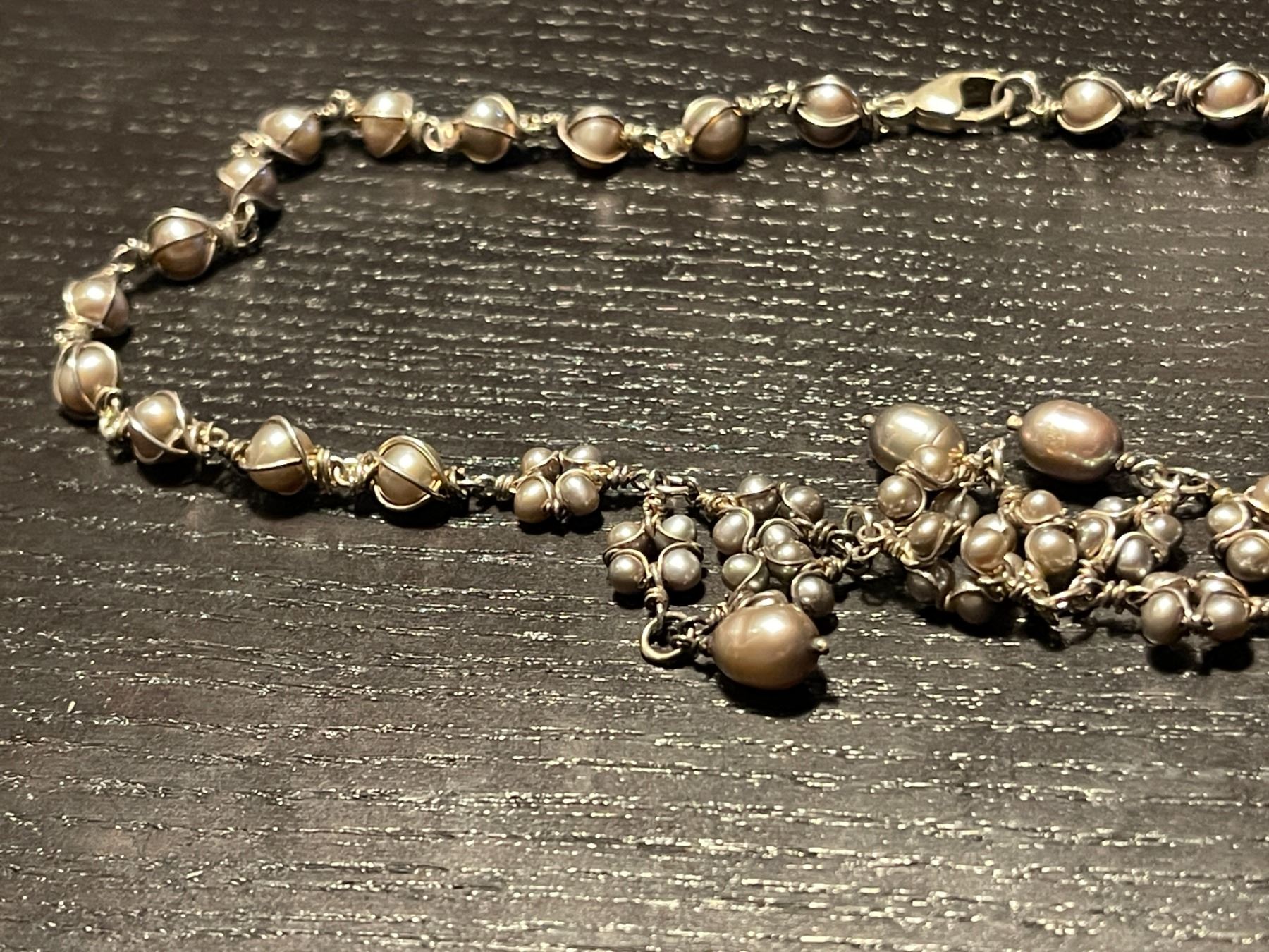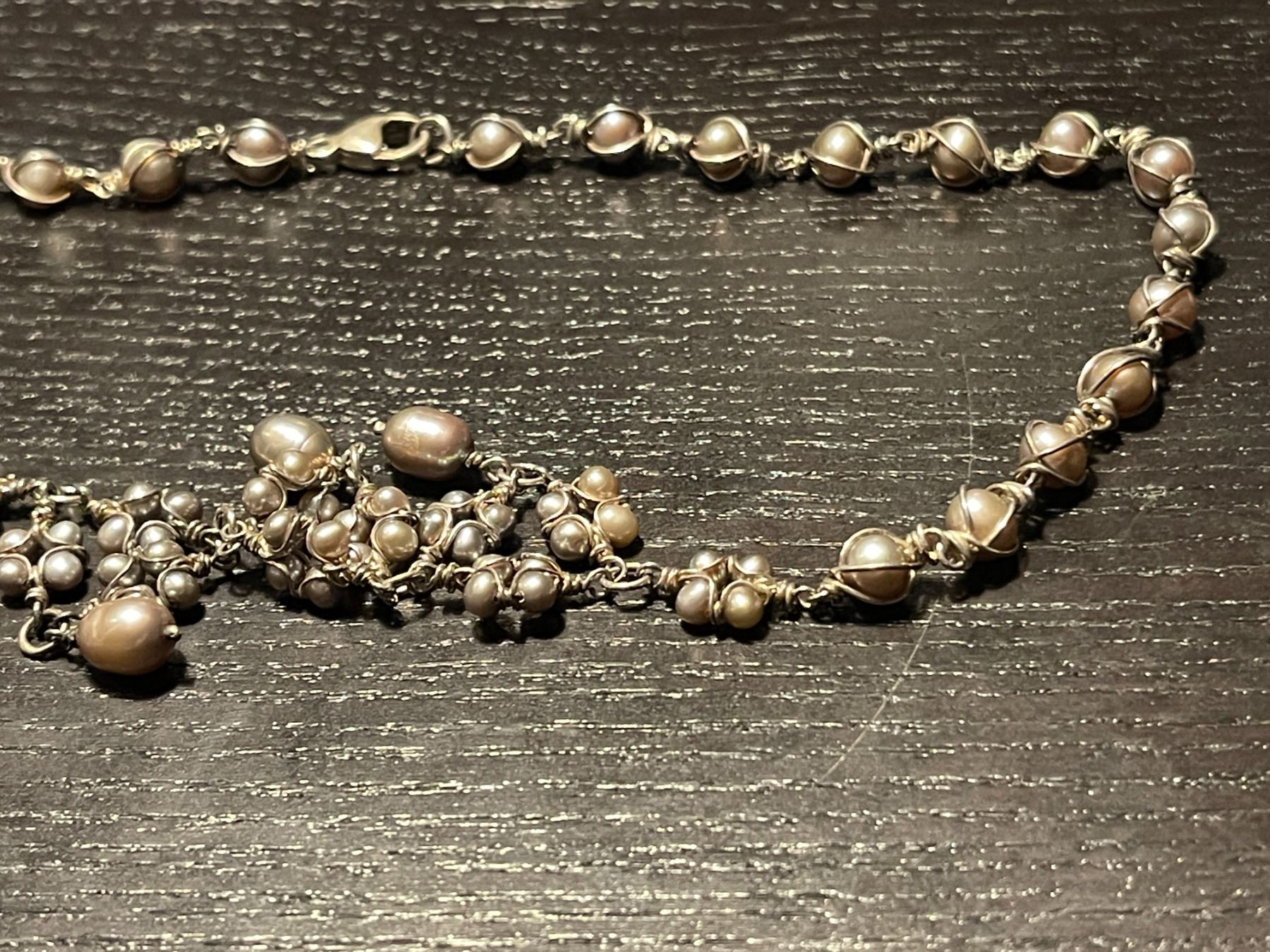 16" Sterling Silver and Grey Pearl Necklace