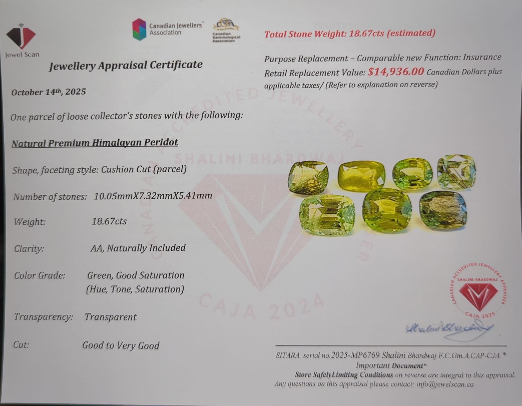 18.67 ct Certified Himalayan Peridot gemstone Parcel ($14,936 Appraisal)