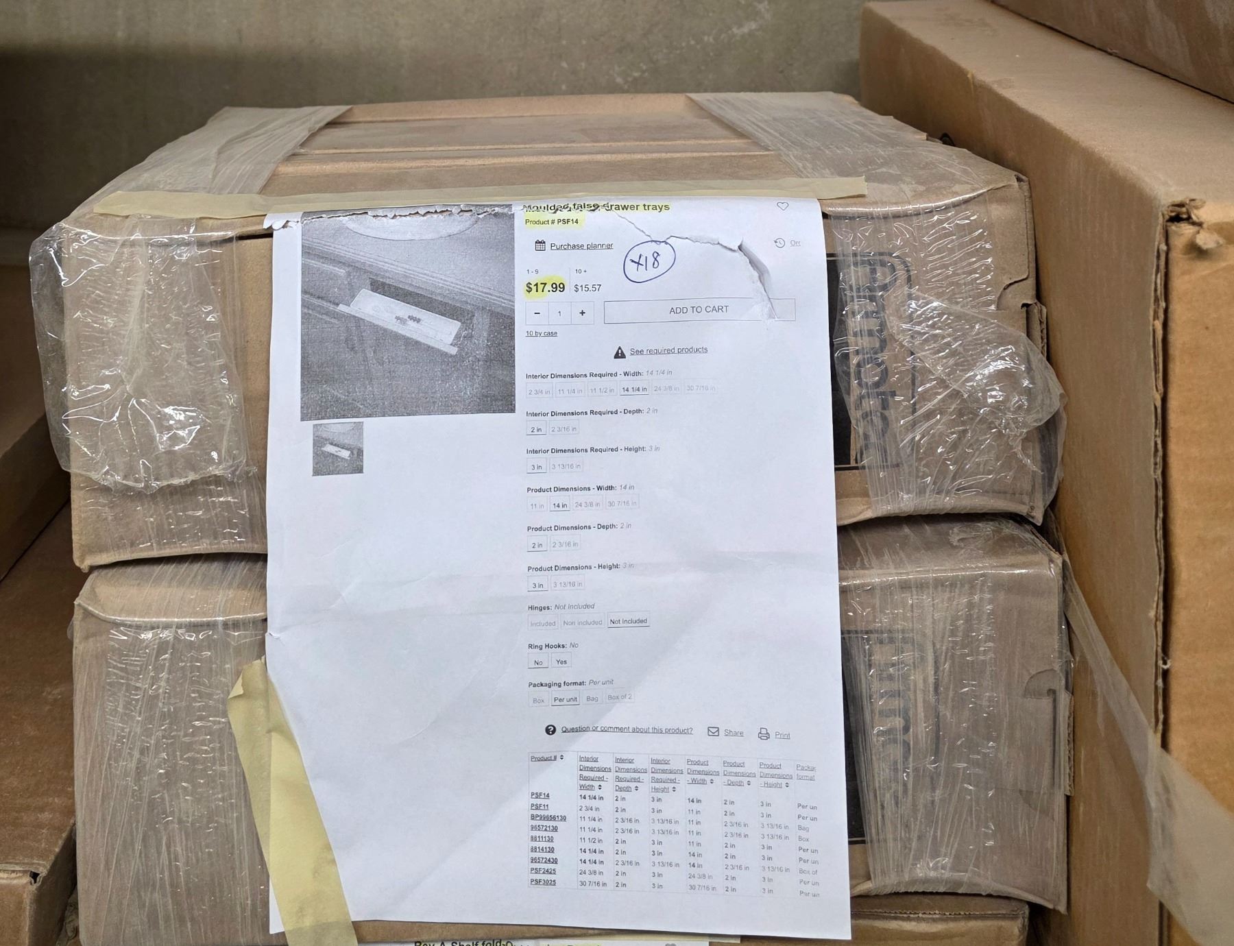 (18) False Drawer Storage trays - Wholesale Value: $325