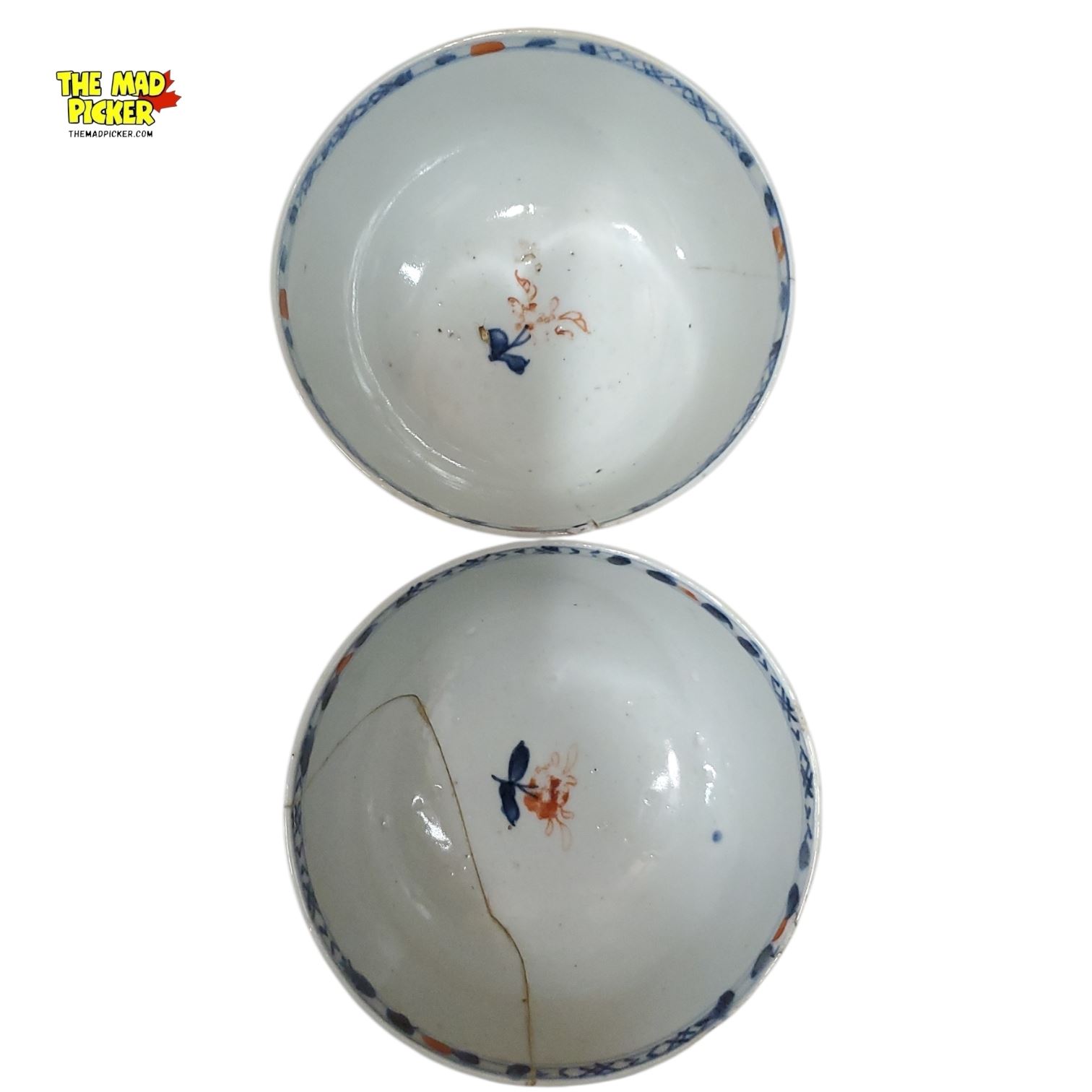 18th Century Kangxi Chinese Porcelain Tea Bowls Imari Palette Decoration (bowls have cracks & chips)