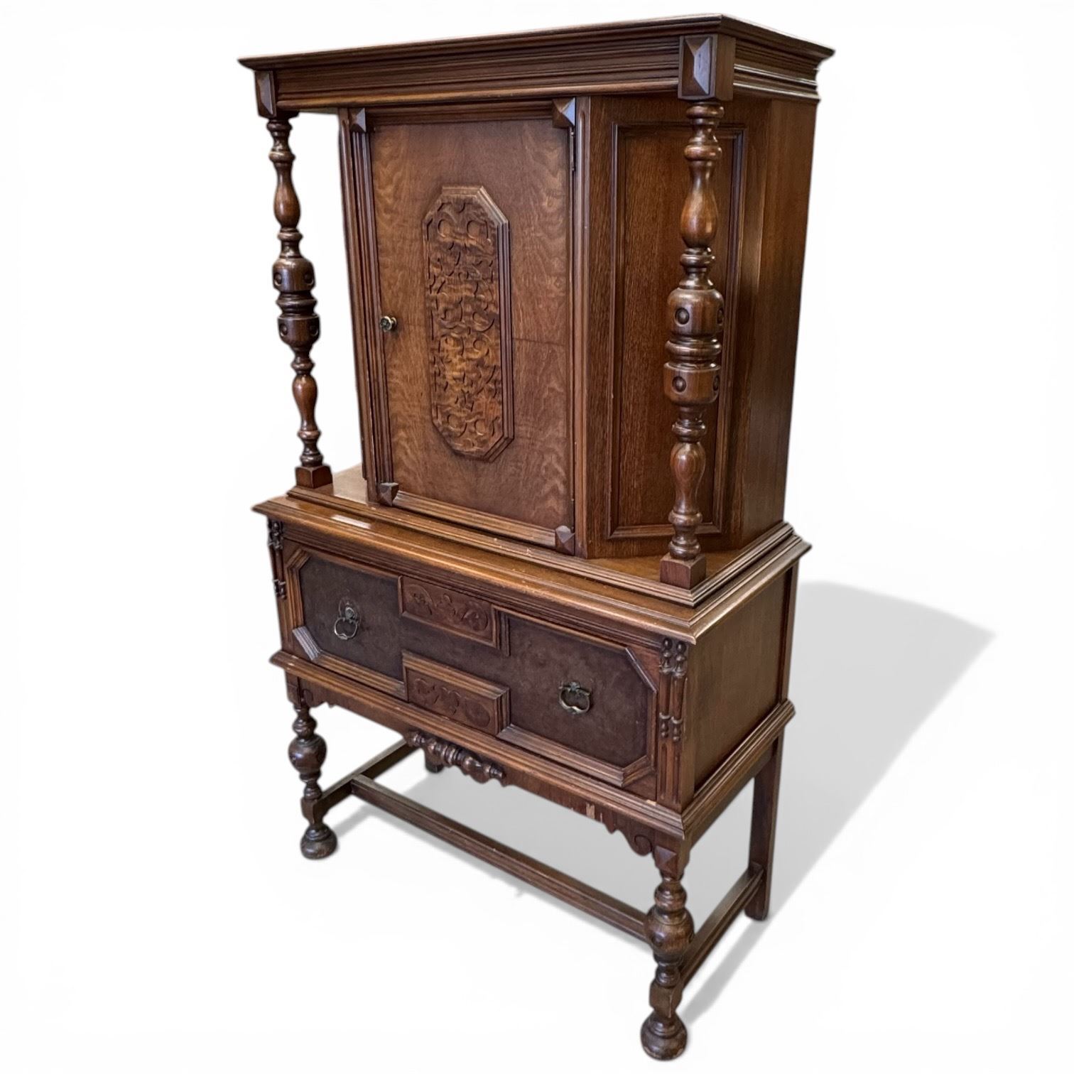 1920s Jacobean Revival Oak Cabinet (20" X 38" X 63" Tall)