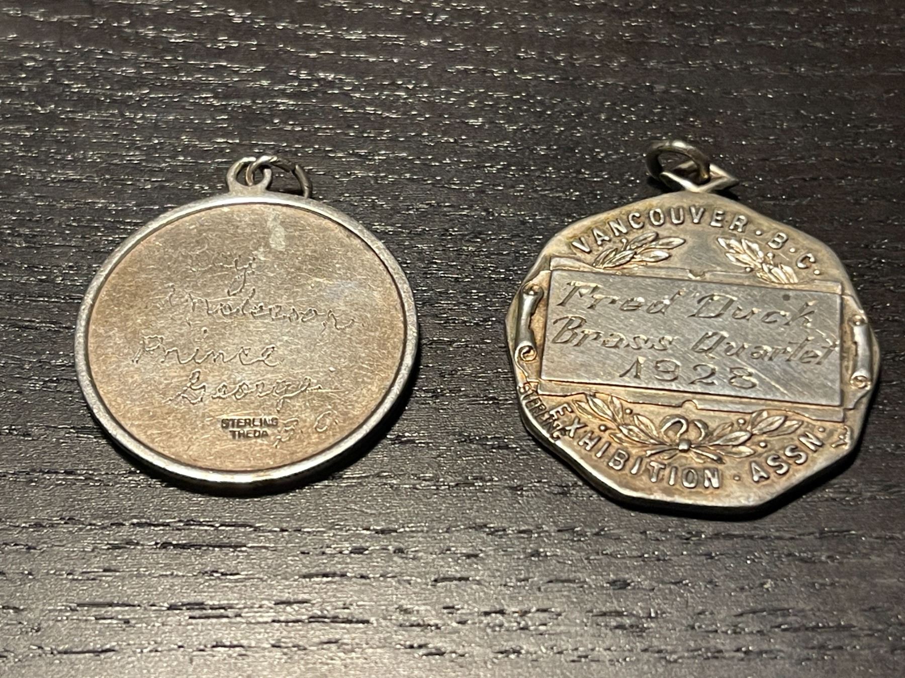 1928 Vancouver Medal and Vintage St Christopher Pendant - Both have personal engravings - Total weight: 25 grams