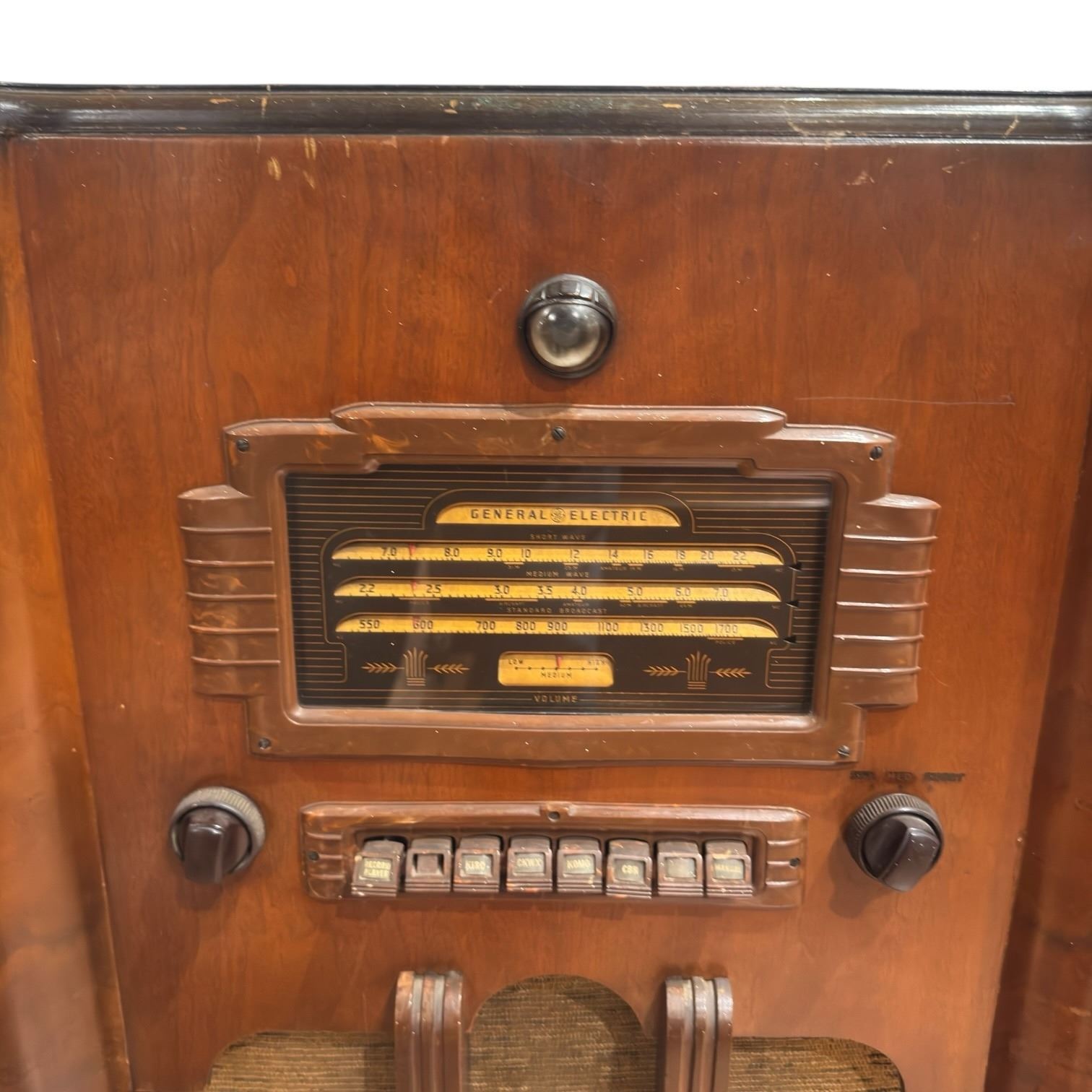 1930s Canadian GE G-77 Dual Band Floor Model Radio (15" x 26" x 42" tall)
