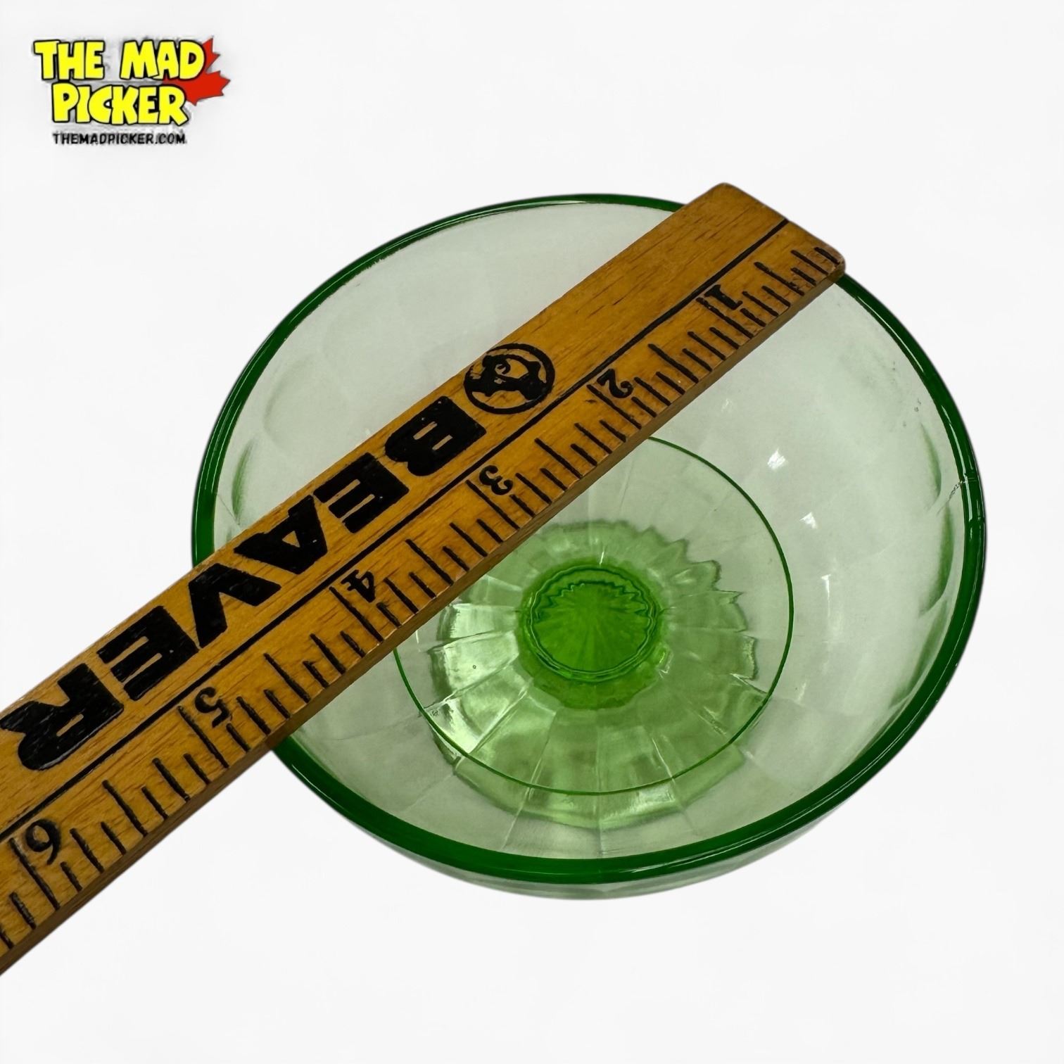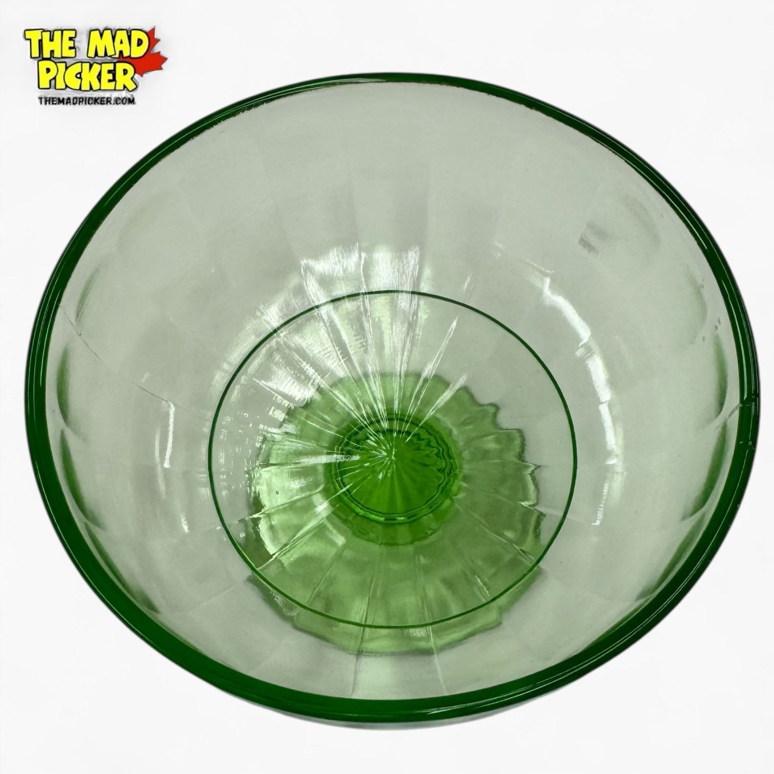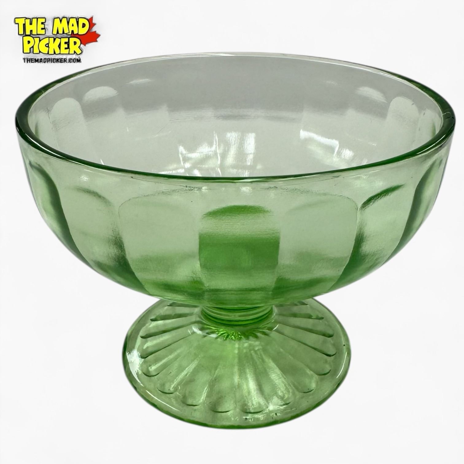 1930s Optic Block Pattern Uranium Glass 5" Pedestal Bowl - Could be Hazel Atlas