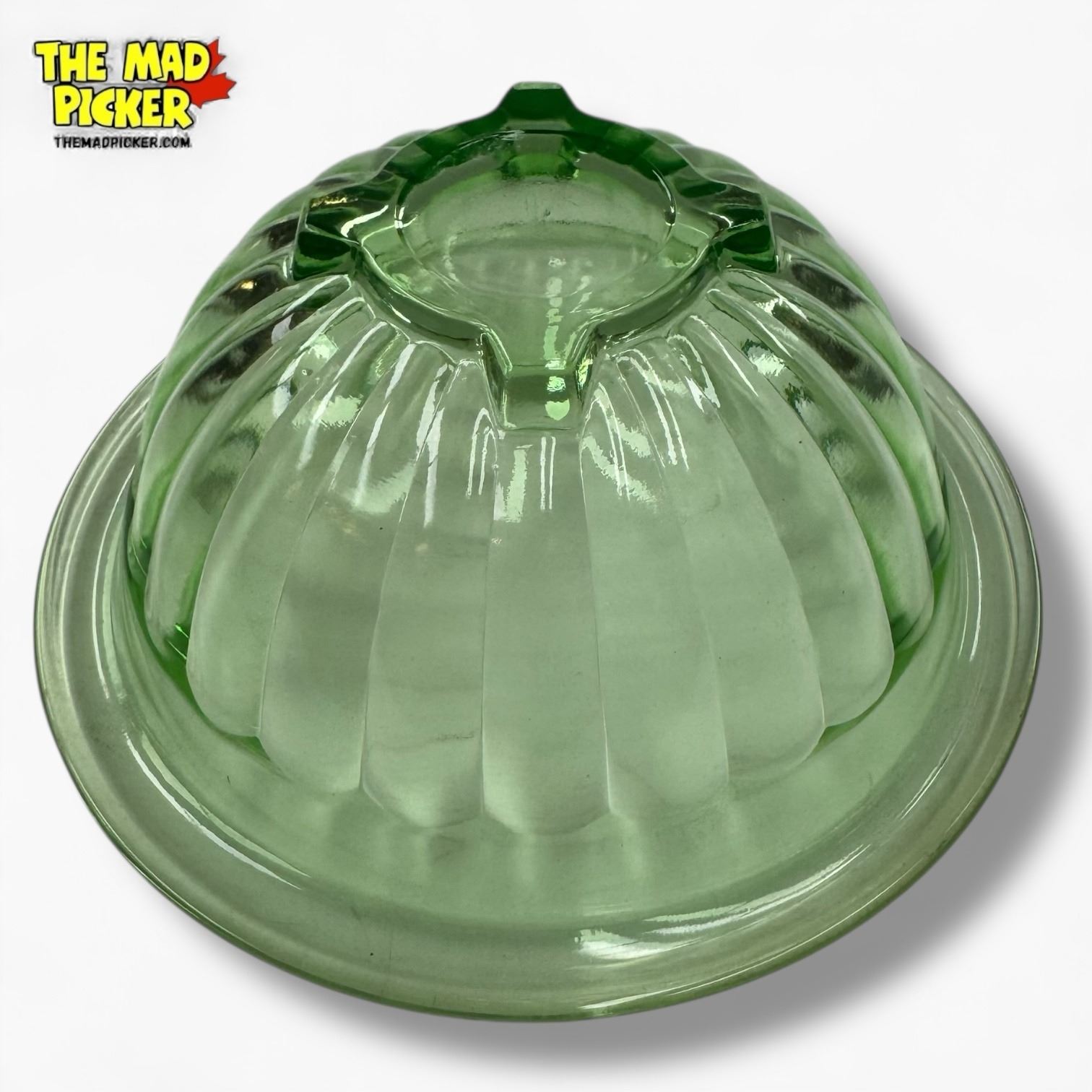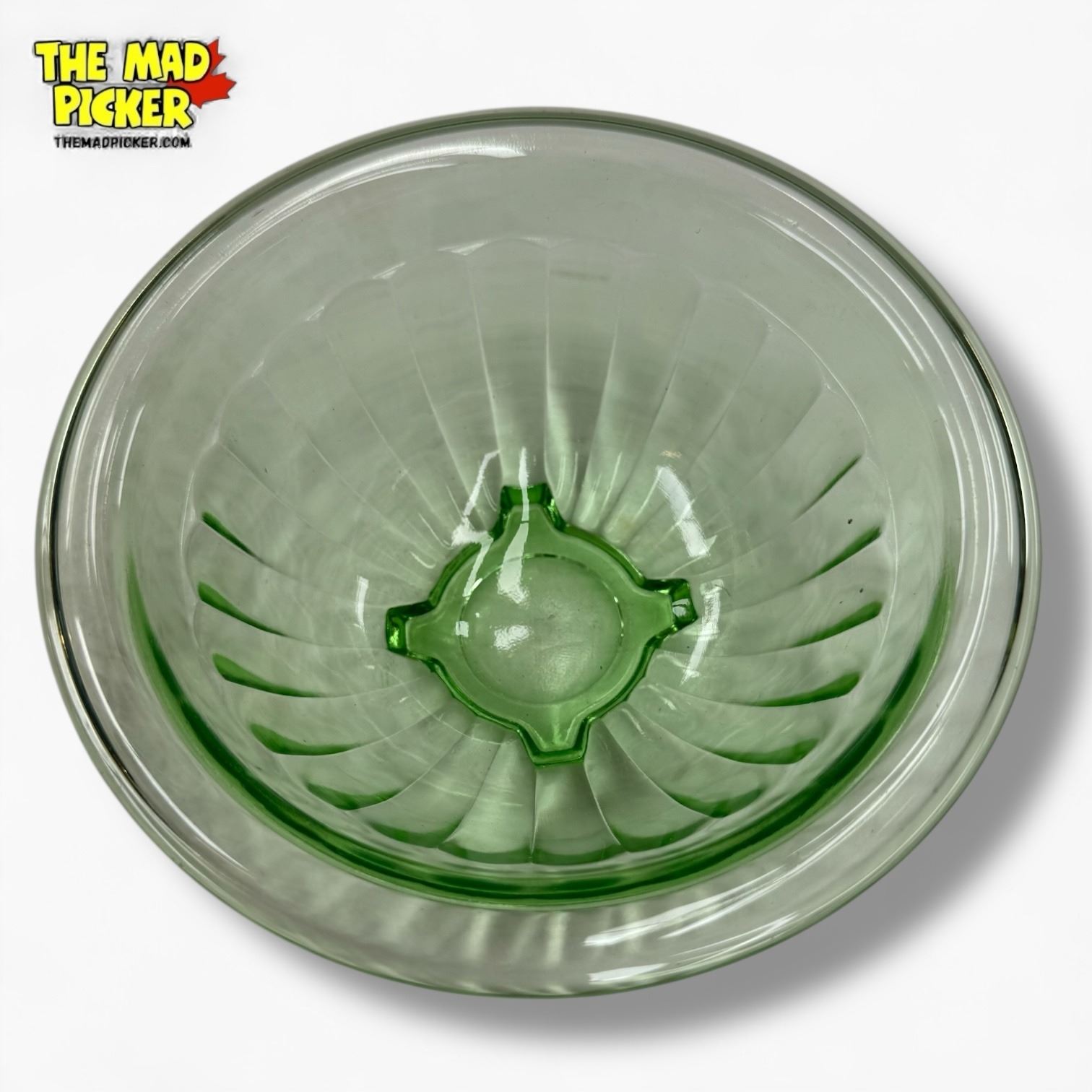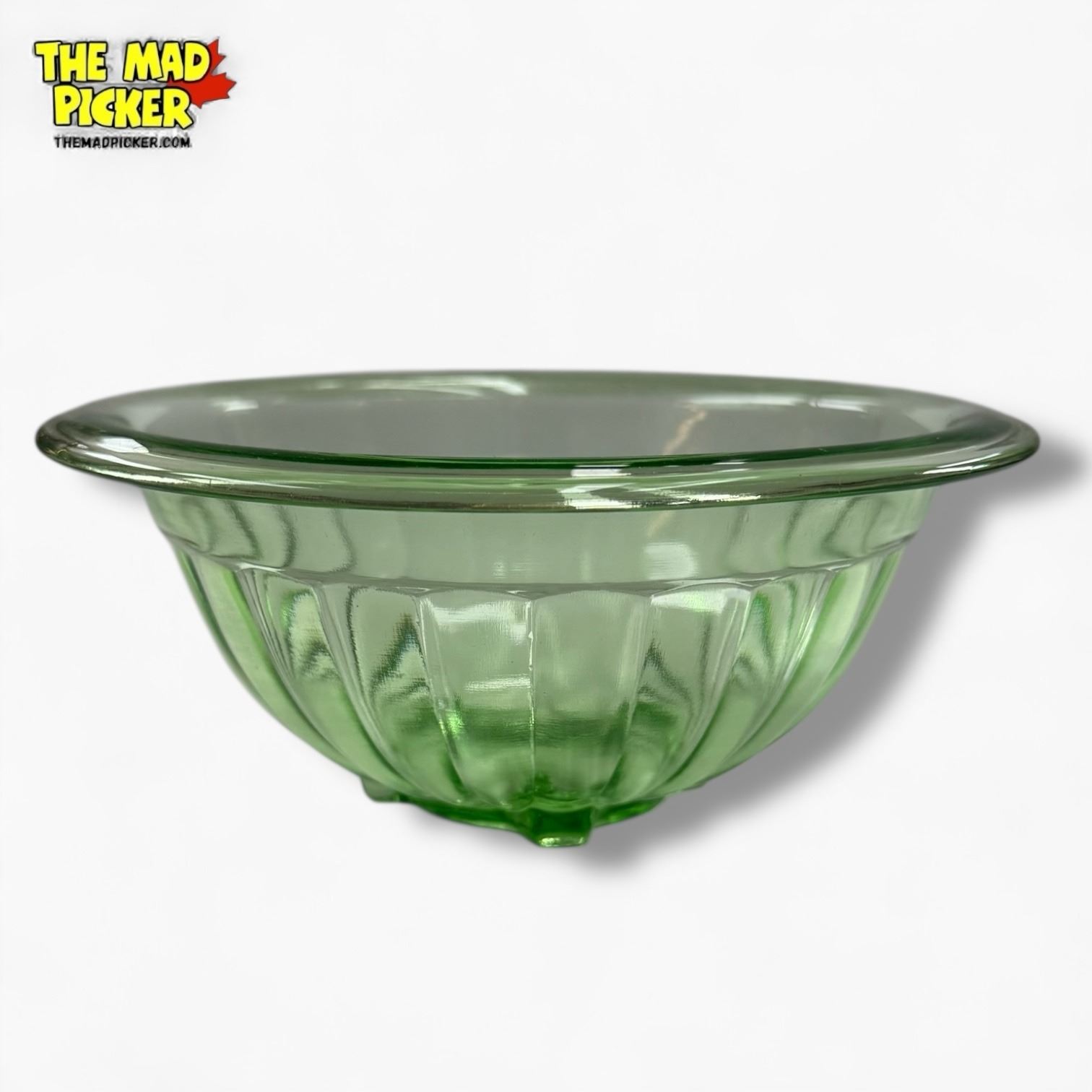 1930s Pillared Uranium Glass 9" Mixing Bowl Attributed to Hazel Atlas