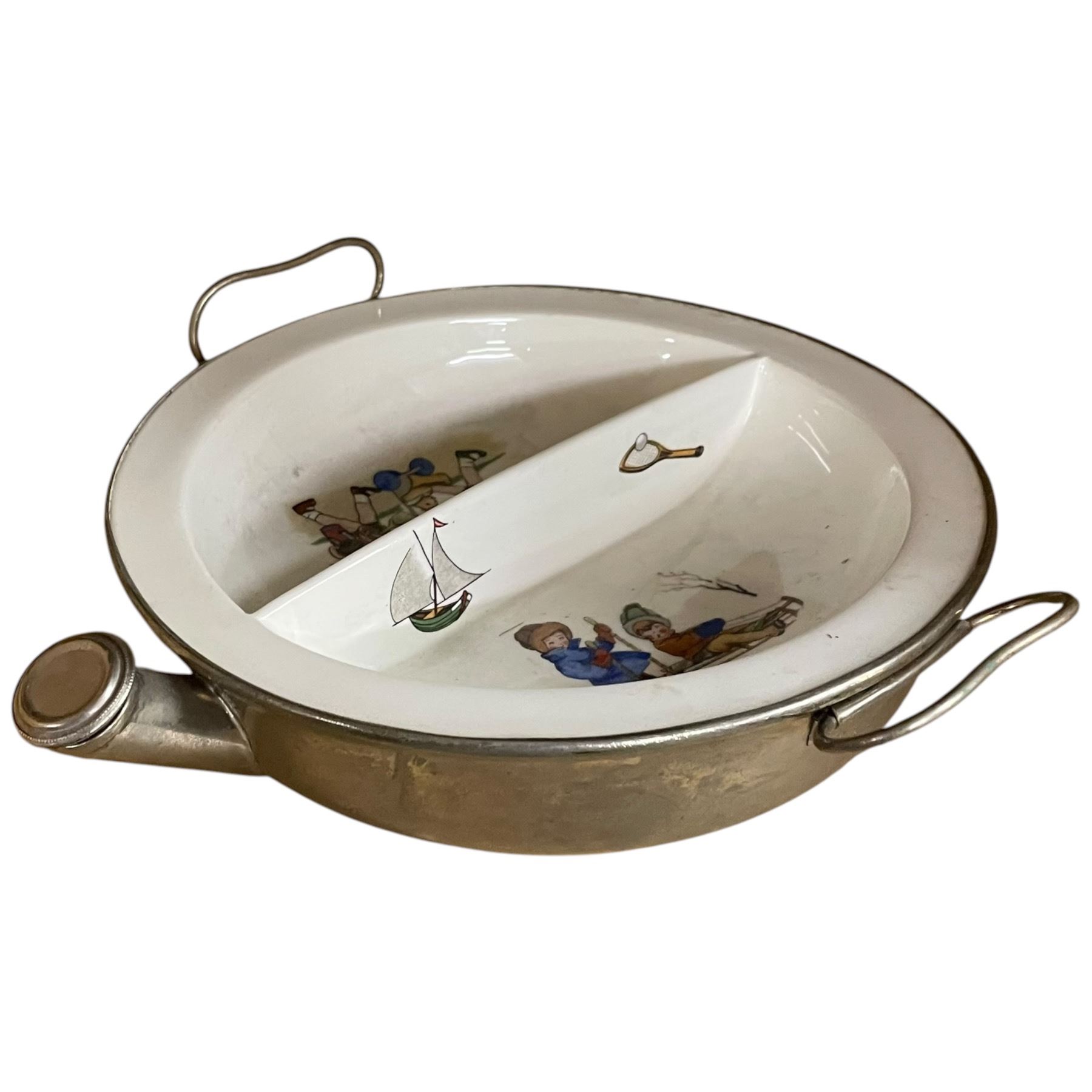 1950's Divided Porcelain Plate with Warming Stainless Steel Flask Bottom