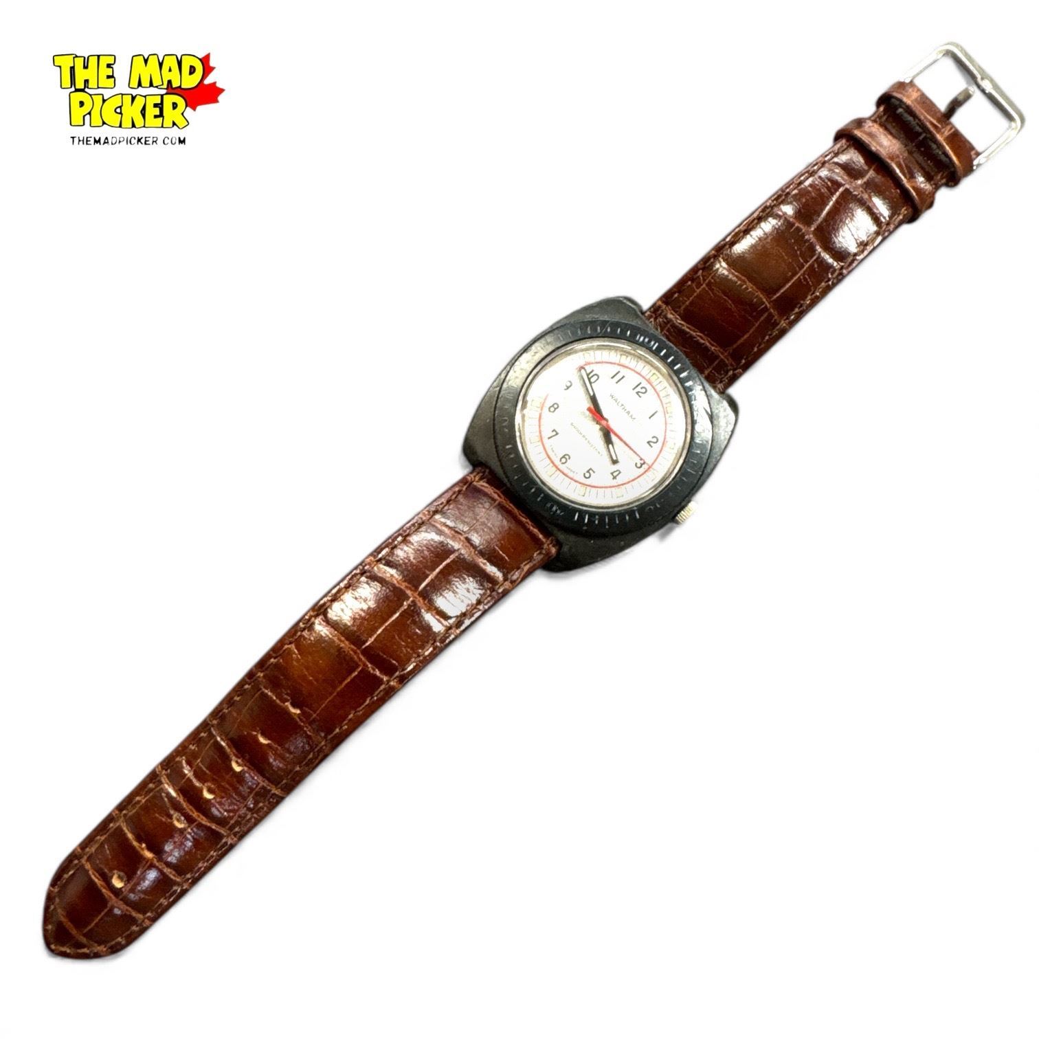 1960's Waltham Skin Diver Watch w Brown Leather Strap In Working Condition