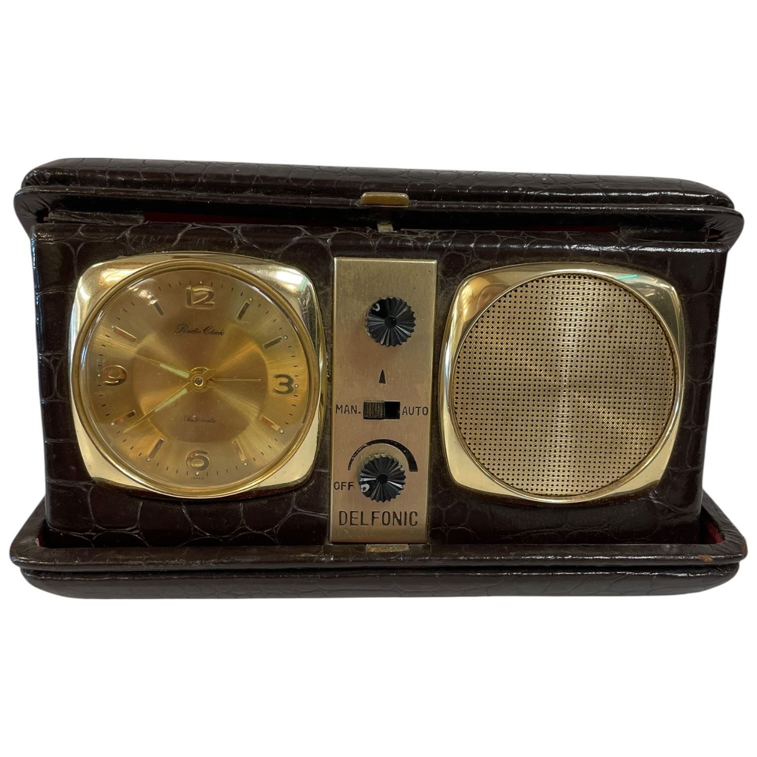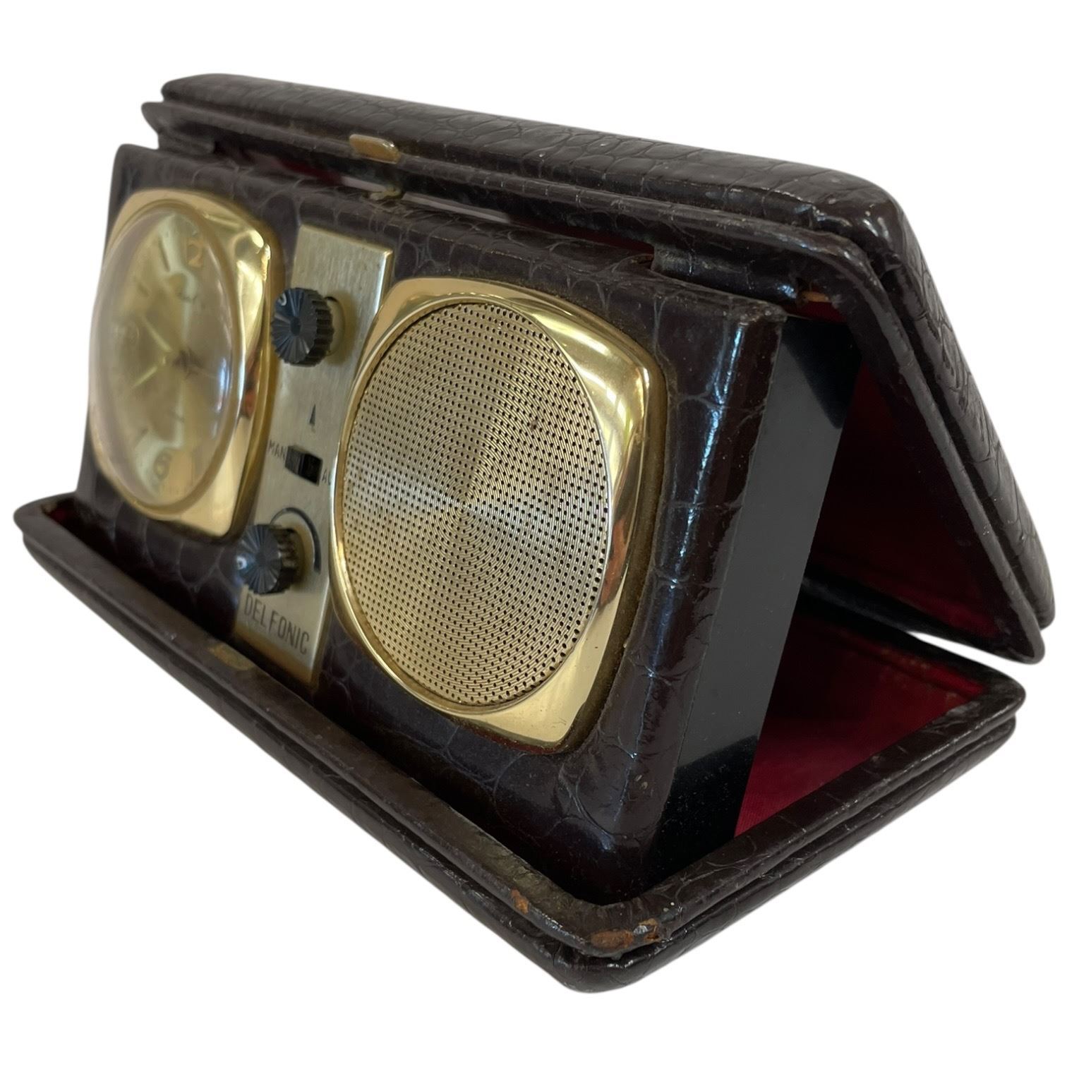 1960s Delfonics Travel Radio Alarm Clock in Faux Leather Case * Battery Operated