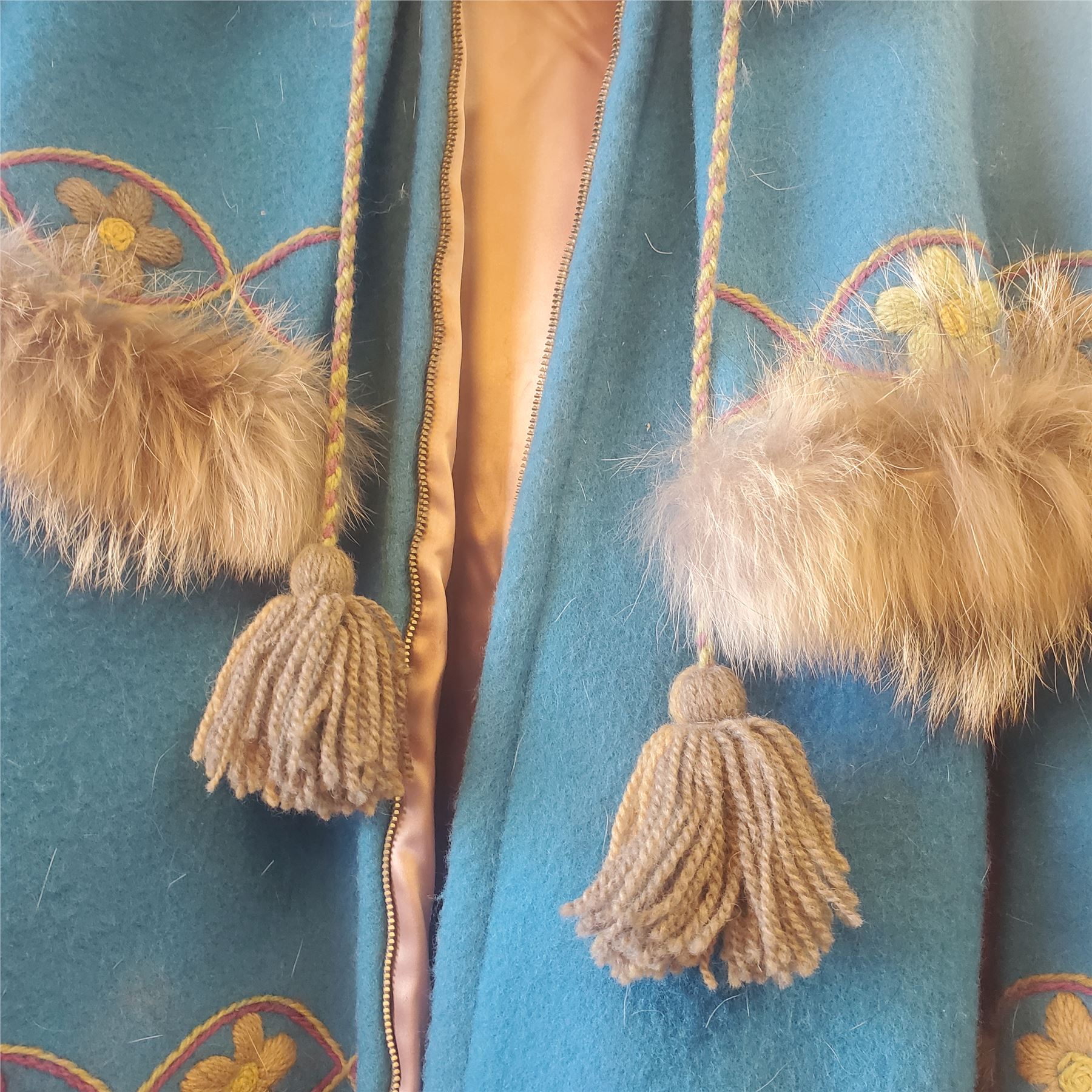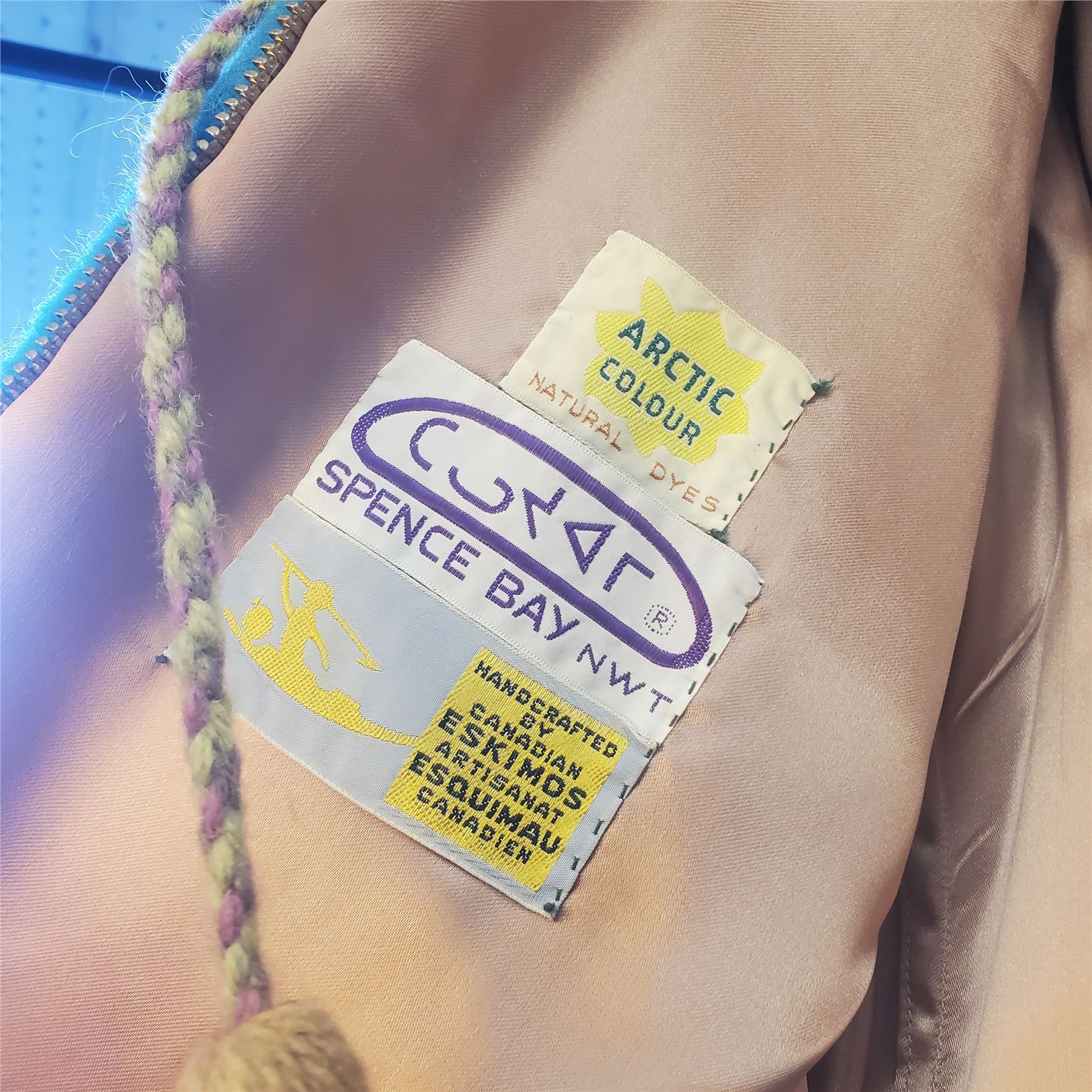 Handcrafted 1960s Inuit fur lined blue hooded parka with tassels by Artisanat Esquimau Canadien from Spence Bay NWT. Measures 28-Inch long and 17-Inch across the shoulder. Traditional design showcasing craftsmanship of Canadian Eskimos (term on label). Item is as pictured.