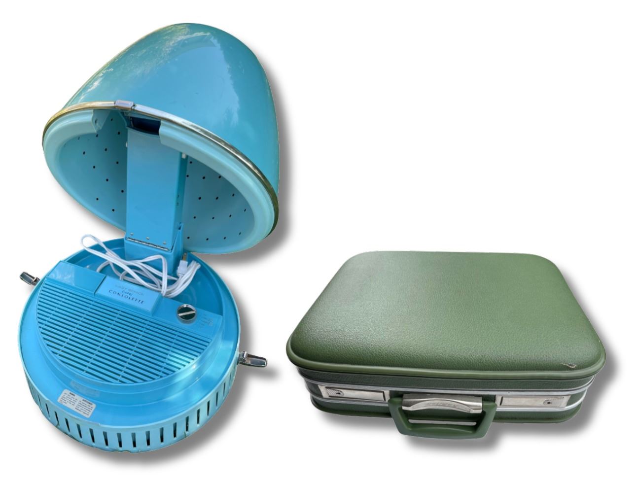 1960s Lady Schick Salon Consolette Portable Hair Dryer and Vintage Holiday Hard Travel Case