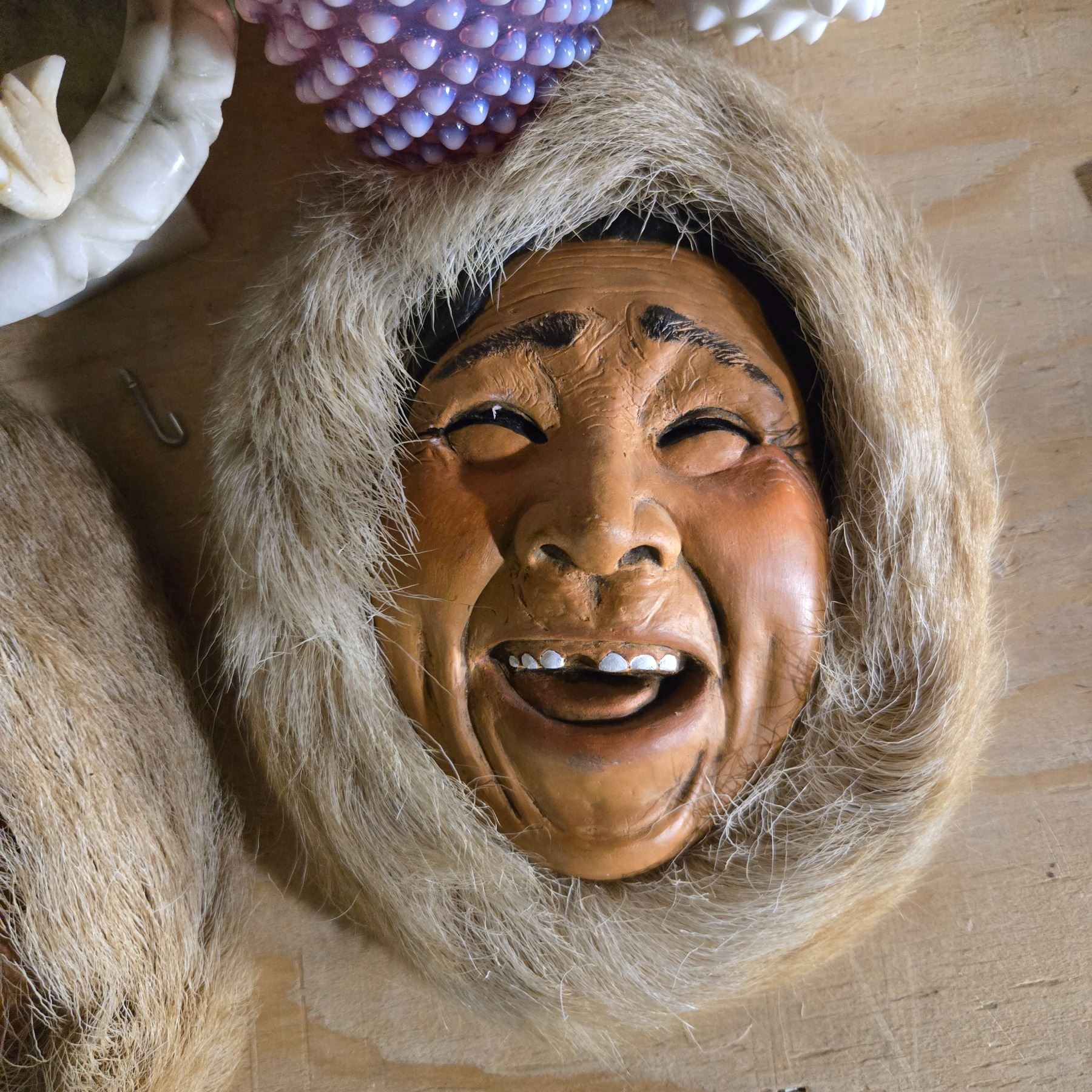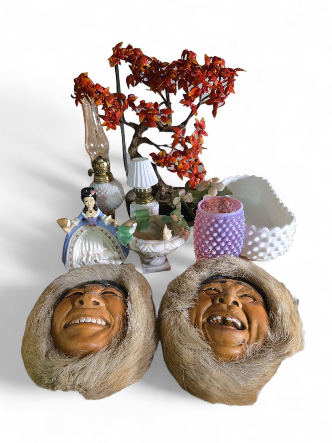 1965s Alaskan Inuit Art Masks and Assorted Decorative Glassware