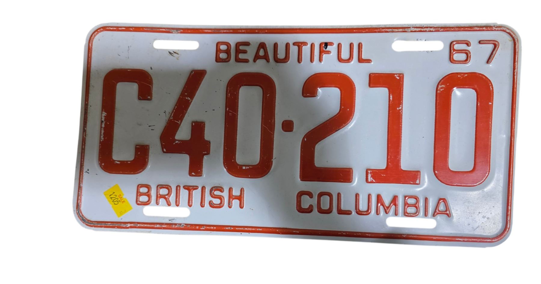 1967 BC Single License Plate C40-210