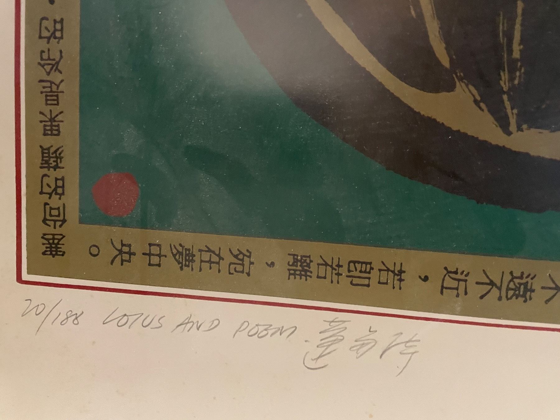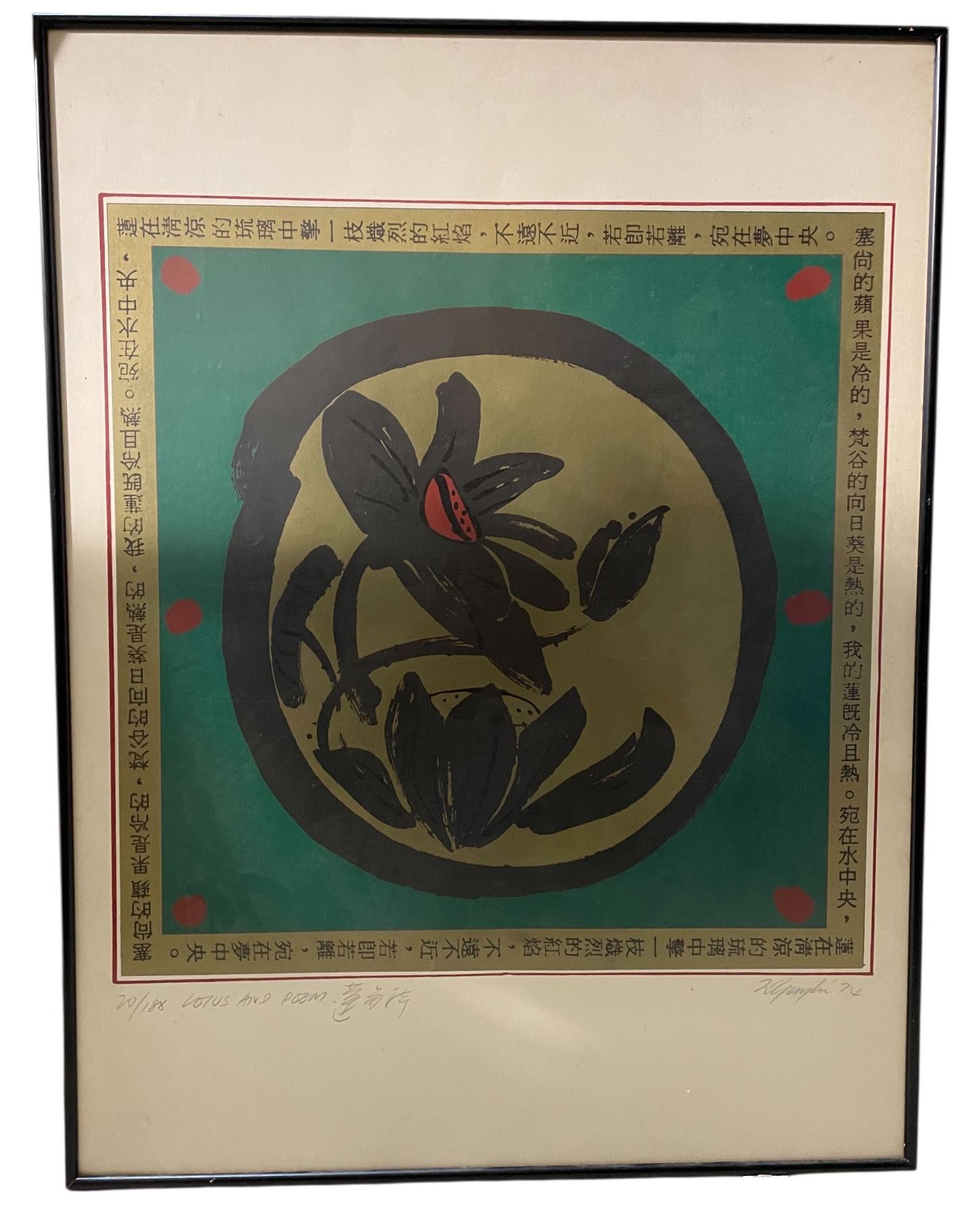 1974 Signed "Lotus & Poem" Ltd. Edition Print, No. 20/188 - Framed Dimensions: 23" x 30"