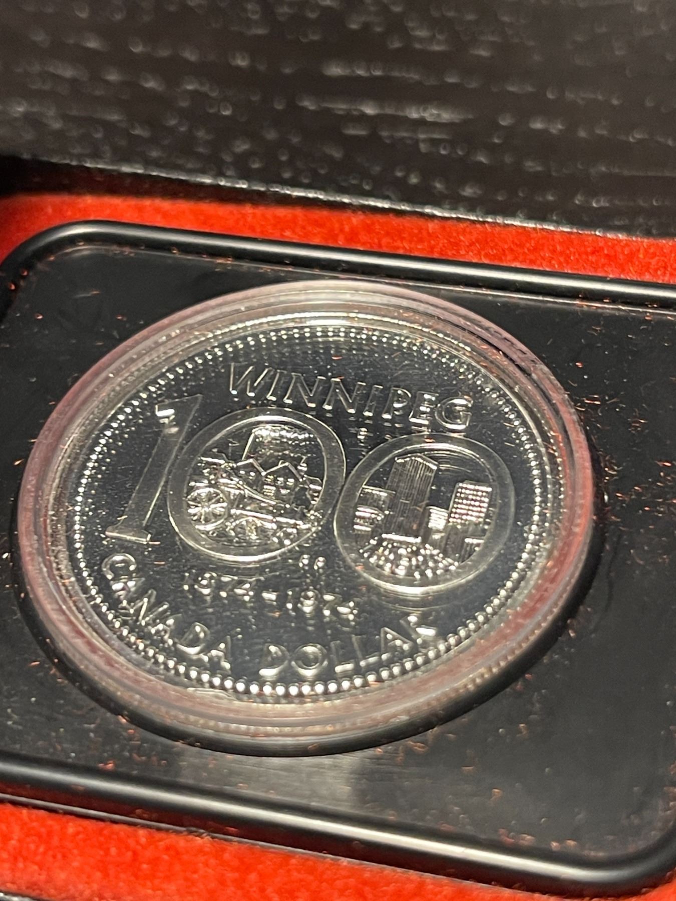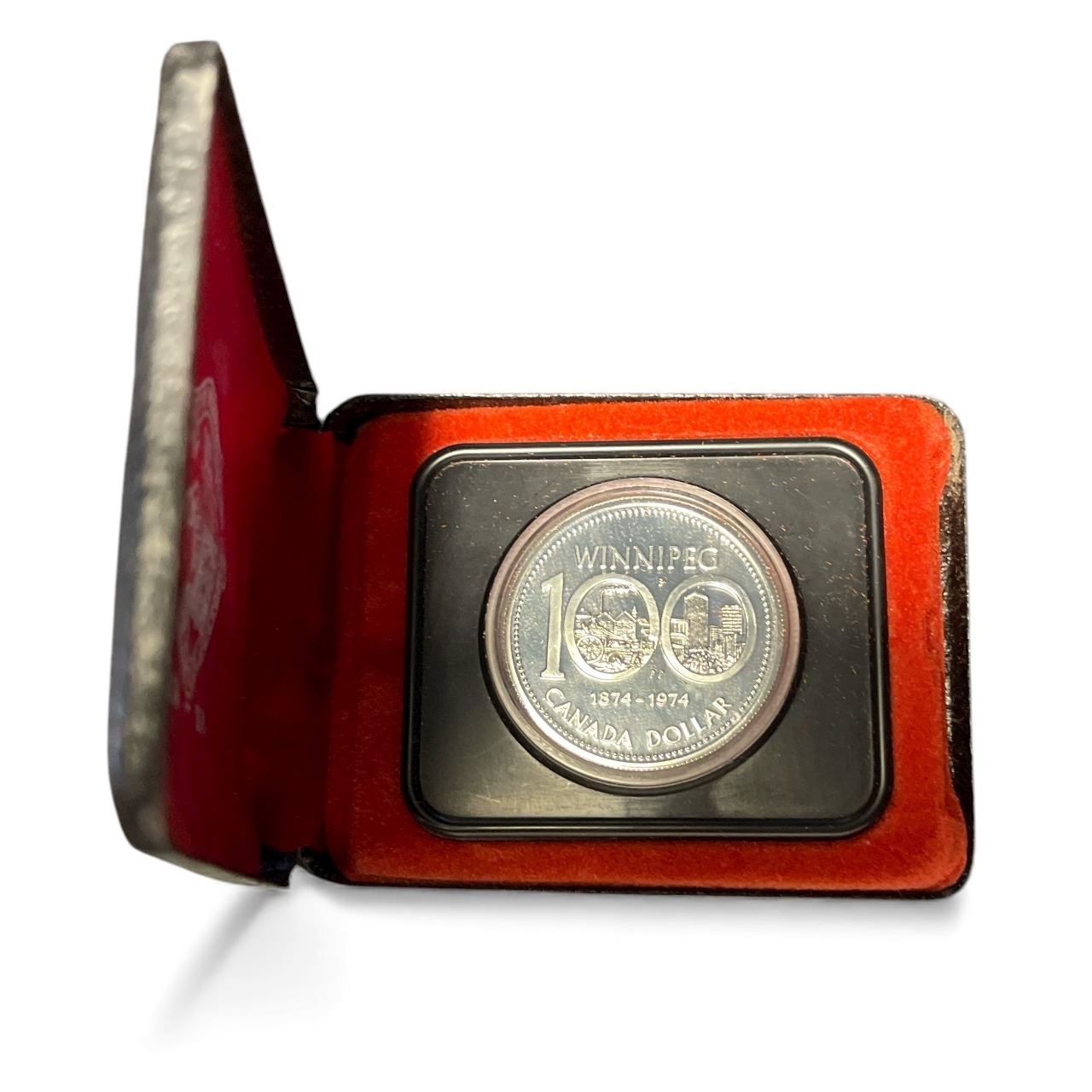 1974 Winnipeg Centennial 50% Silver Dollar Coin - Uncirculated in Original Case