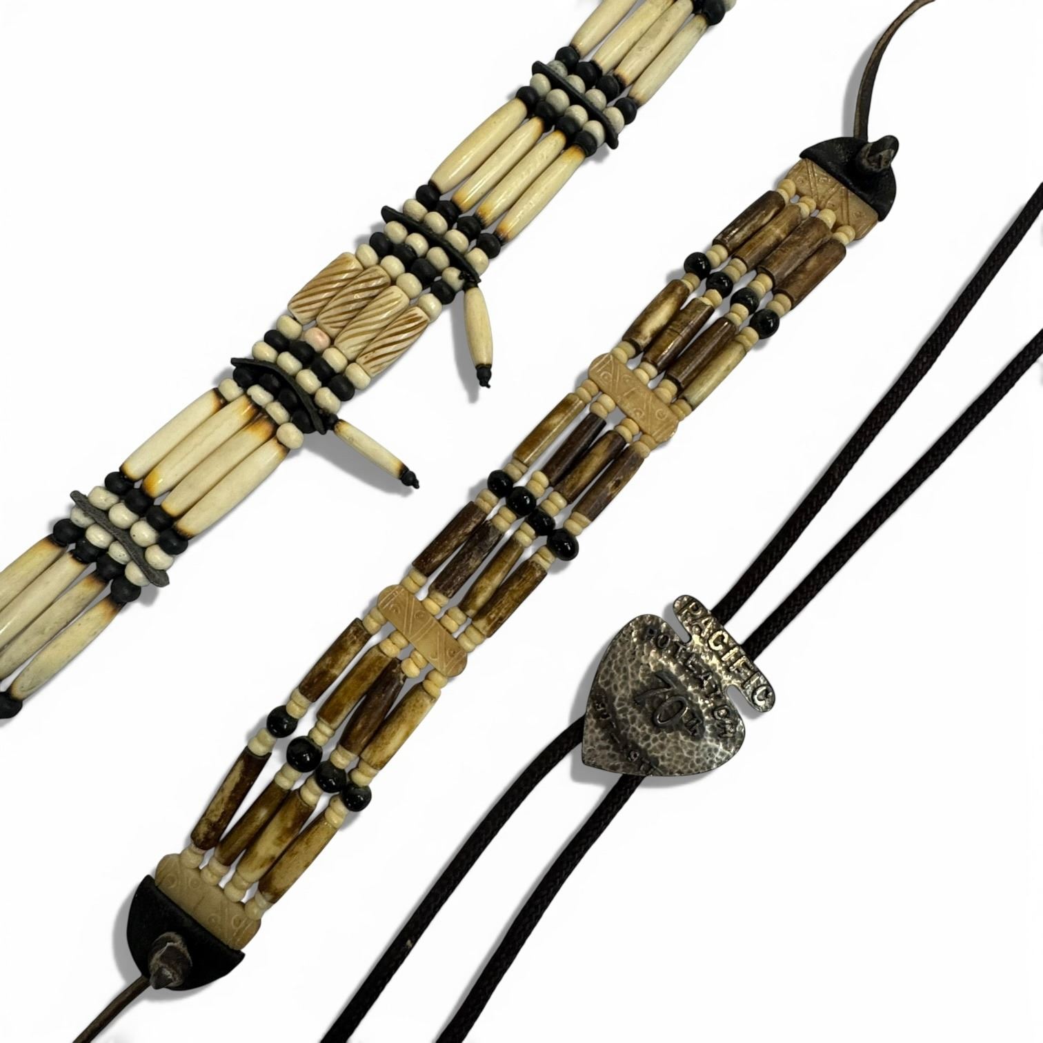 1977 Pacific Potlatch 70th Anniversary Bolo Tie & 2 Natural Bead Chockers