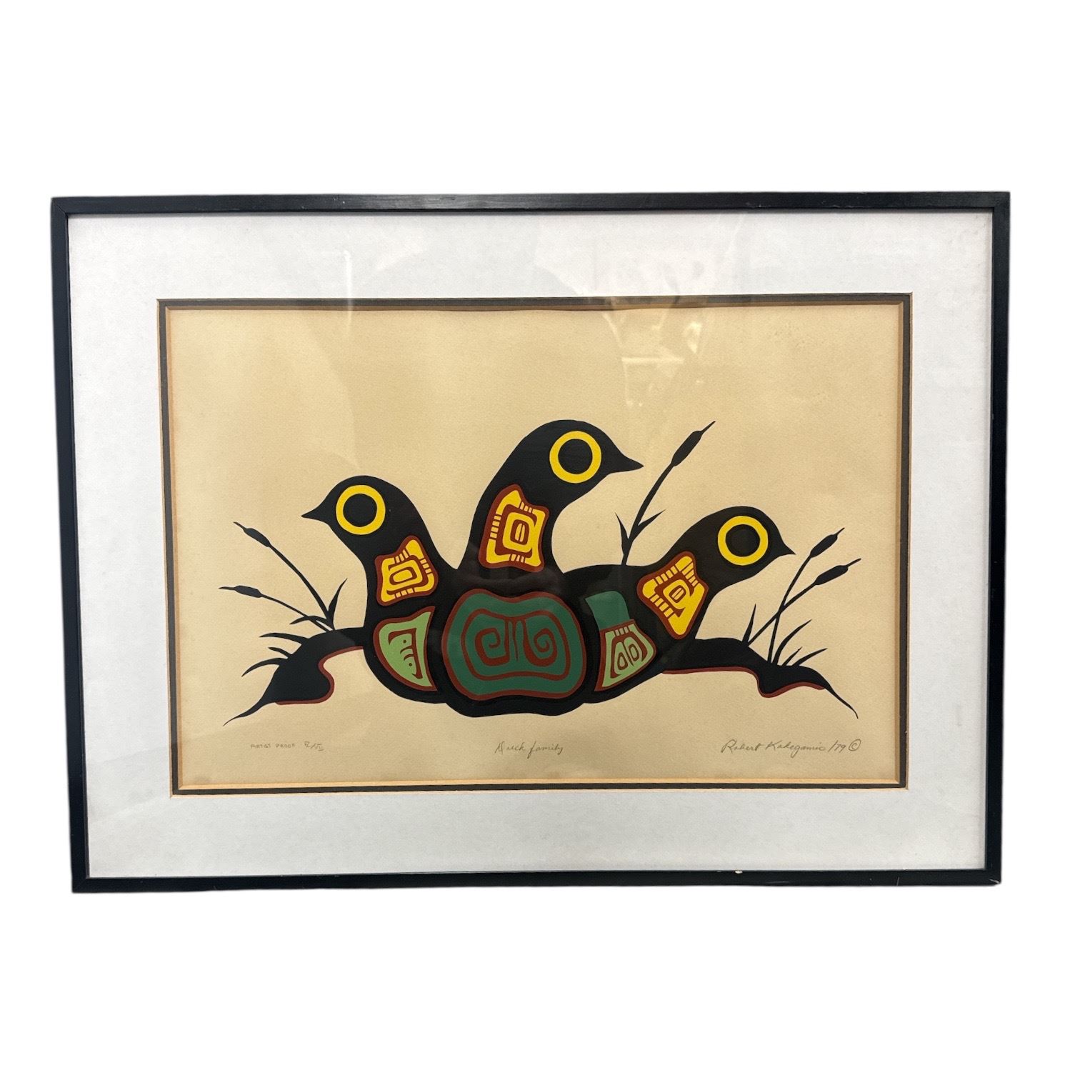 1979 Framed Print "Duck Family" by Robert Kakegamic * Canadian Artist * Framed dimensions: approximately 20" x 30"