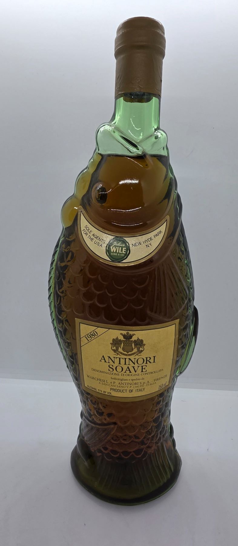 1980 Bottle of Antinori Soave Italian White Wine in Glass Fish Bottle - 750ml Sealed