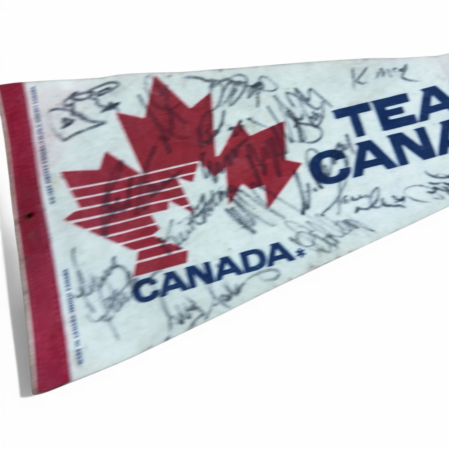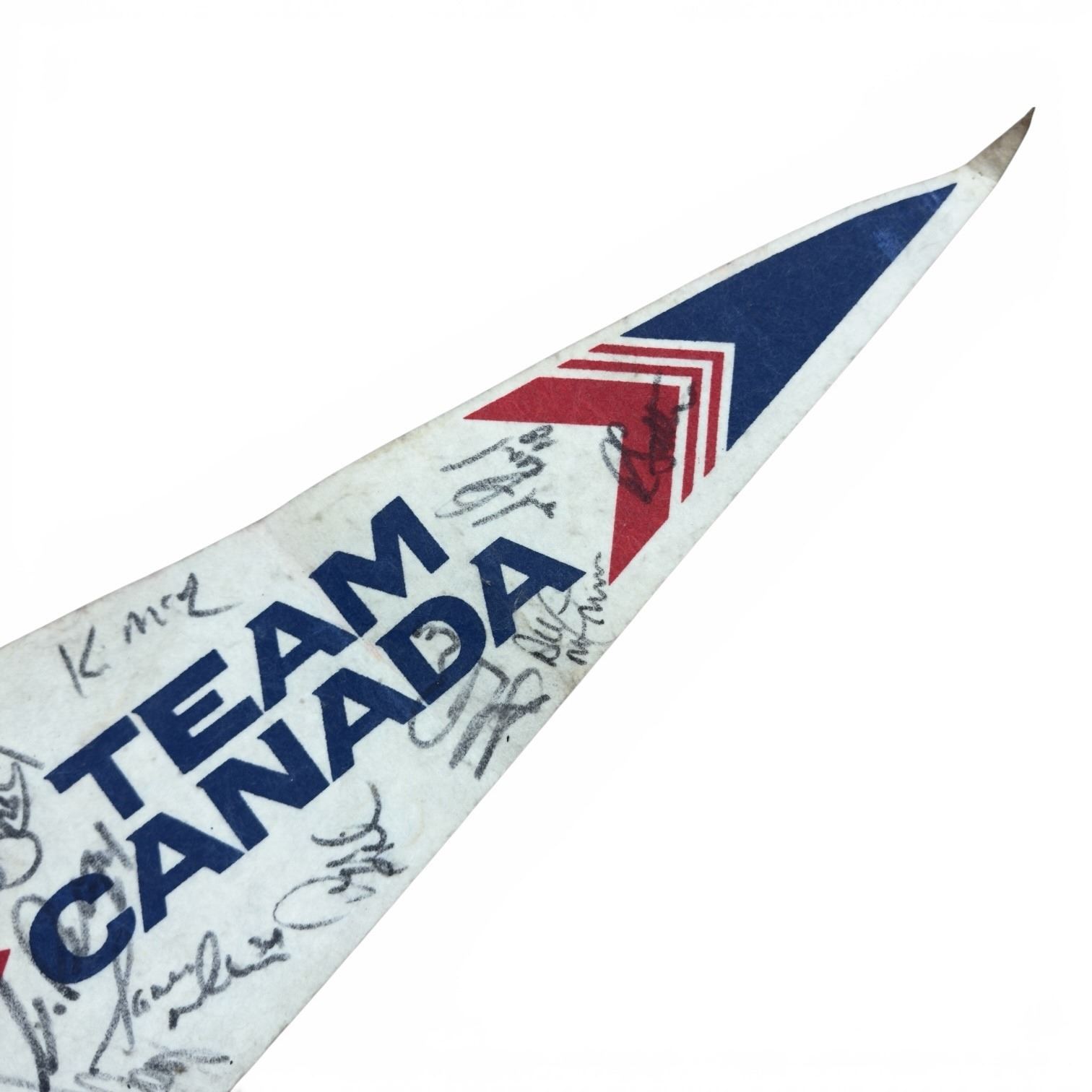 1989 Team Canada signed pennant featuring autographs from team members. Item is as pictured.