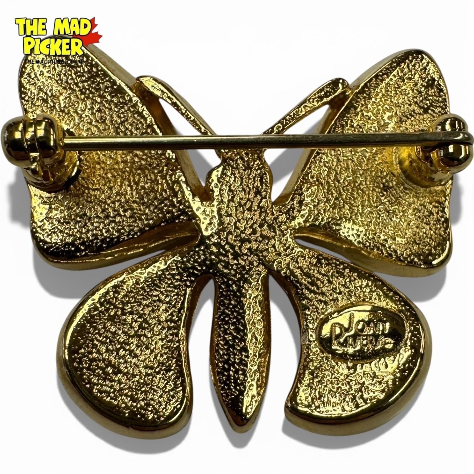 1990s Joan Rivers Gold Plated Enamel & Crystal Butterfly Brooch - Excellent condition - 1" x 1.25"