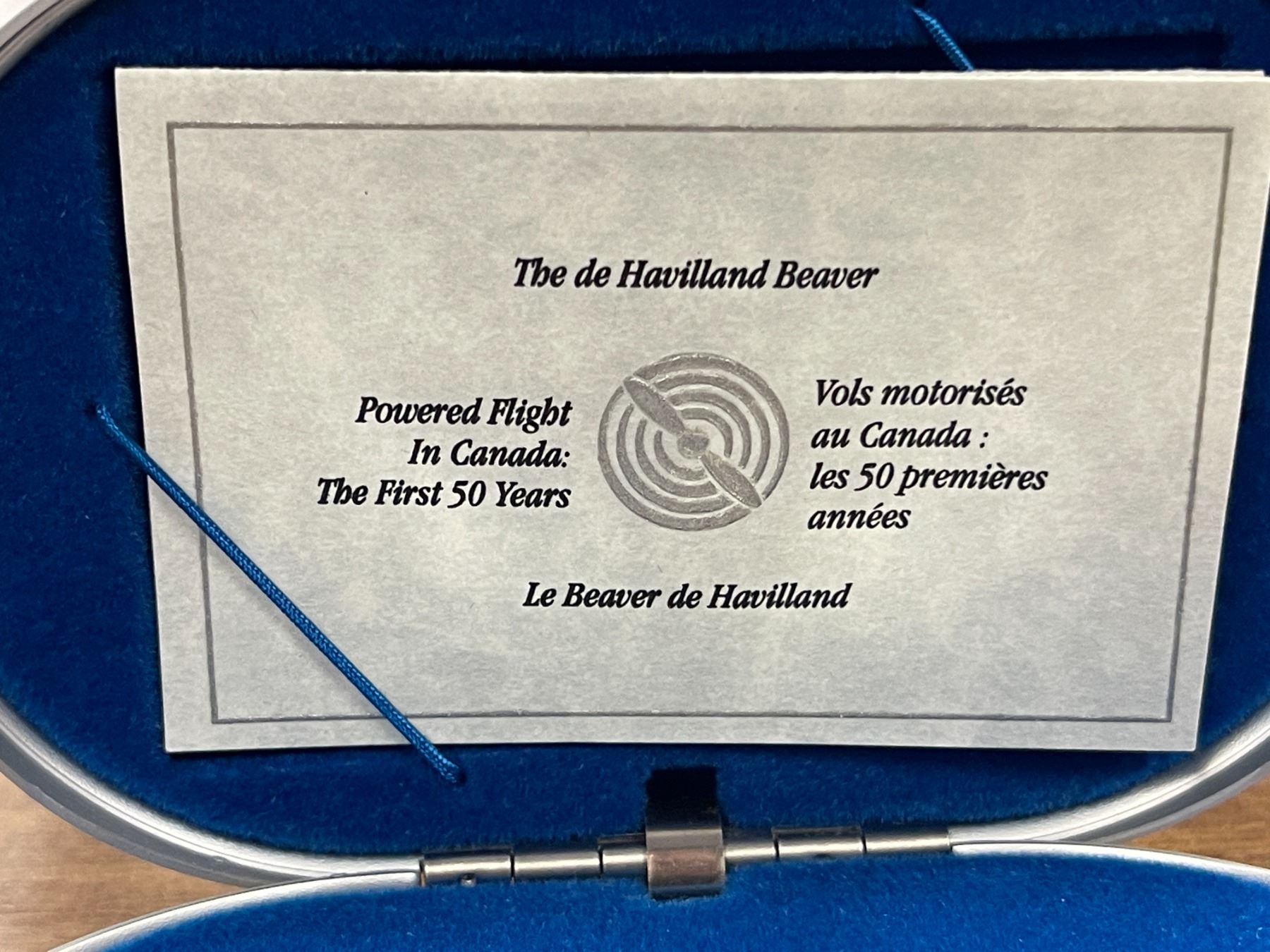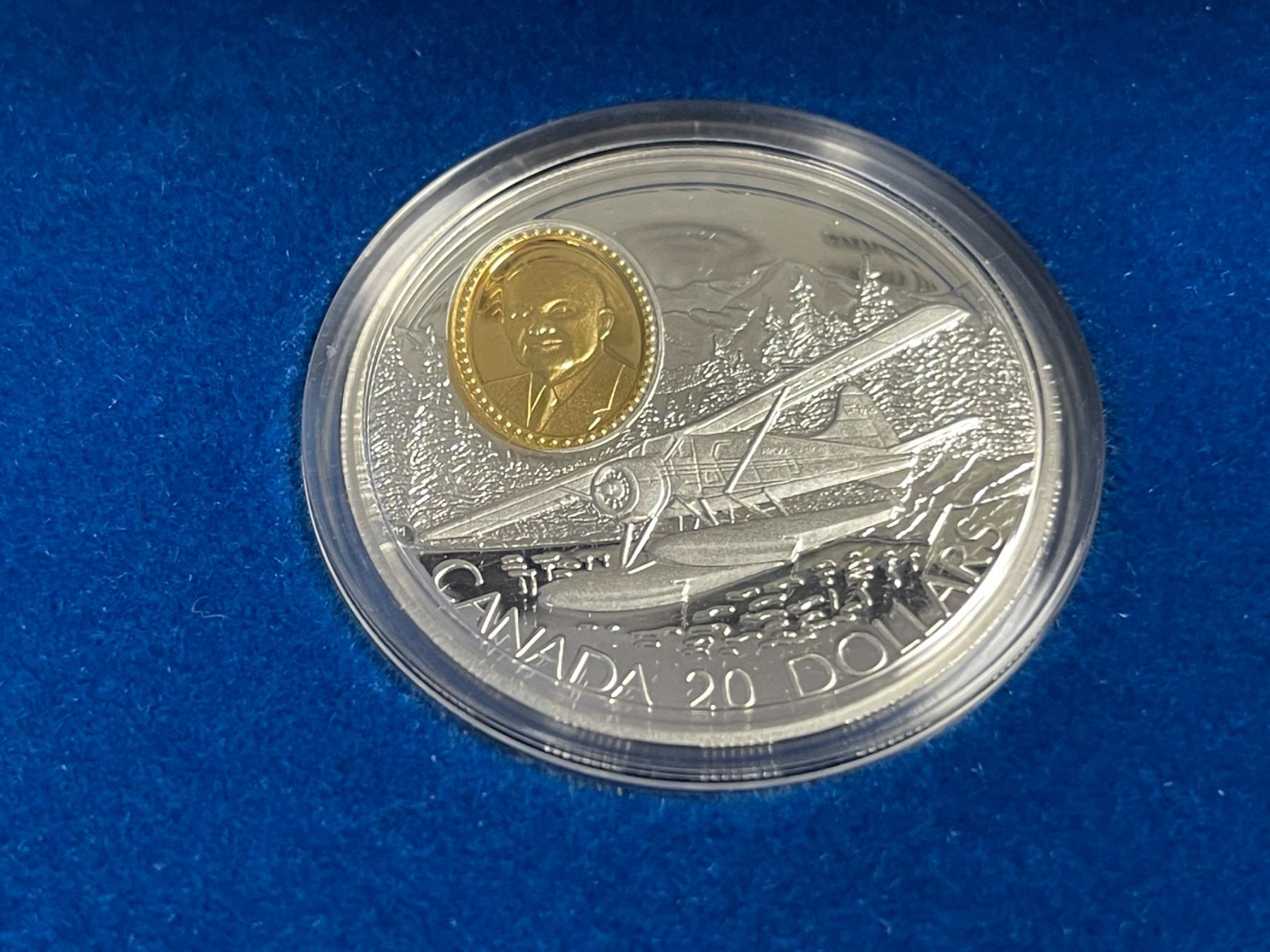 1991 .925 Silver Canadian "The de Havilland Beaver" 31.103 grams. $20 Coin with 24 Gold Covered Cameo - From the "Powered Flight in Canada - First 50 Years Series. In original box and display case.
