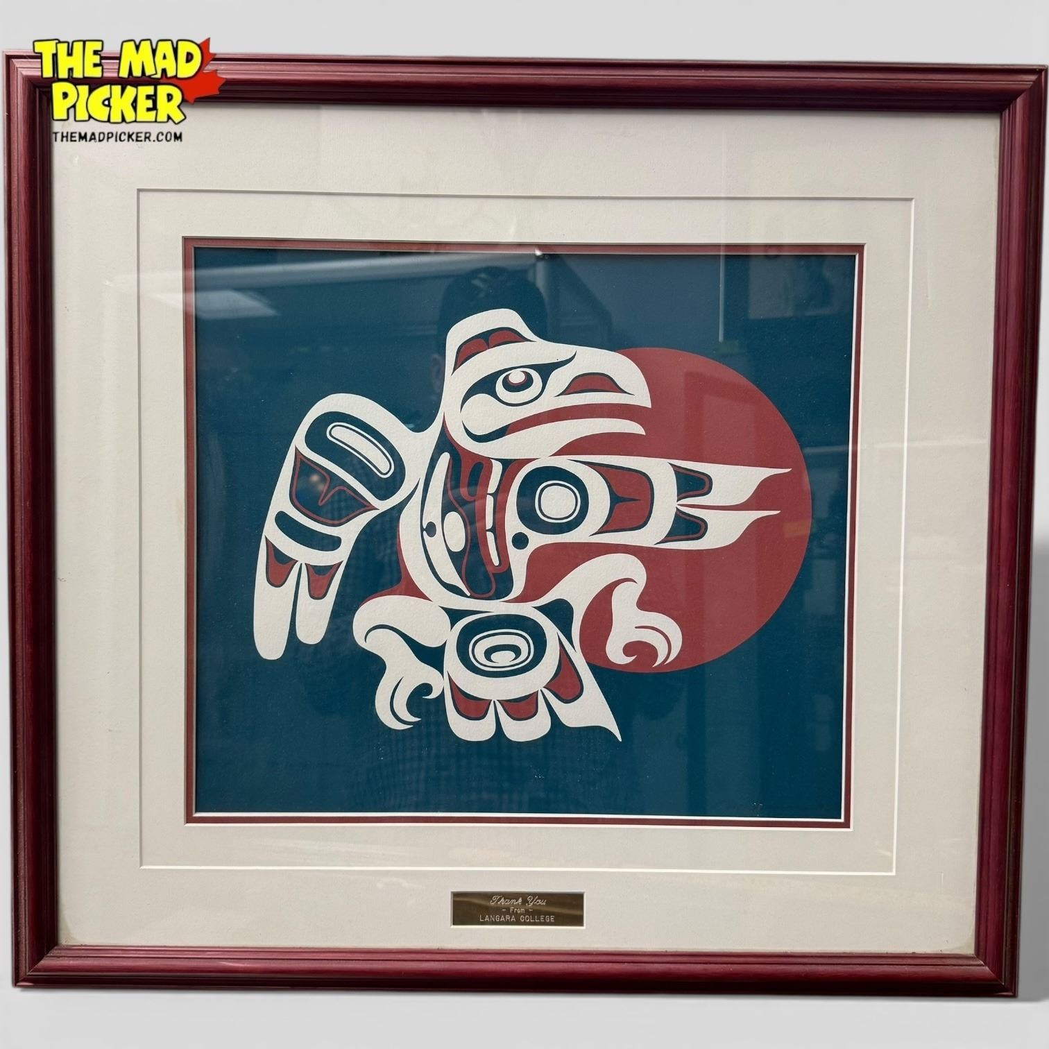 1995 Don Yeomans "Raven's Gift" Ltd. Edition Silk Screen - #173/220 - Triple matted - 24" x 27" framed "Thank-you from Langara College" brass plaque