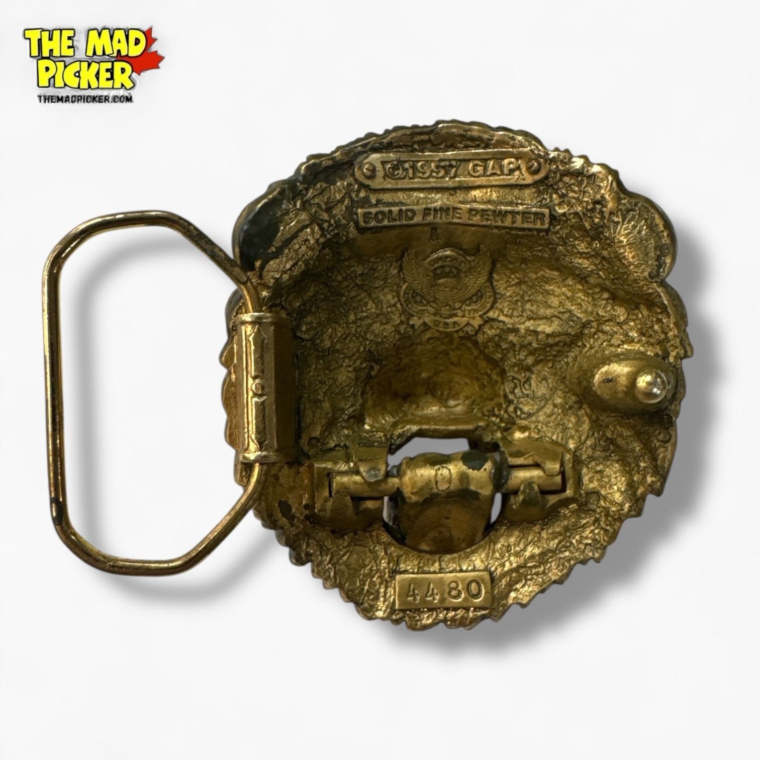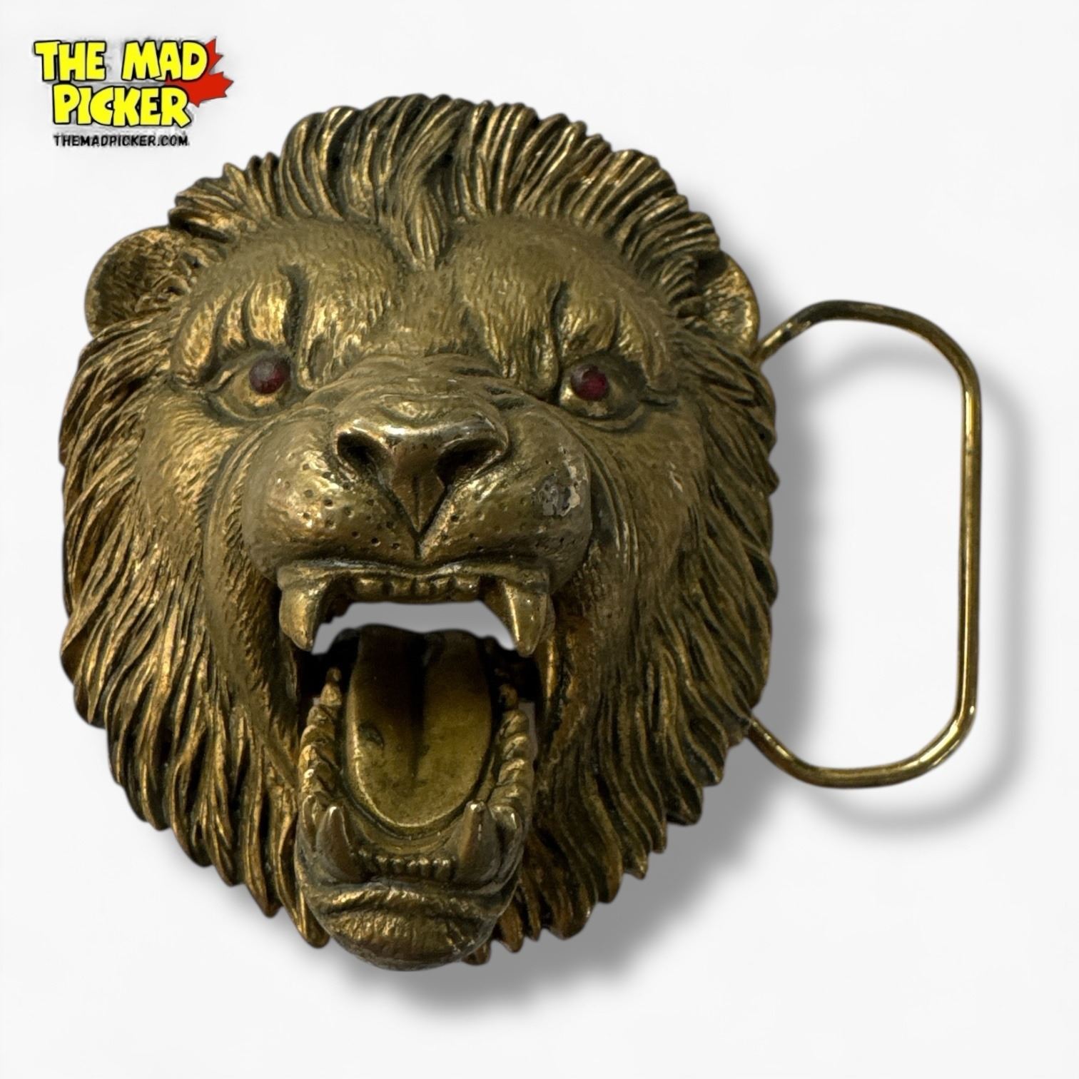 1997 GAP Garage Brass Plated Pewter 3" Lion Belt Buckle with Movable Jaw - 4480